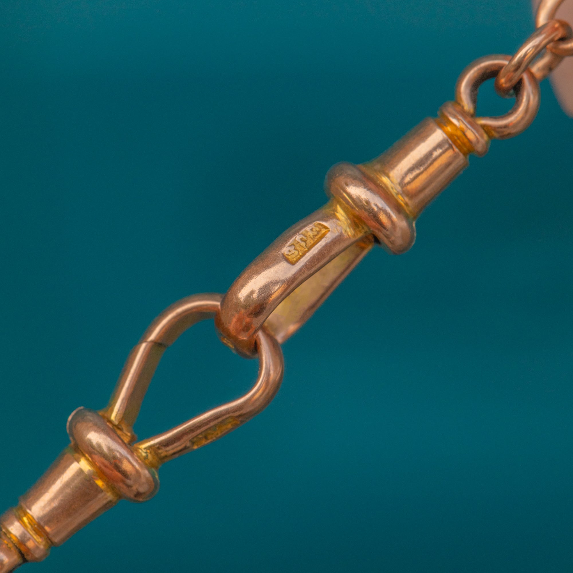 EXCELLENT: This chain has been very well preserved, with no visible wear between the links. The Rose and White Gold surfaces remain bright and crisp, and both dog clips work perfectly. A superb example of Victorian craftsmanship in exceptional condition.
