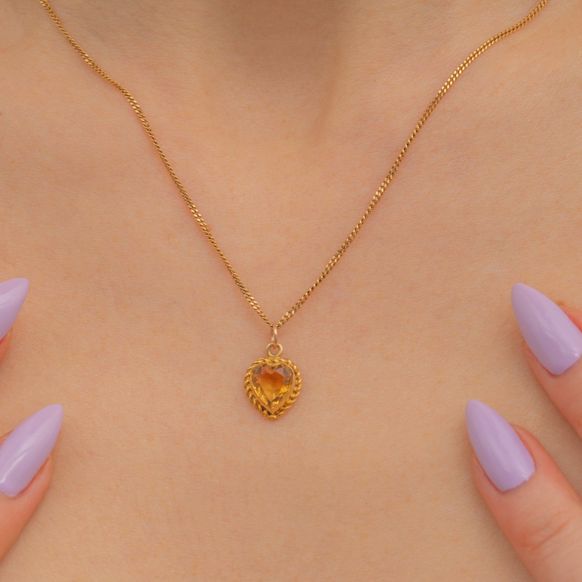 Simply suspend her from a fine chain and this vintage Citrine heart charm will make a wonderful piece to add some warmth to your collection during the cold winter months!