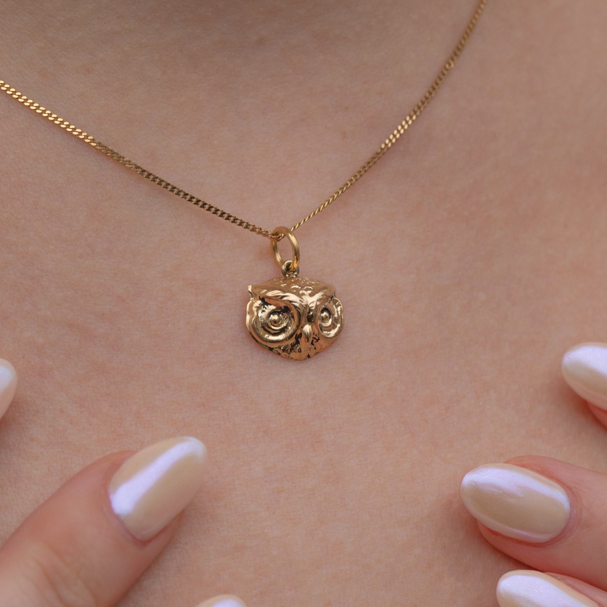 This sweet 14ct Gold owl charm will bring bundles of character to your curated necklace stack! Crafted from solid 14ct Gold, this vintage treasure displays ornately engraved details that perfectly capture this wise bird's personality.
