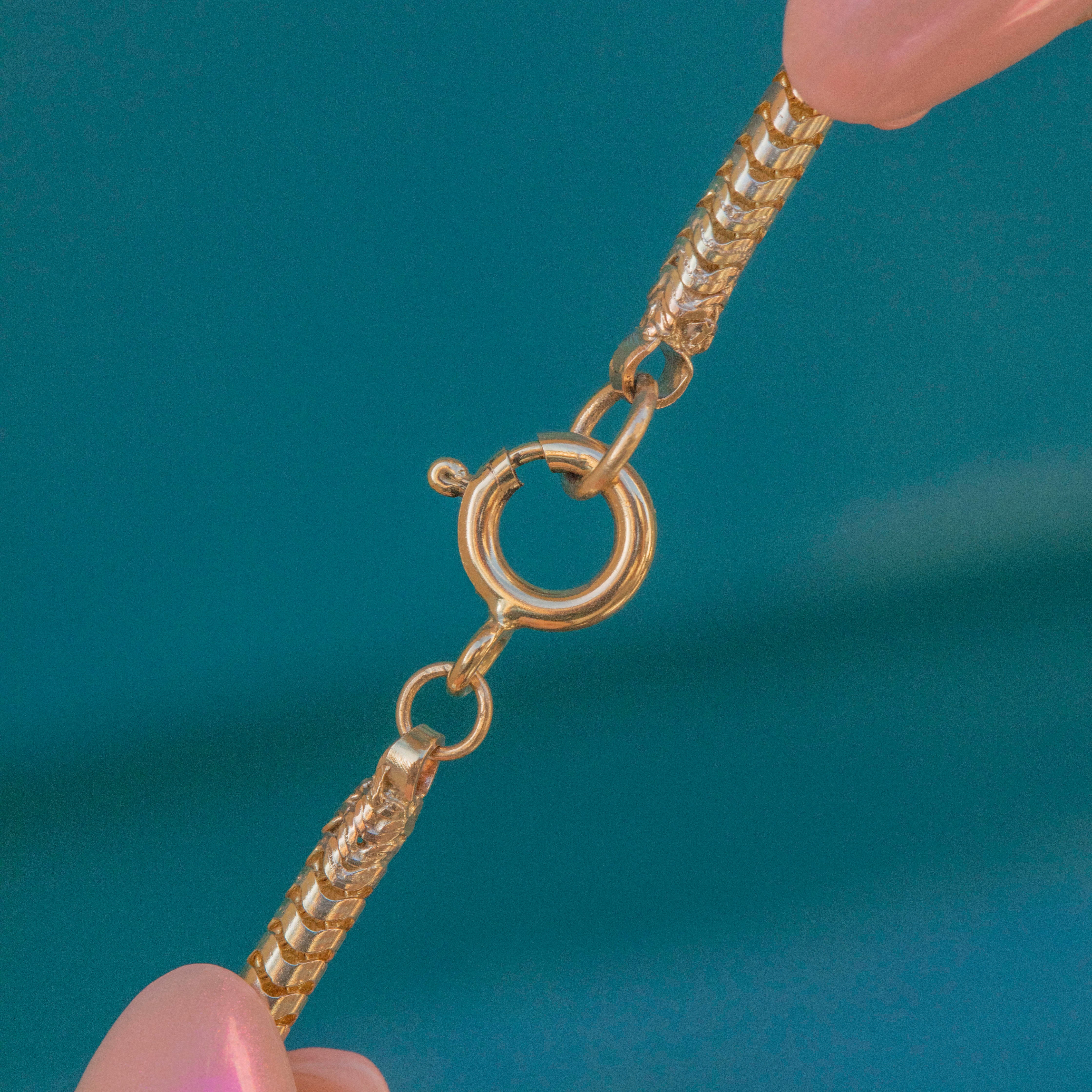 This antique 9ct Gold snake chain would be the perfect addition to your antique jewellery collection! An undeniably stylish and classic piece of antique jewellery, this Victorian 9ct Gold chain is perfect for all occasions, looking especially chic incorporated into your necklace stack.