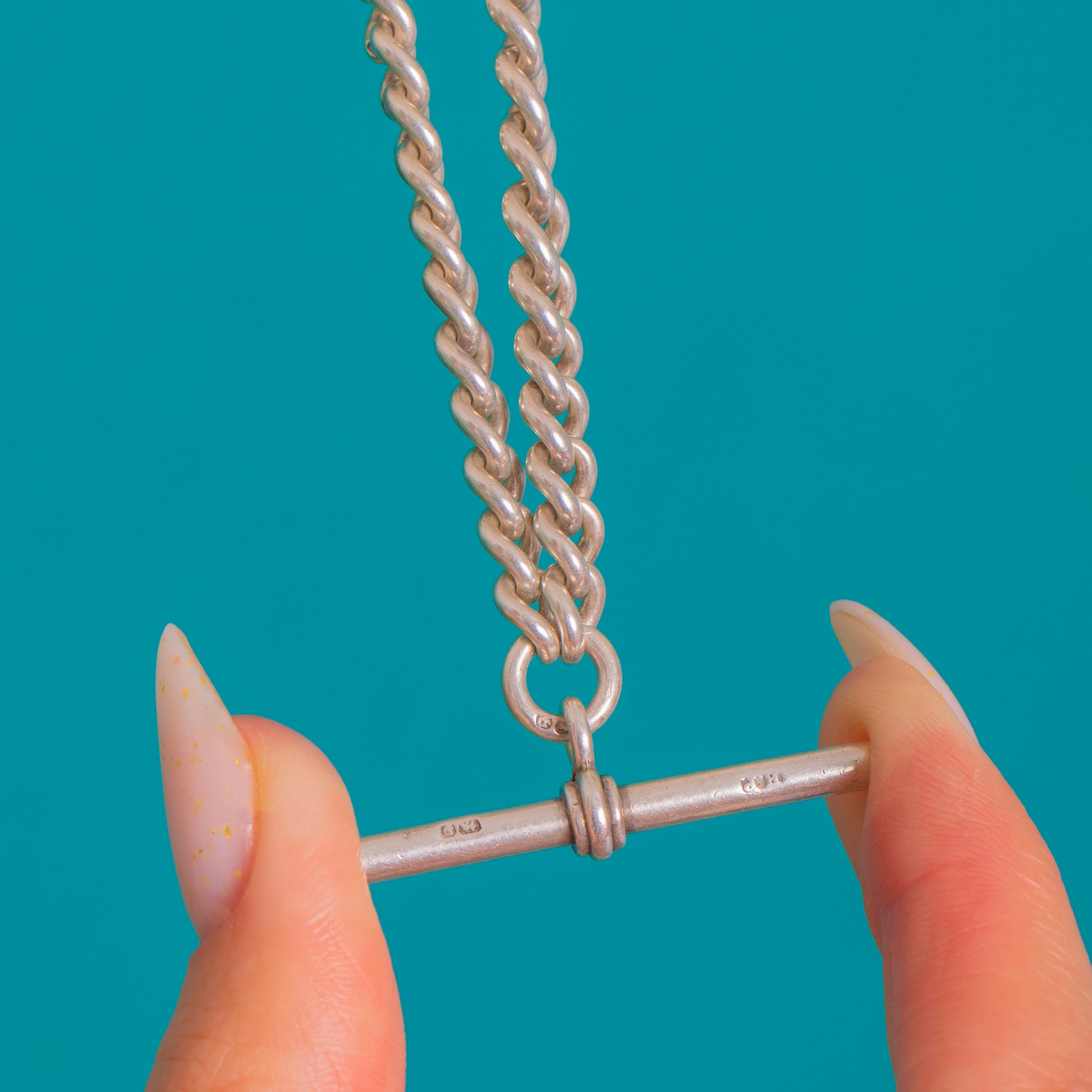 15.5" Antique Silver Albert Chain, T-Bar - Hallmarked on Every Link