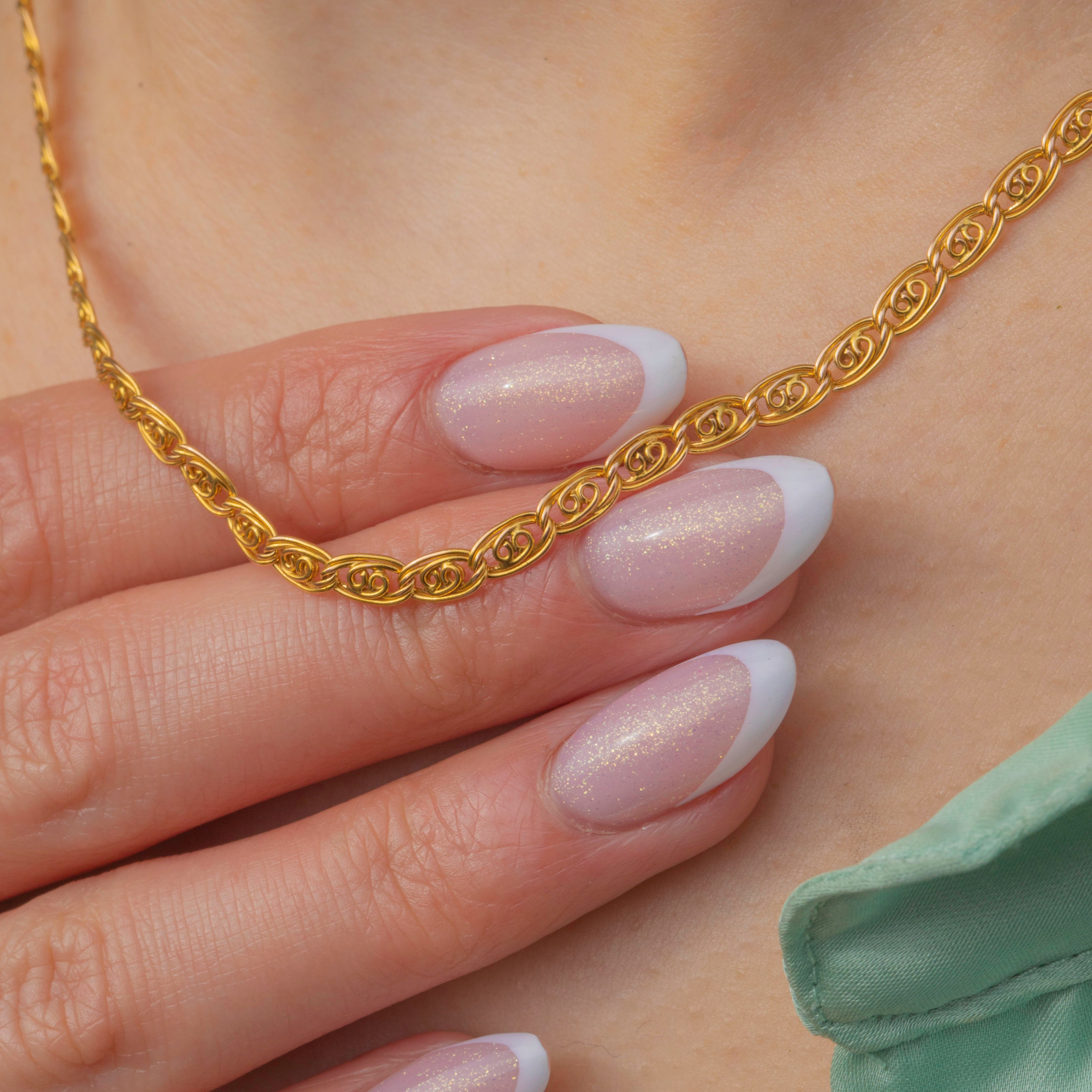 At a desirable 15" long, she is a wonderful wearable length, sitting snug against your neckline. This Victorian chain will make a wonderful addition to a layered necklace stack and will quickly become your newest obsession!