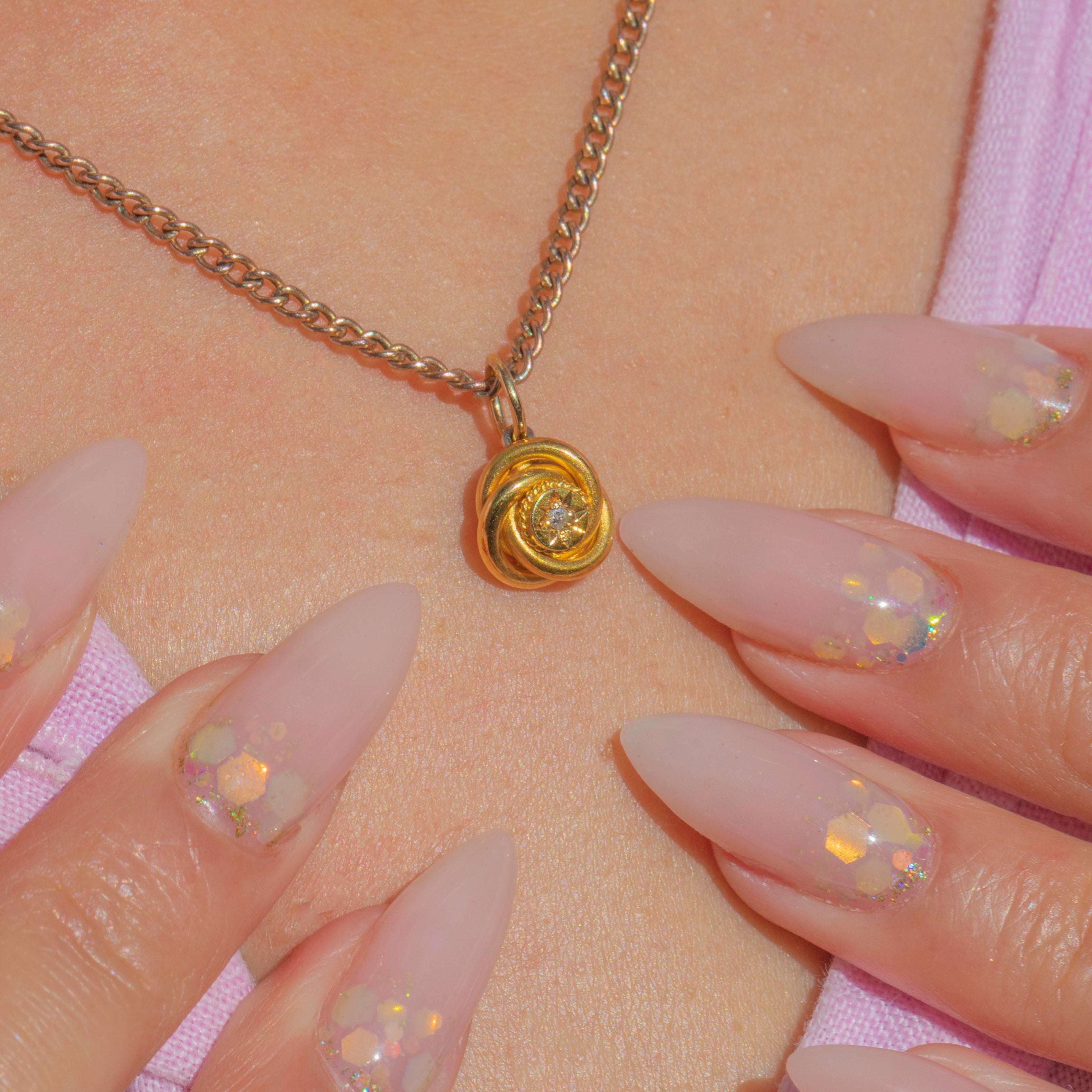 This dainty Edwardian pendant is crafted in rich 15ct Gold and set with a single sparkling Diamond. The bright Diamond adds a touch of fire and light to the smooth Gold setting, creating a timeless and elegant look.