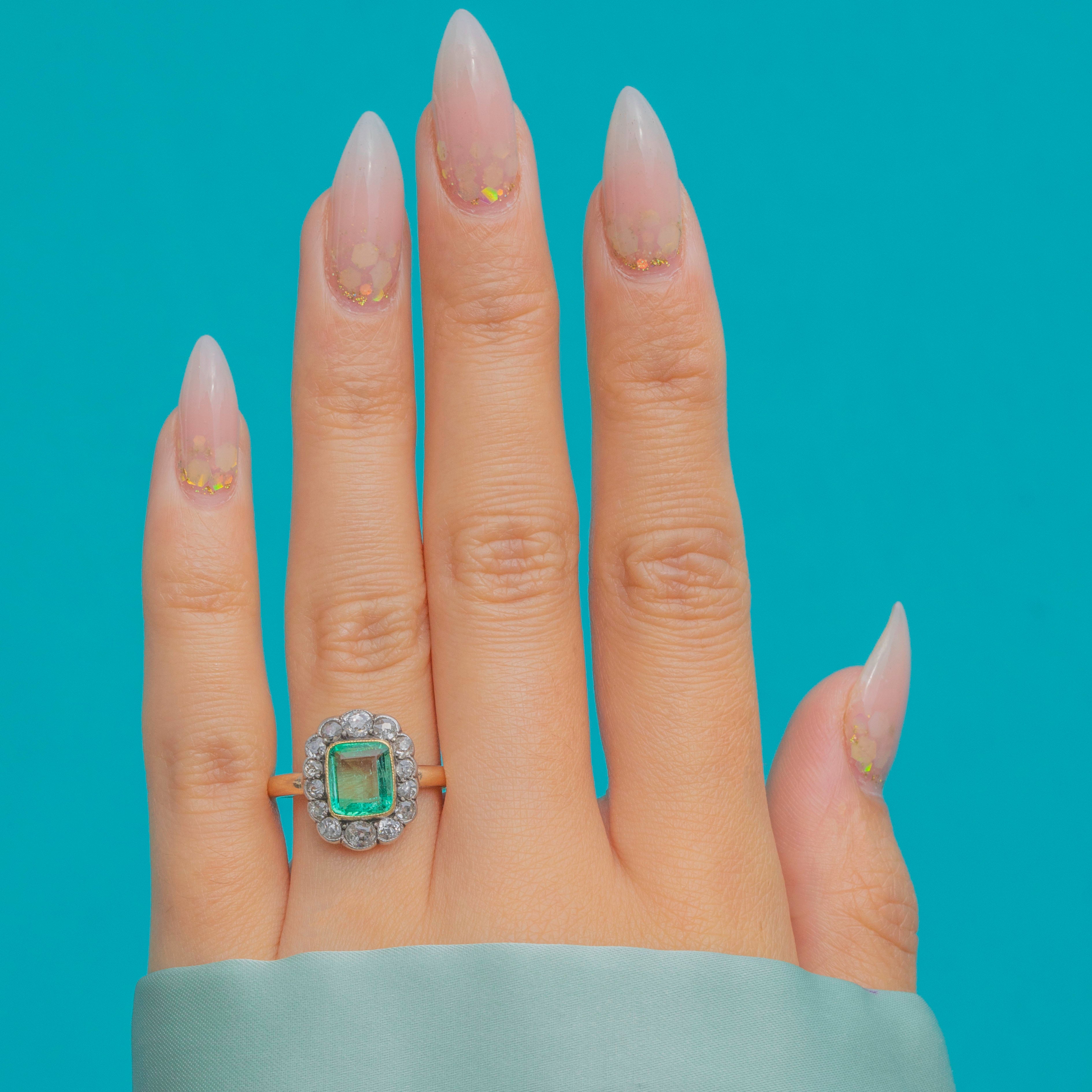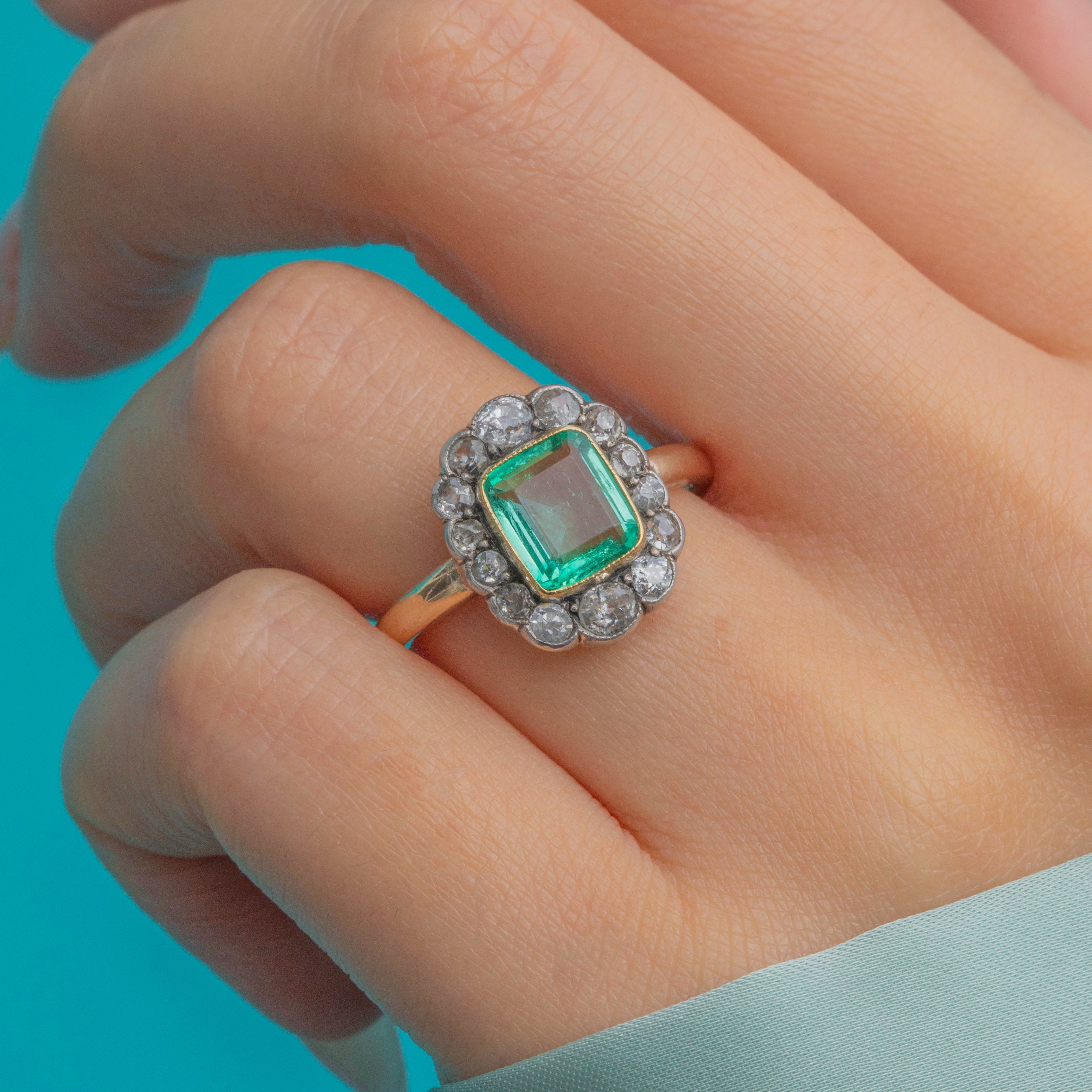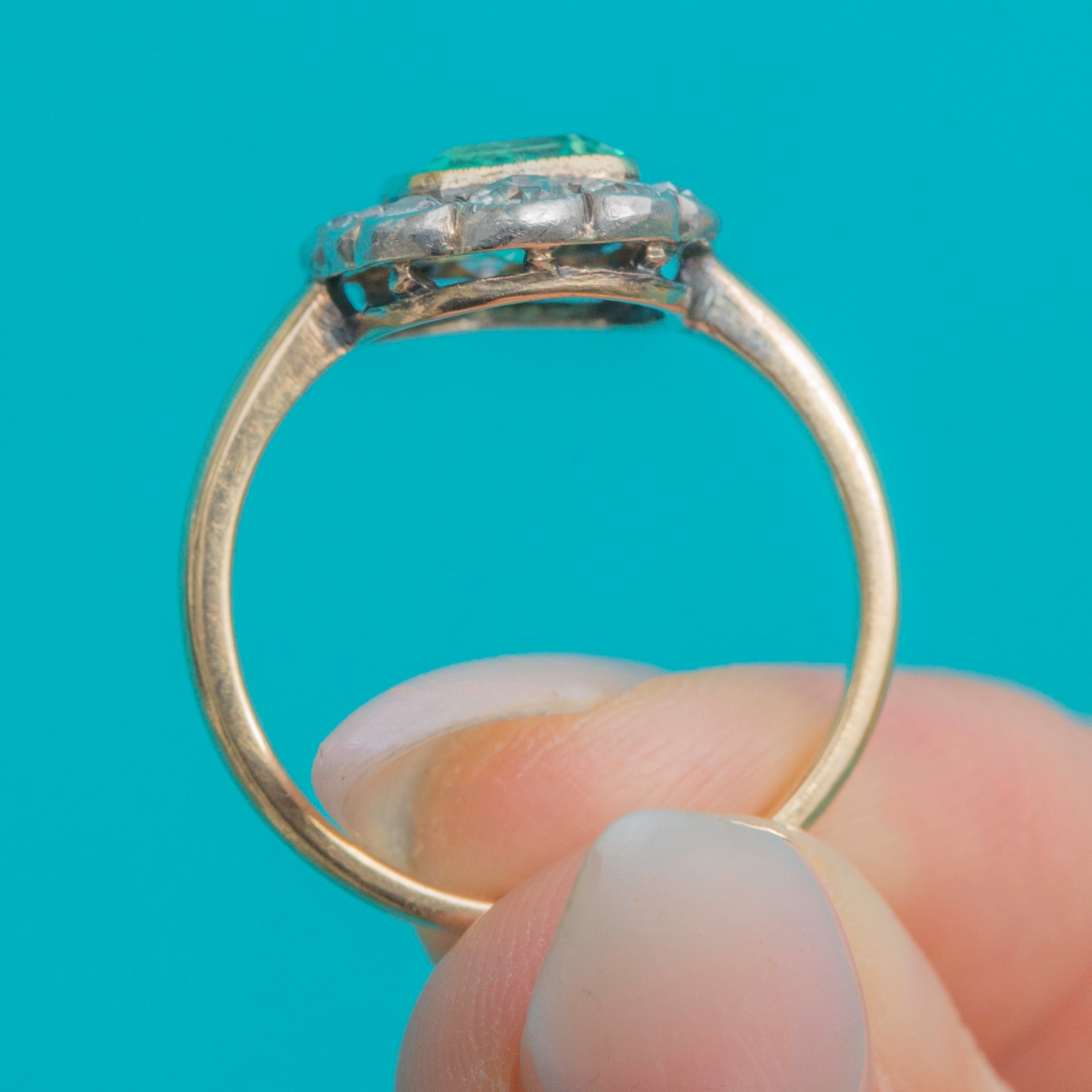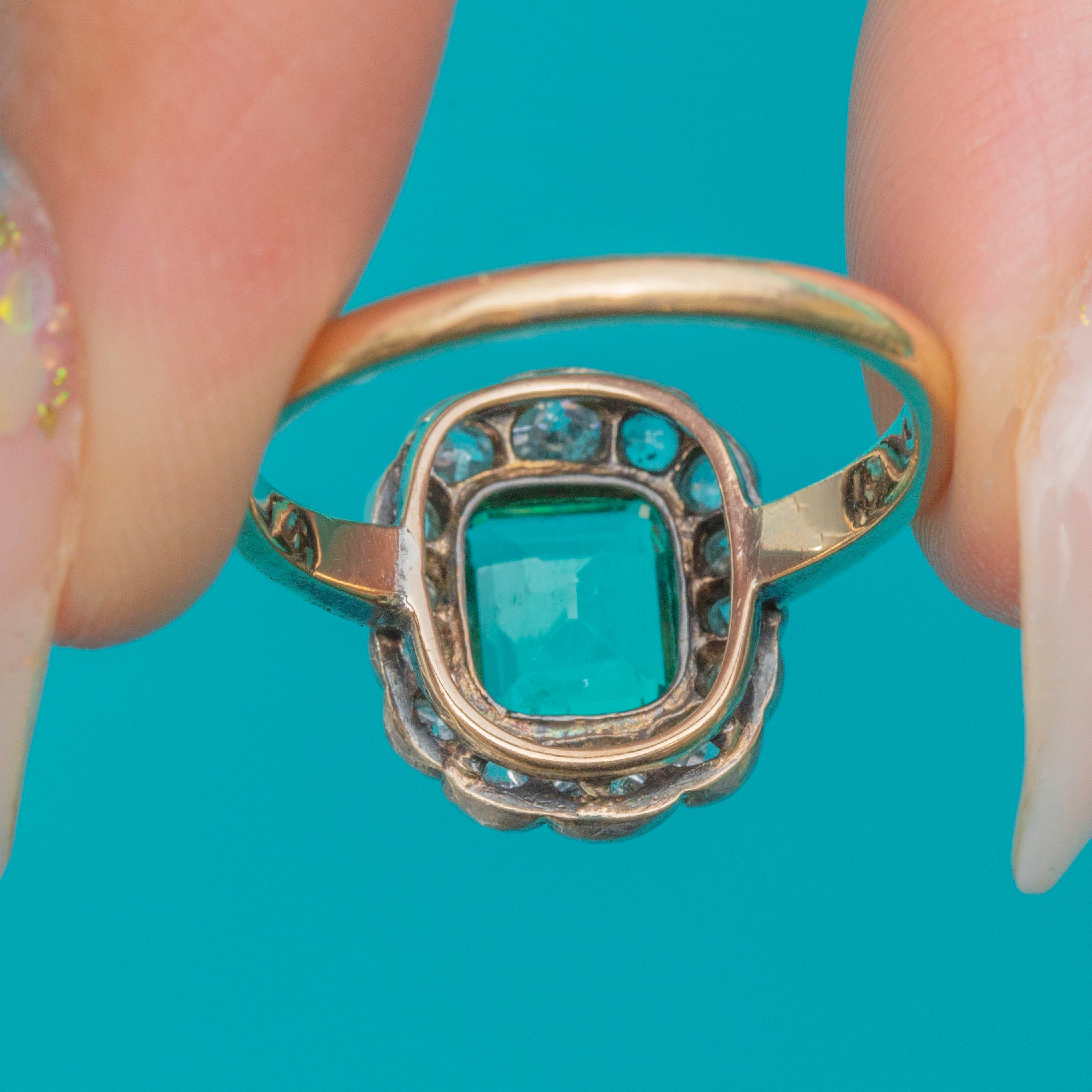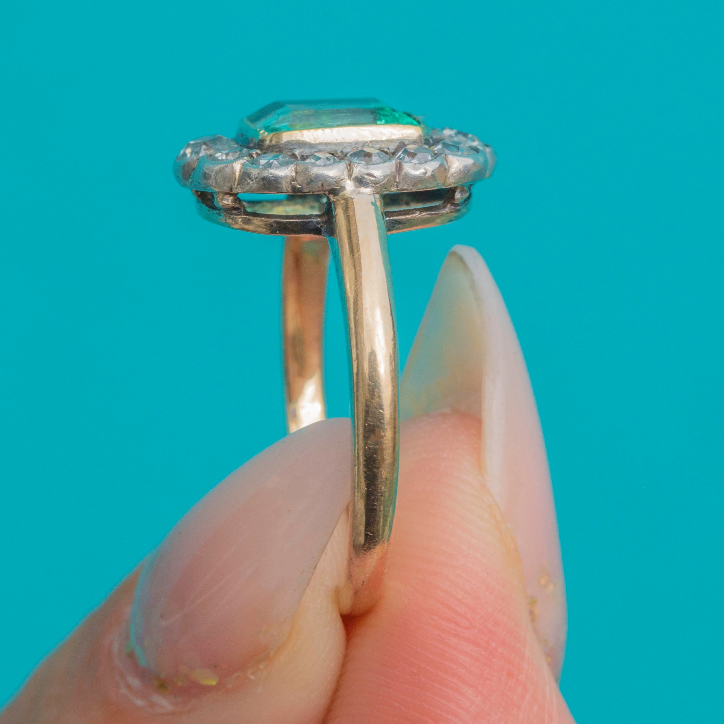 Antique 15ct Gold Emerald Diamond Cluster Ring, 1.00ct Emerald