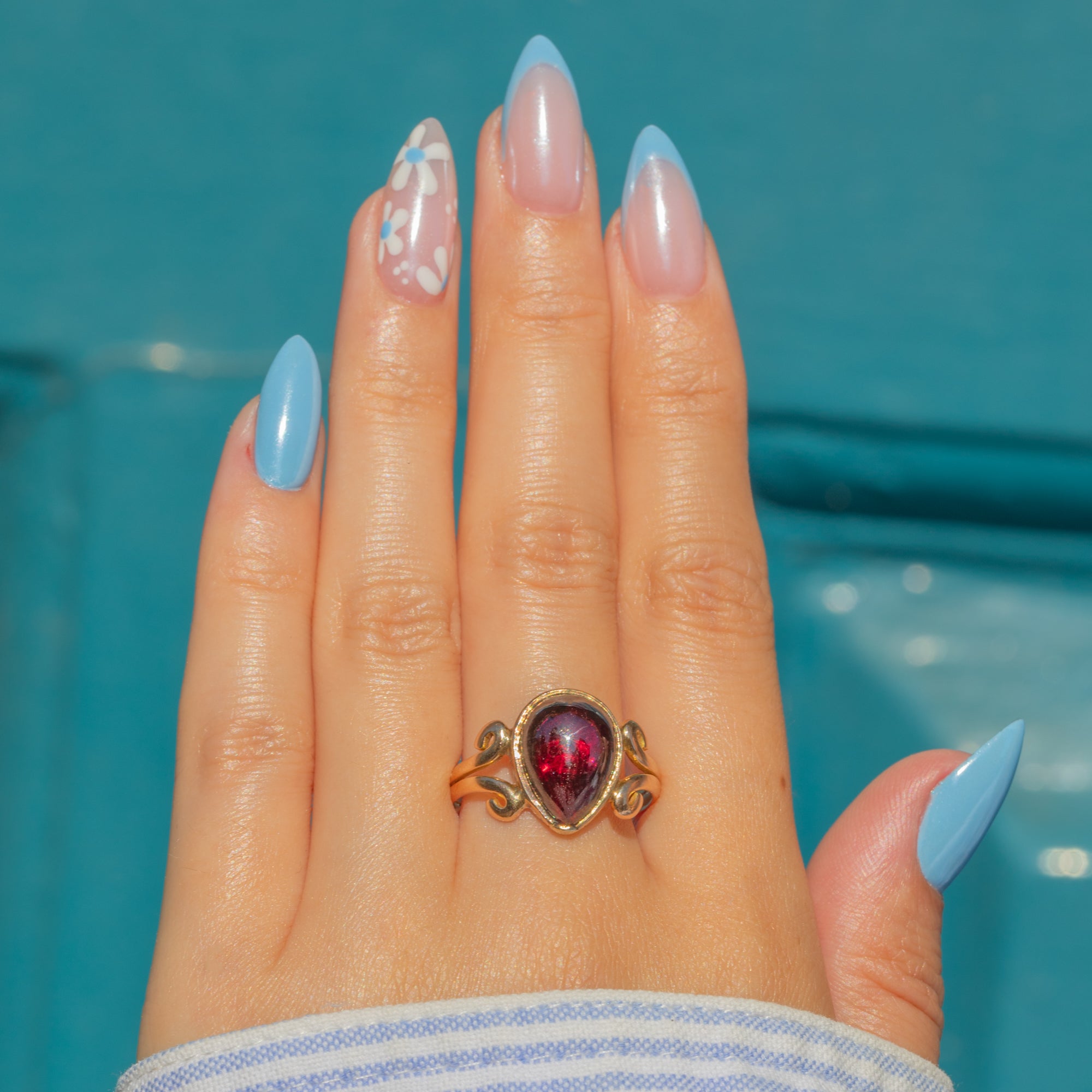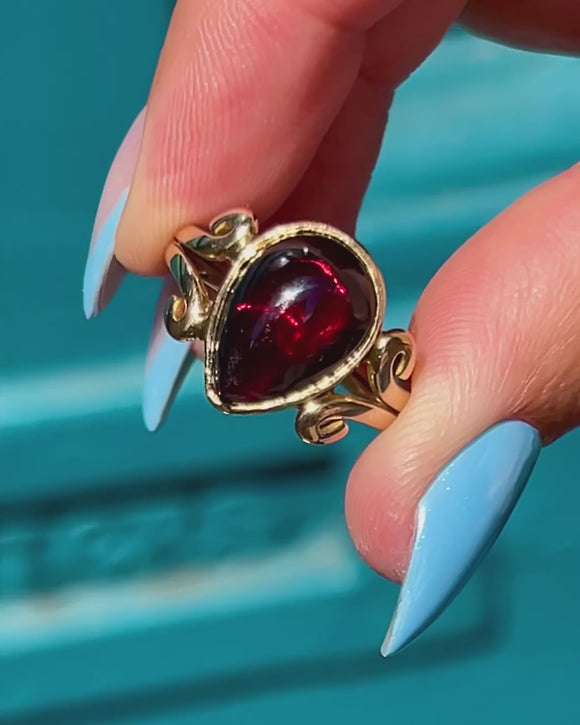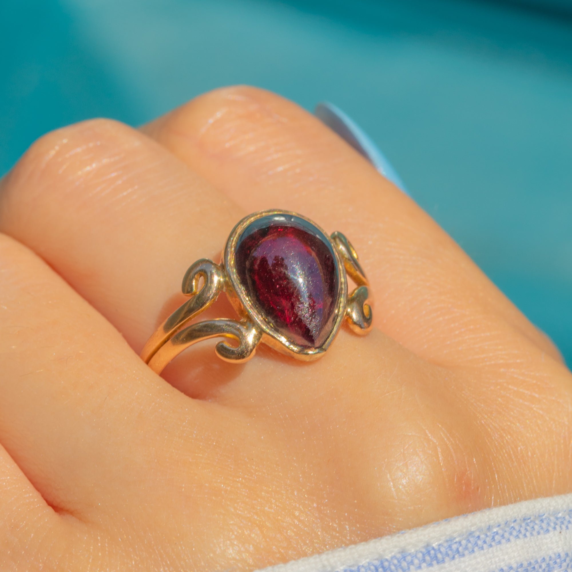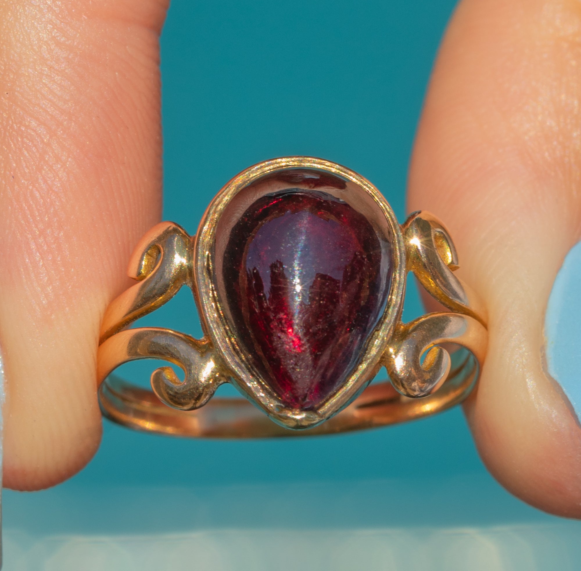 15ct Gold Garnet Pear Cabochon Ring 1.95ct