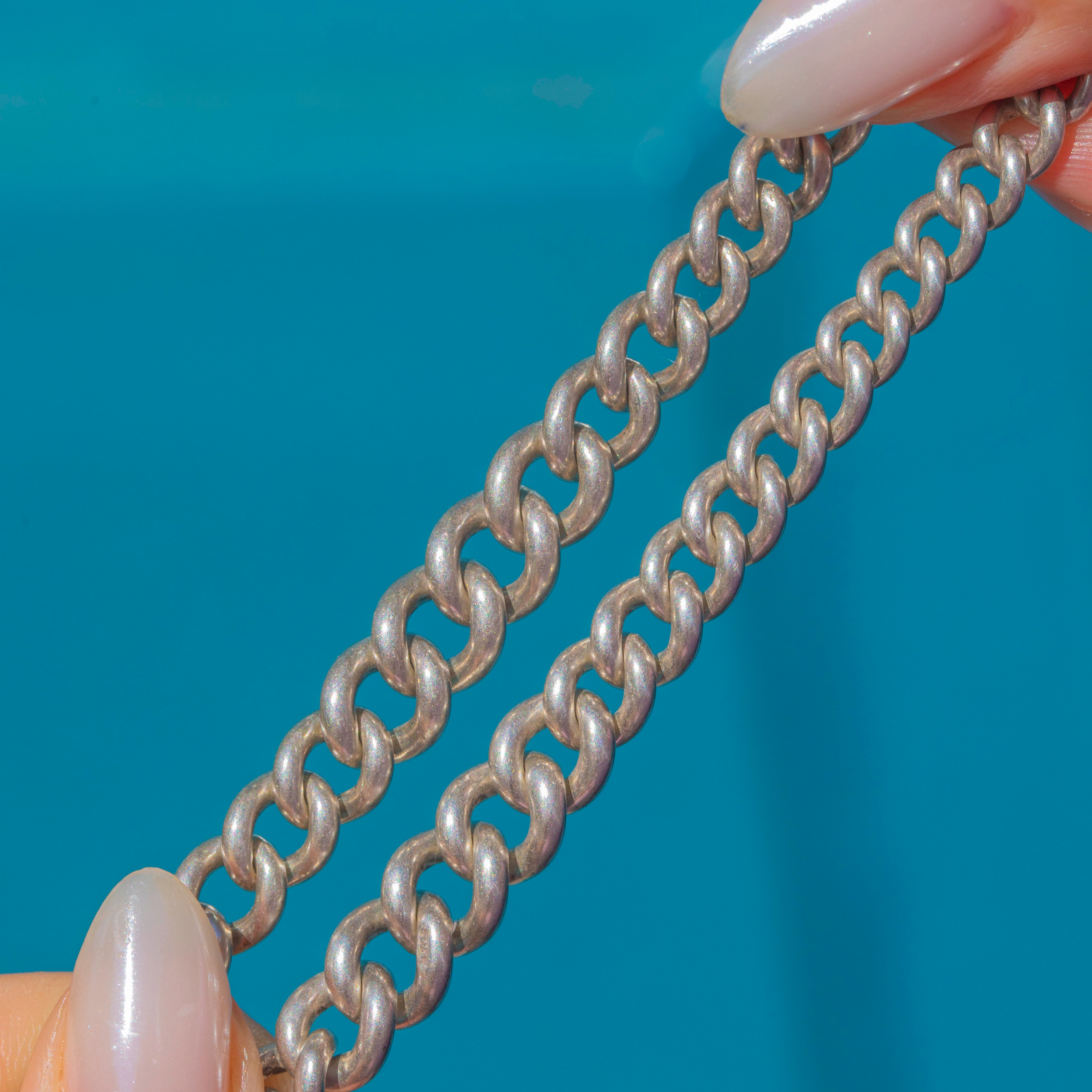 Albert Chains are a must-have for any collector, and this 16" antique Sterling Silver Albert chain would make a wonderful choice! The graduating links give this classic design a fluid look and a touch of something different.