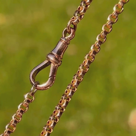 An elegant Victorian 9ct Gold belcher chain, timeless in its simplicity and rich in warm Golden hue. The classic round belcher links flow with beautiful fluidity, giving this piece a refined everyday presence that sits gracefully at the collarbone.