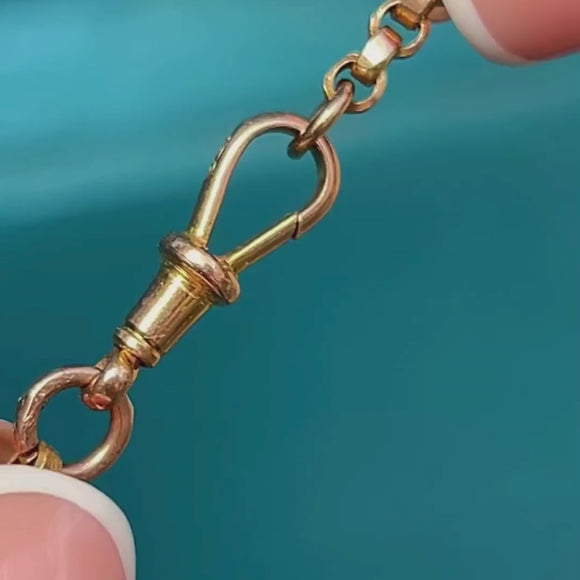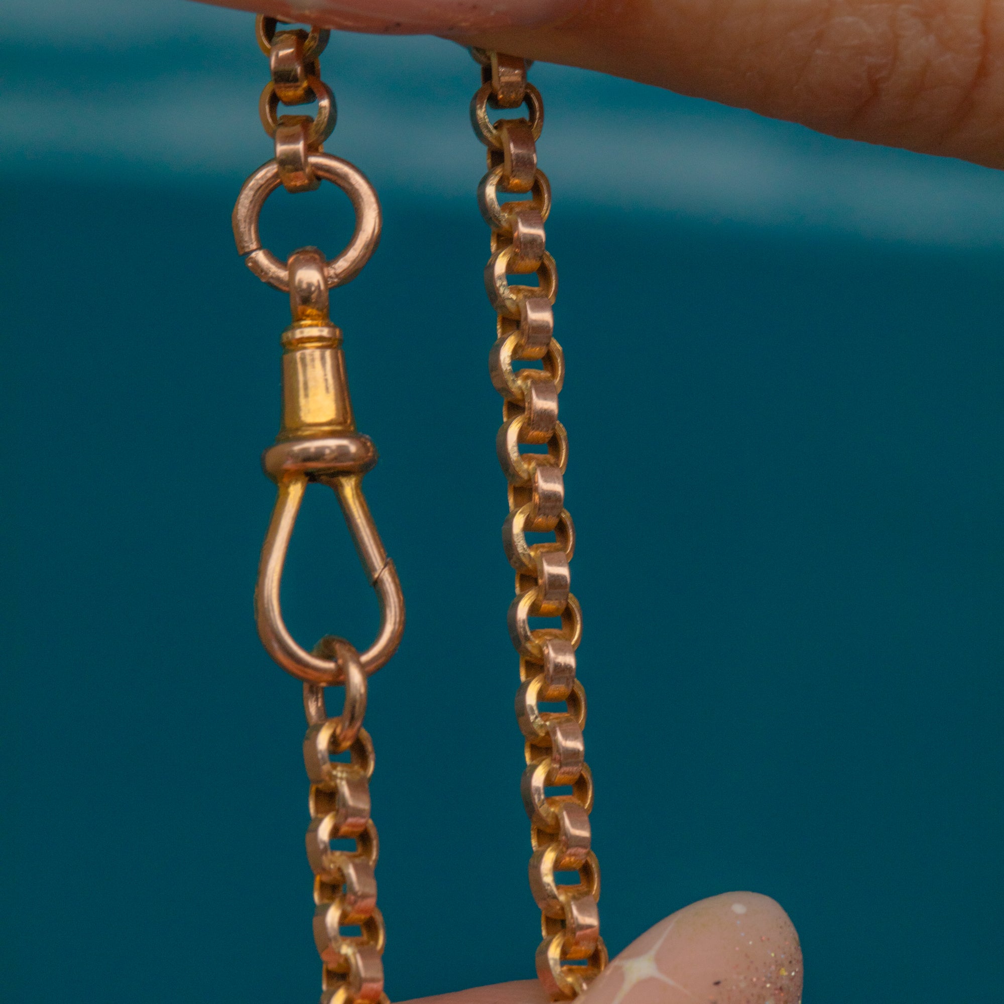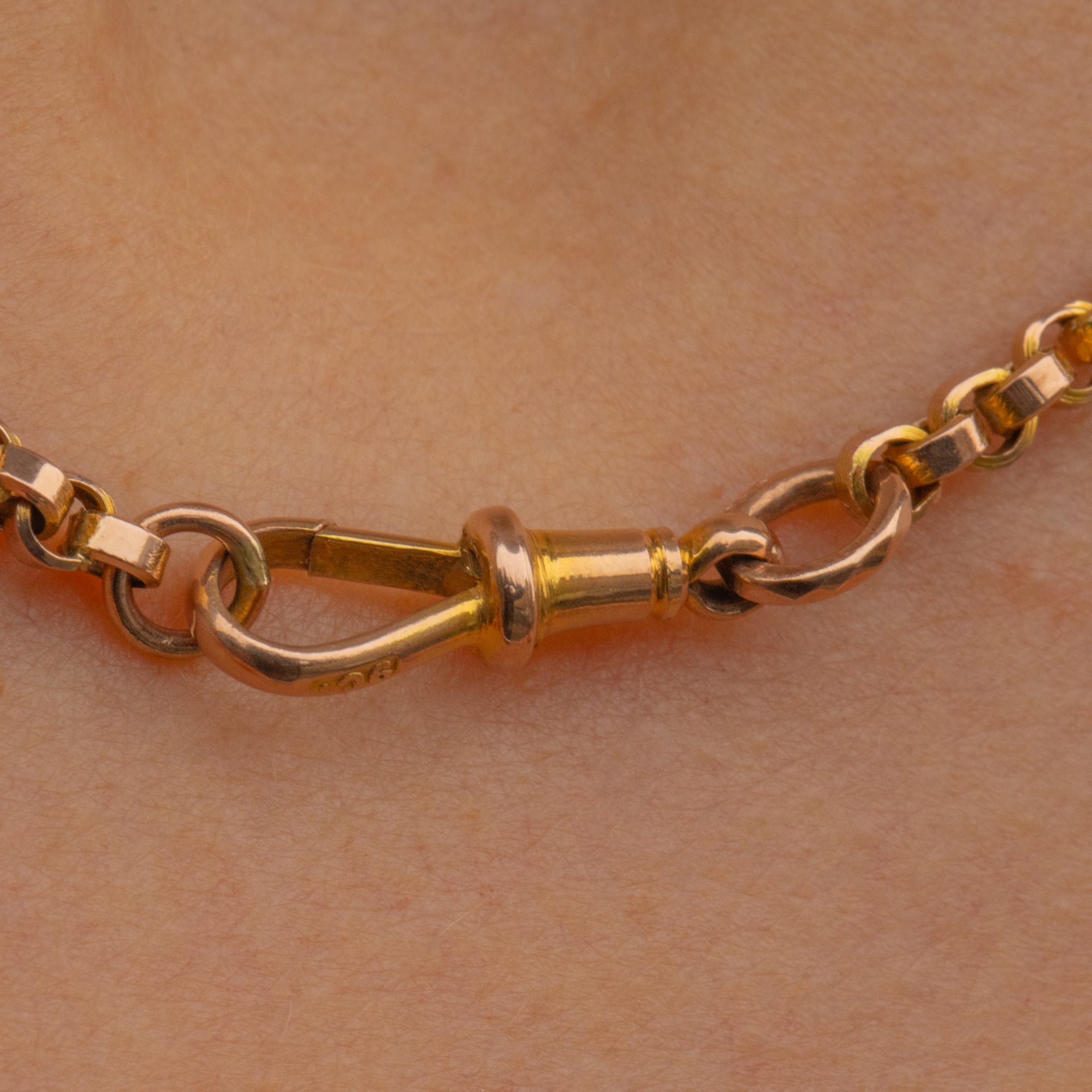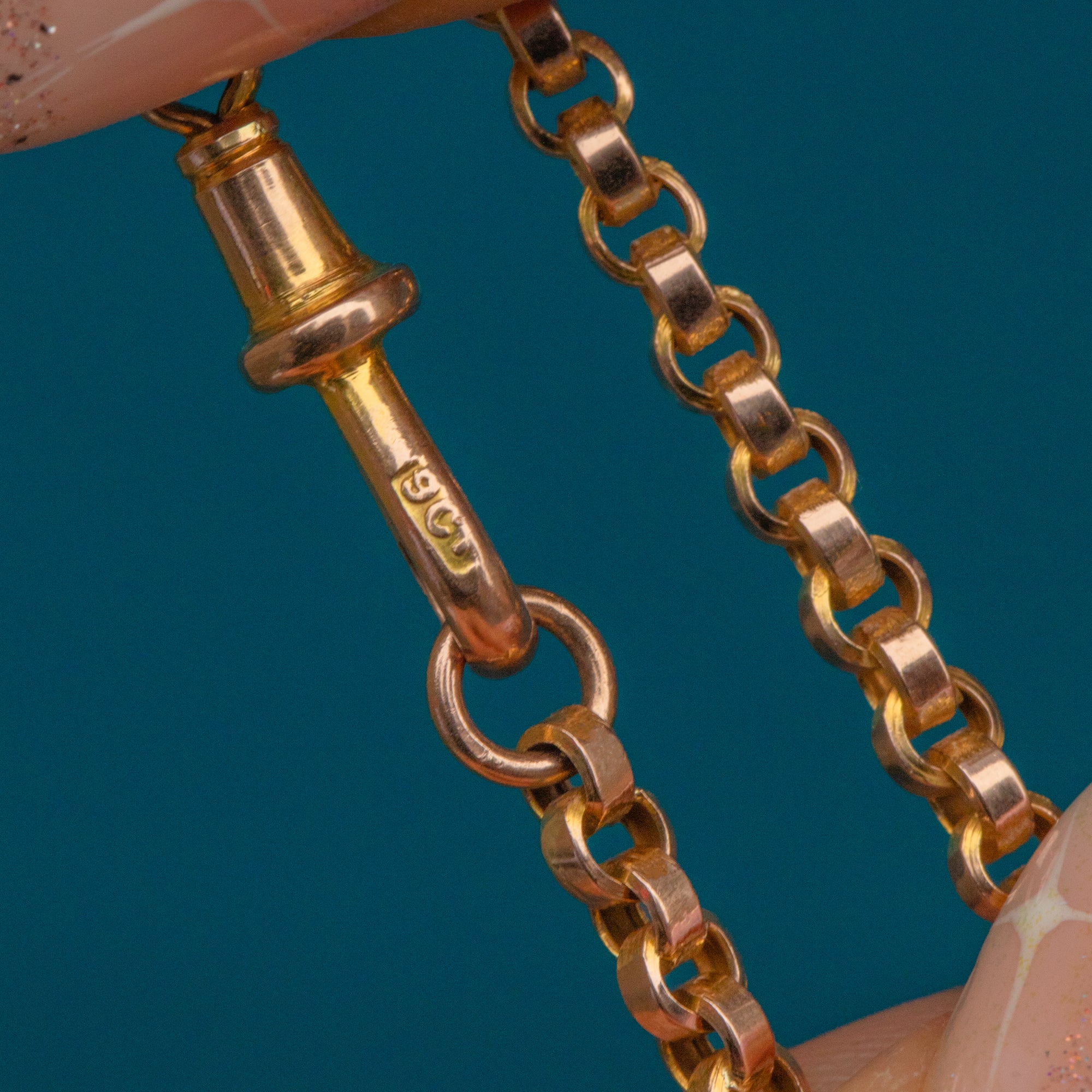 EXCELLENT. This Victorian Gold belcher chain is in fabulous condition throughout! Notably, the tone of the Gold is exquisite, a characteristic of high-quality antique jewellery. The belcher links are all secure throughout, and the dog-clip functions perfectly, allowing for both easy and comfortable wear!