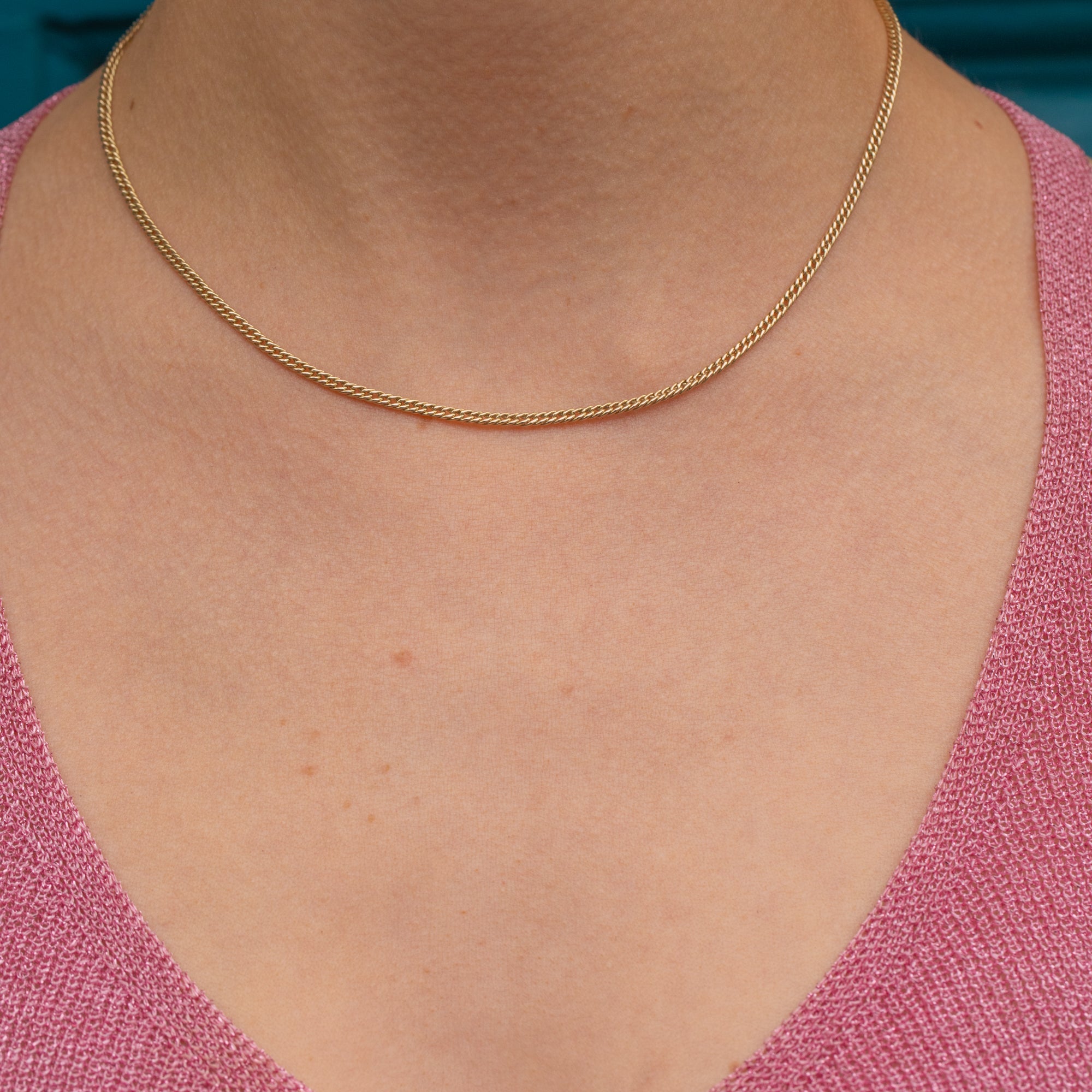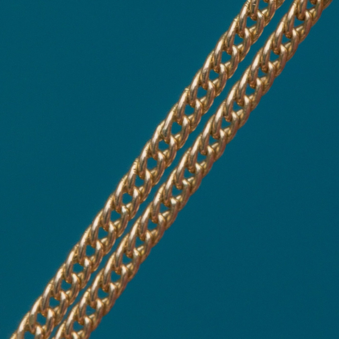 This versatile antique 9ct Gold curb chain will become an everyday essential in your jewellery collection! Tightly interlinked curb links make up the 16" length of this Victorian chain, crafted entirely from buttery 9ct Gold she will bring a subtle intriguing texture and decadence to your décolletage.