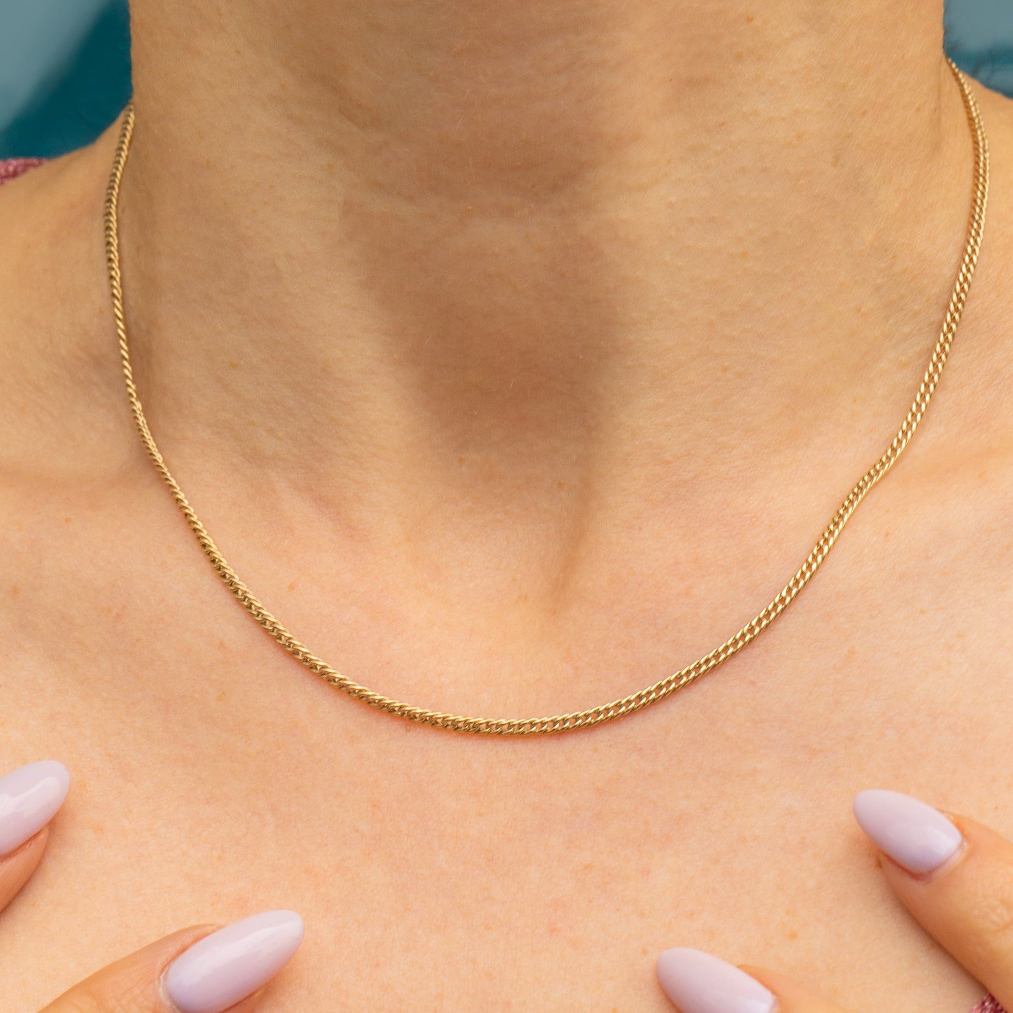 16" Antique 9ct Gold Curb Chain with Screw Dog-Clip (6.5g)