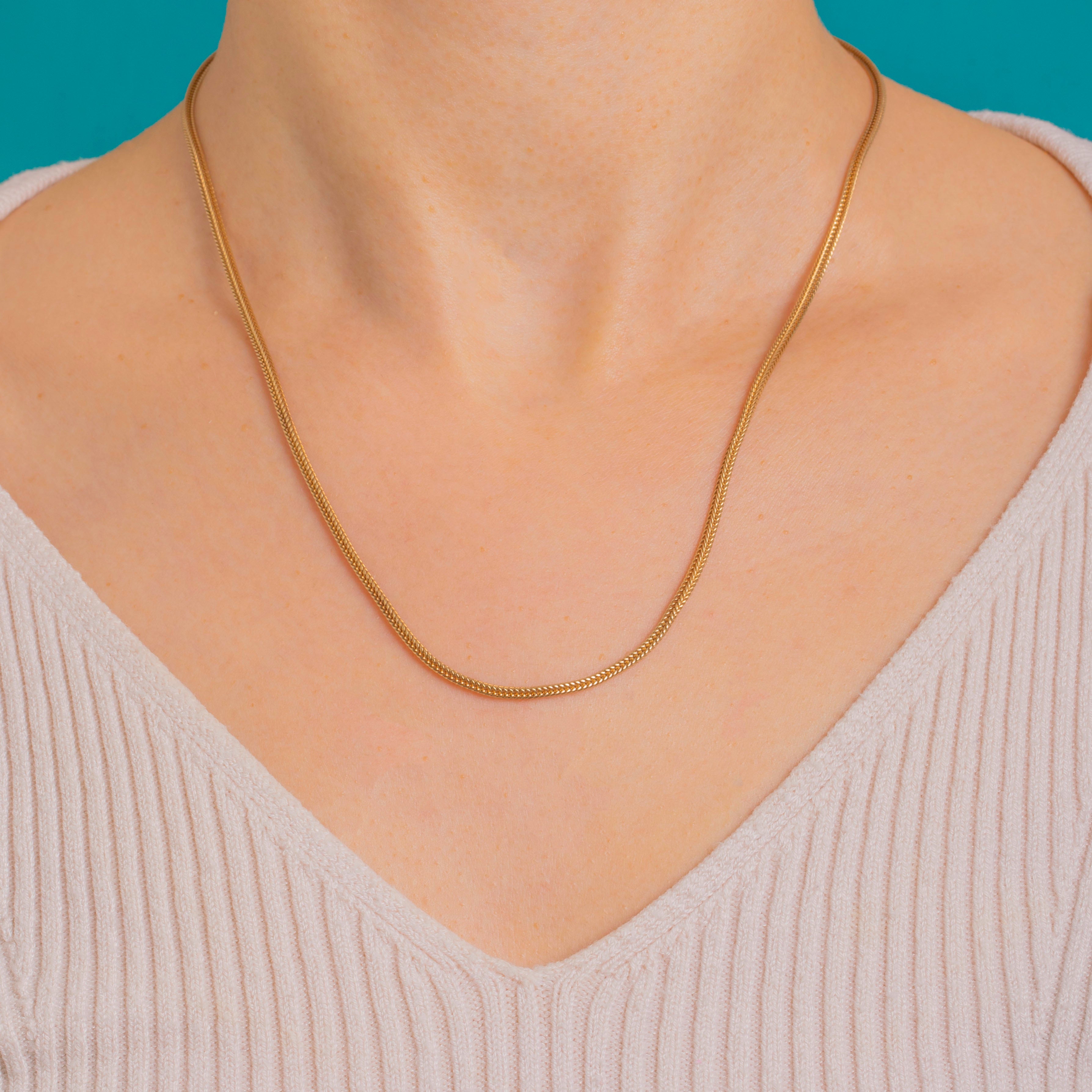 An elegant staple for every jewellery box, it layers gracefully or makes a chic piece worn solo. Completed with a classic bolt ring clasp, this versatile Victorian treasure brings understated polish to any look.