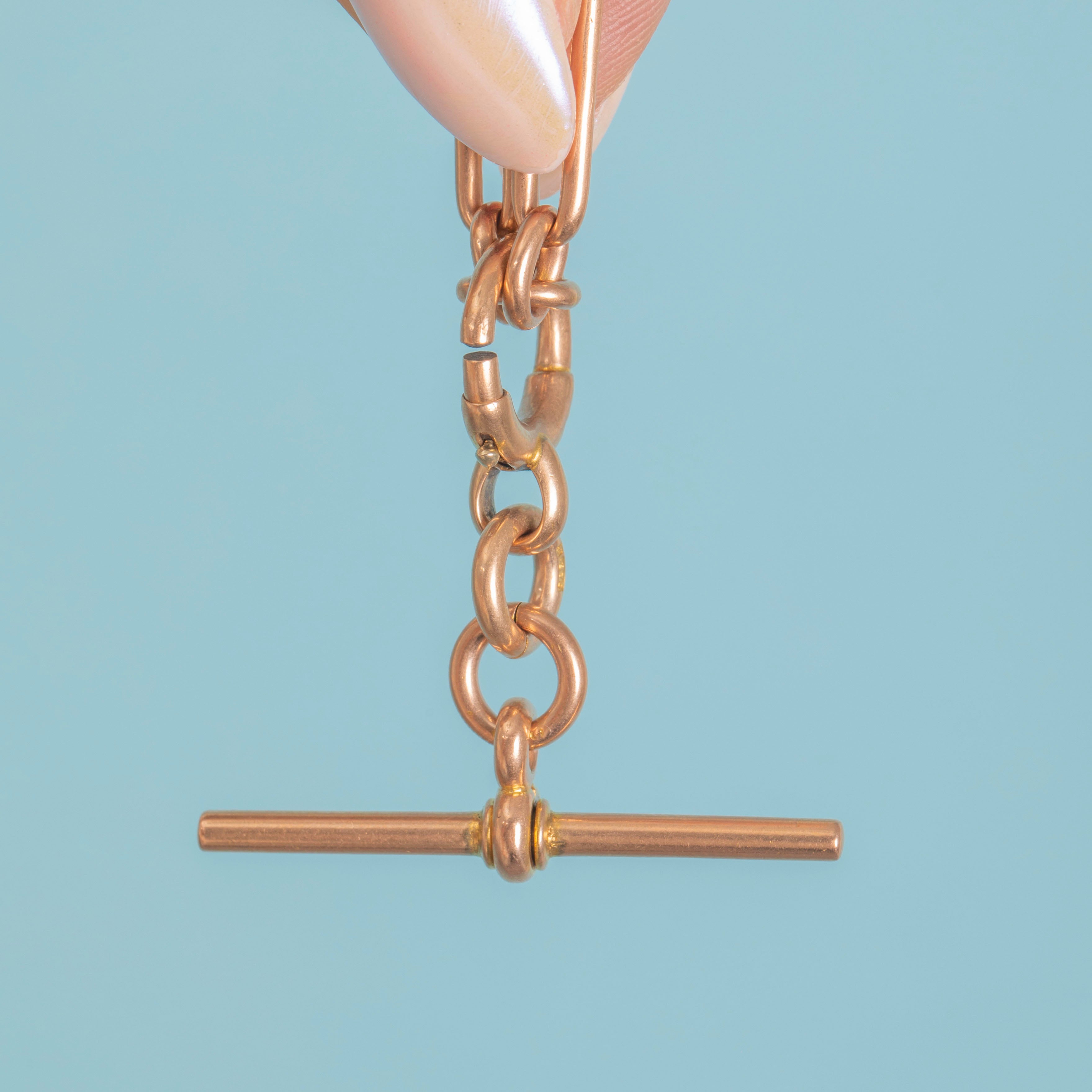 Providing ample styling opportunities, the T-Bar is fully detachable allowing you to swap and change how you wear this phenomenal Abert chain, with the dog-clips doubling up to attend to your charm or pendant holding needs! Every link has lovely antique stamps making this Victorian Gold chain a fine investment piece.