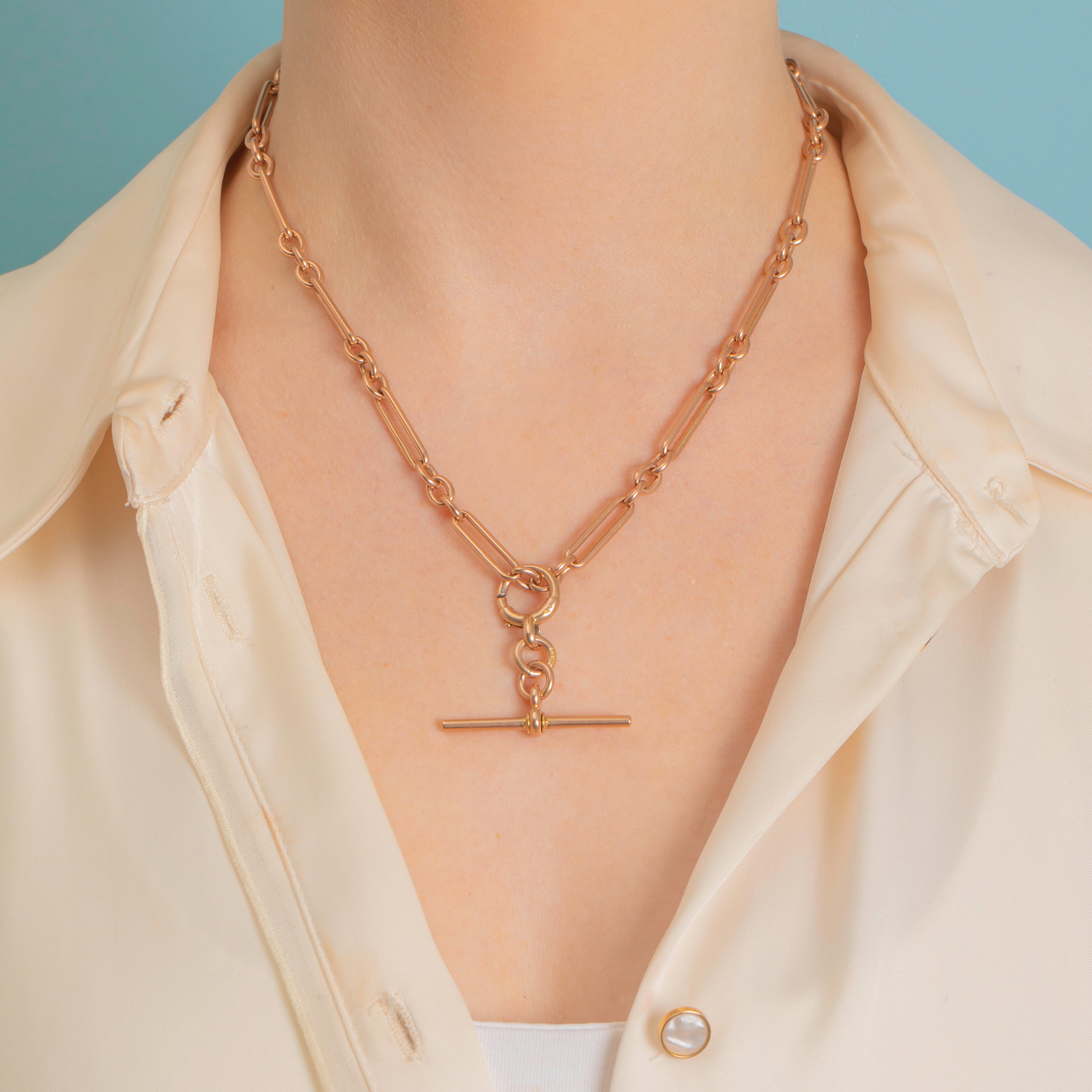 17" Antique 9ct Gold Trombone Chain with 2x Dog-Clips & T-Bar, 33.7g