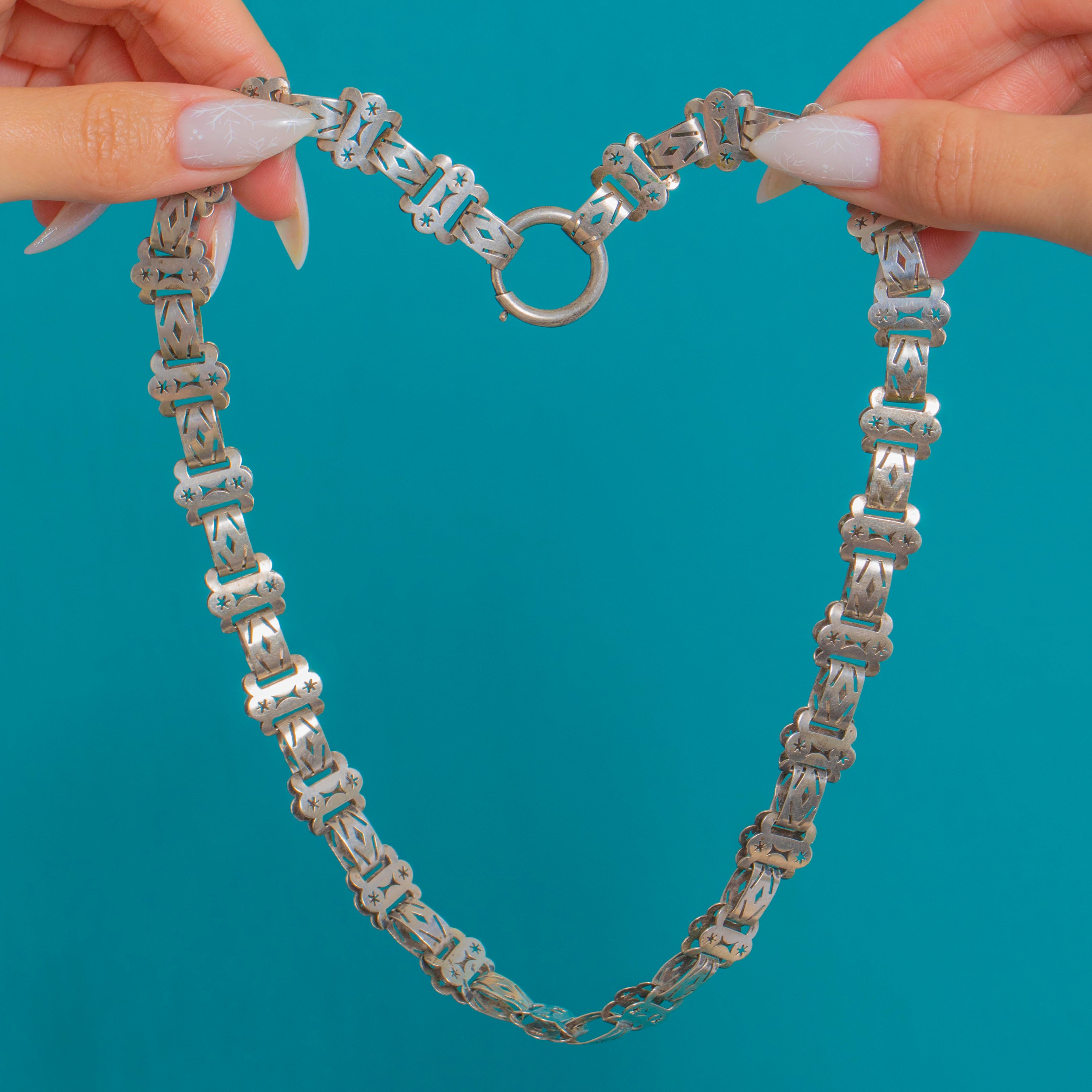 17" Victorian Pierced Silver Stars Book-Chain Large Bolt-Ring Clasp