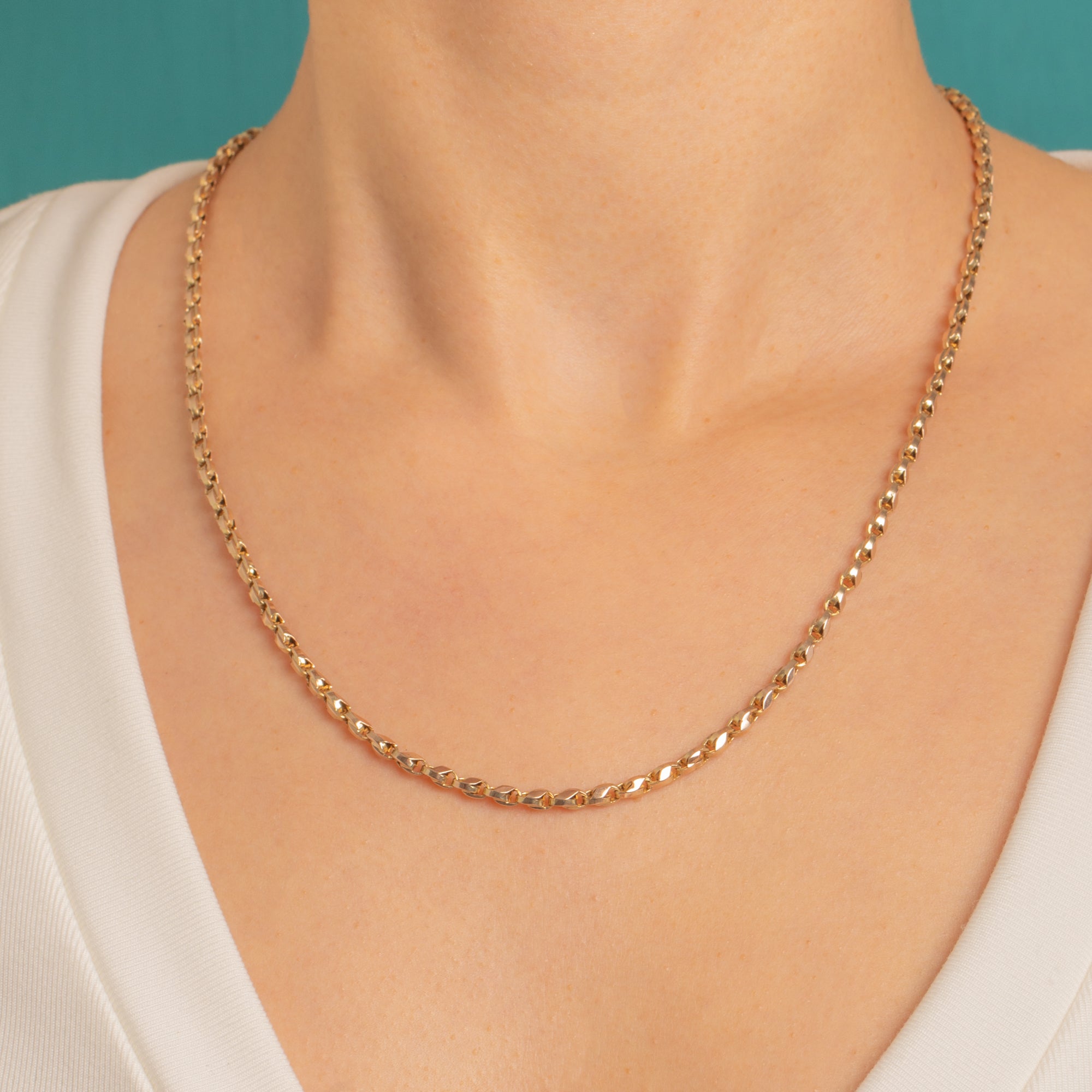 Catch the light with this Victorian 9ct Gold Tulip chain, its sleek, faceted links delivering a delicious sparkle with every movement. Crafted in a warm, buttery hue, this classic single-strand chain feels luxuriously smooth and beautifully refined, perfect worn solo or styled to elevate your favourite pieces.