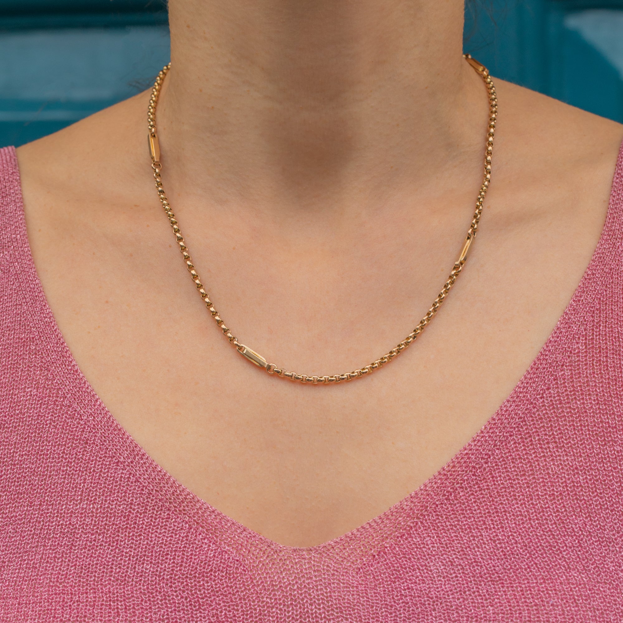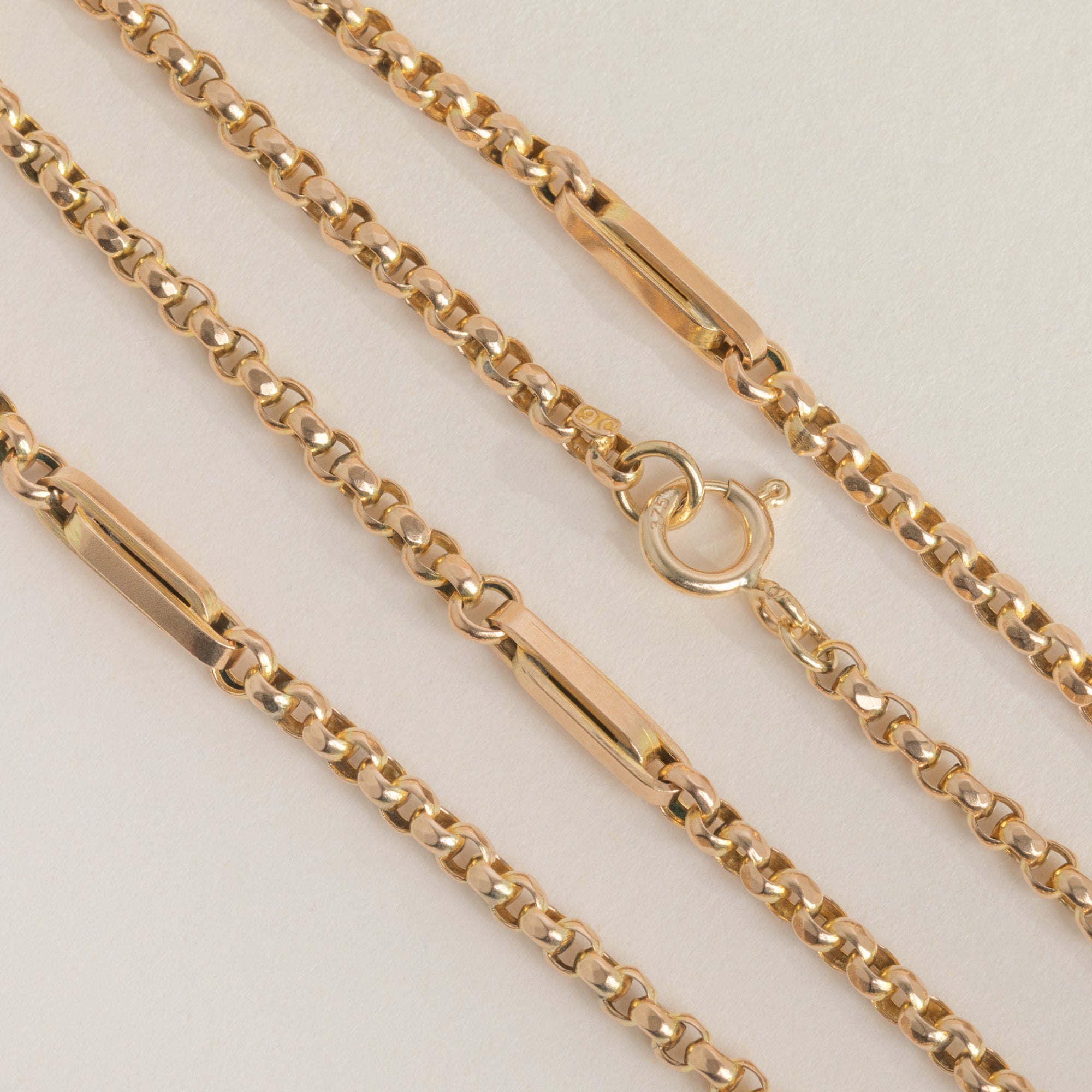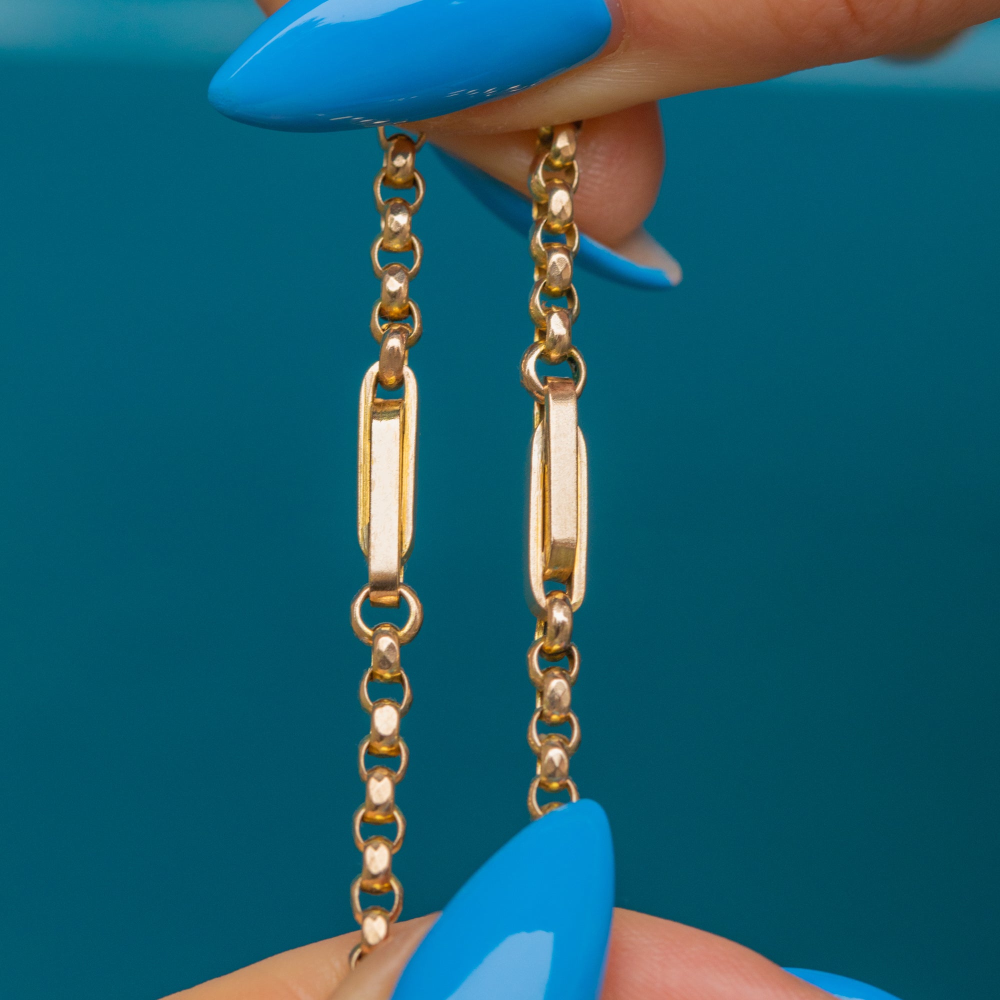We adore this 18.5" antique 9ct Gold paperclip link chain! Crafted from saturated 9ct Gold, this Victorian chain radiates warmth and sophistication and, with her unique paperclip links and faceted belcher links, is full of character.