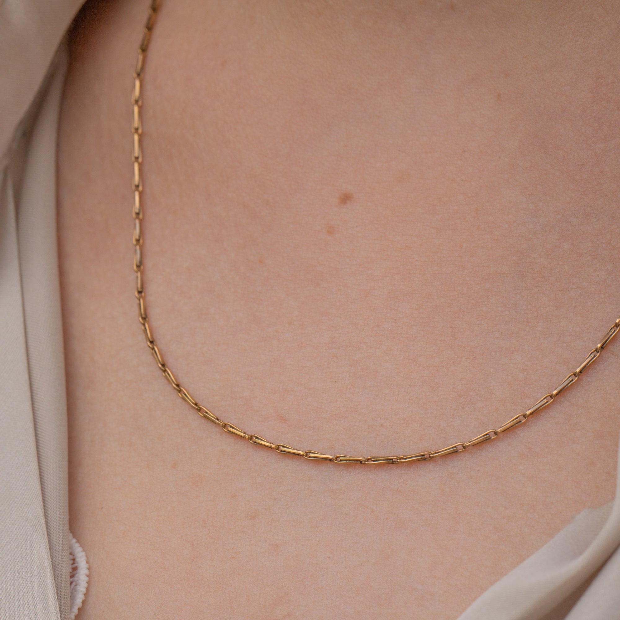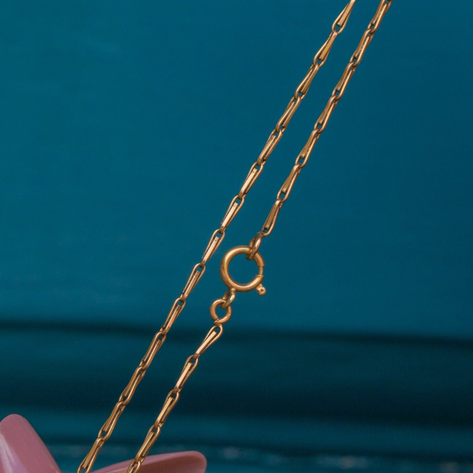 This 18.5" French 18ct Gold paperclip chain is a fabulous find! Perfect for everyday wear, no collection is complete without a timeless and classic Gold chain to which you can constantly return!