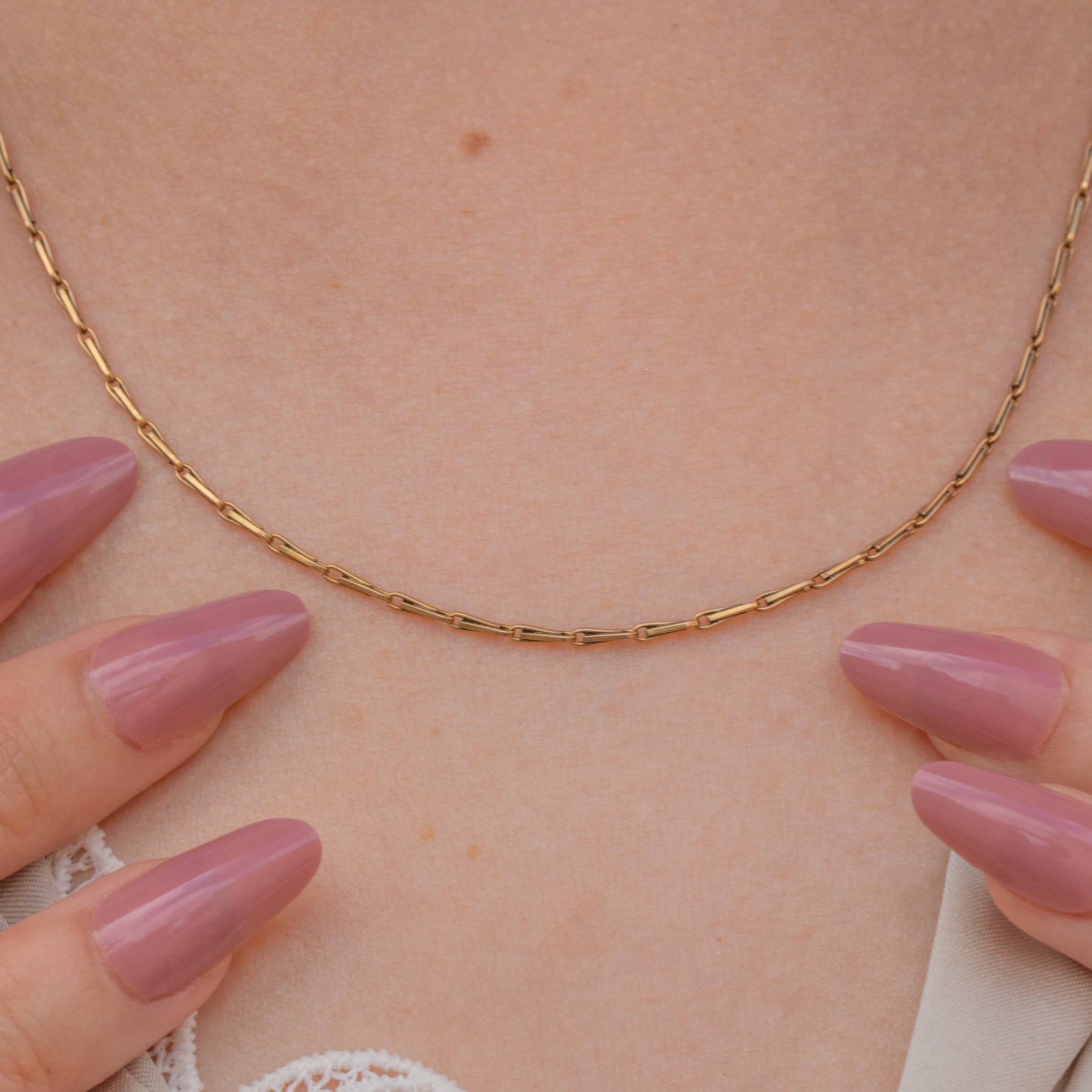 Crafted from solid 18ct Gold, this French fancy will provide your necklace stack with texture, with her dainty Paperclip links catching the light beautifully!