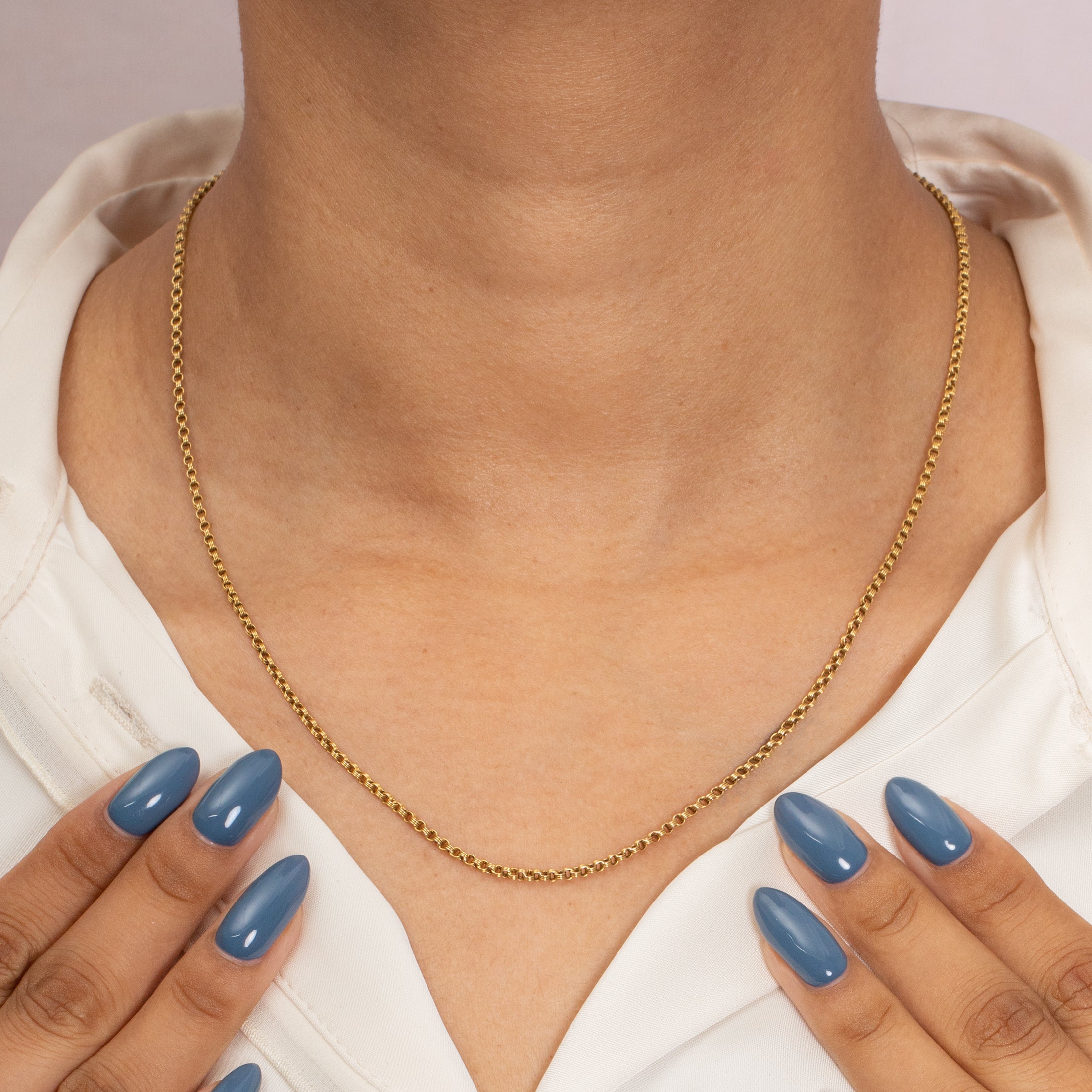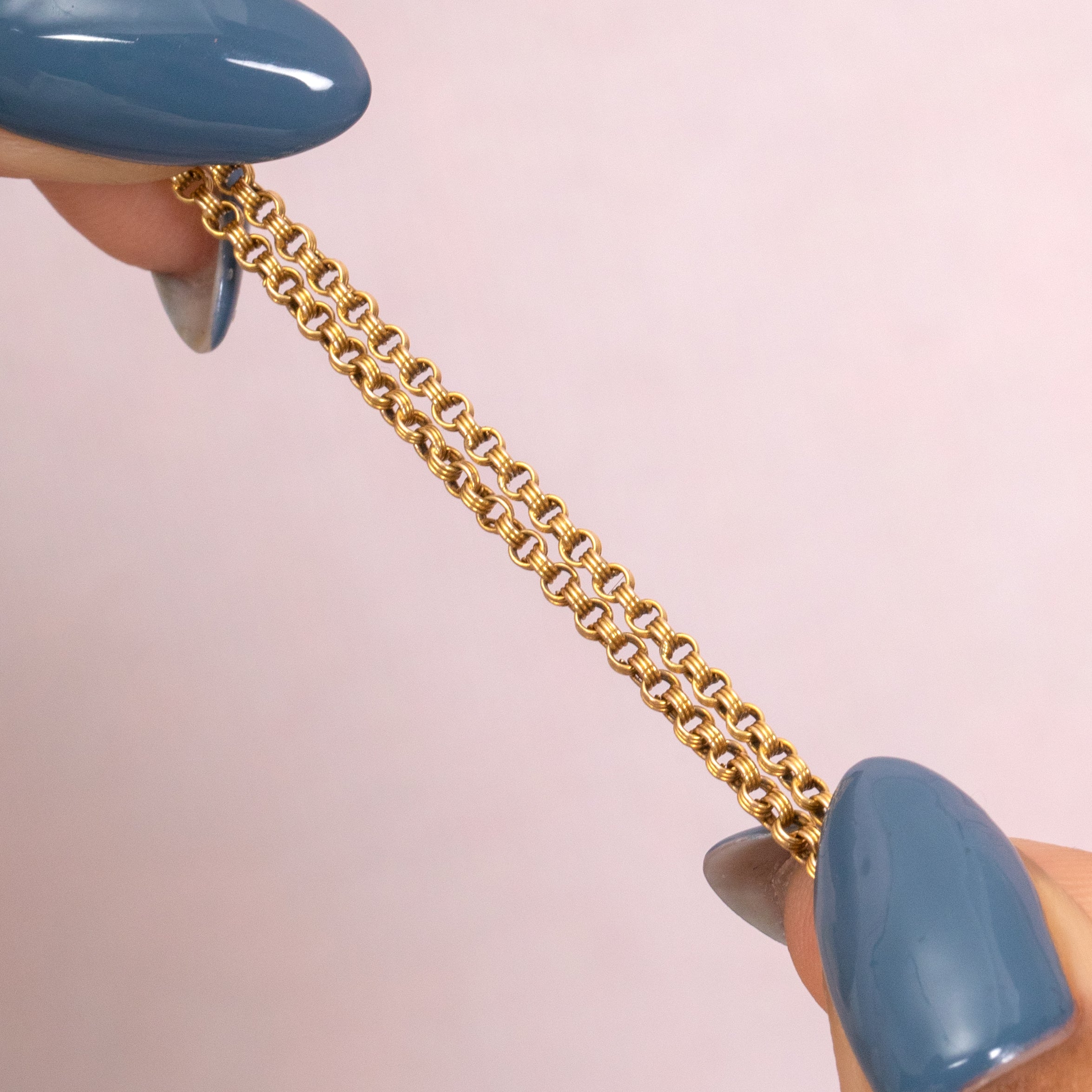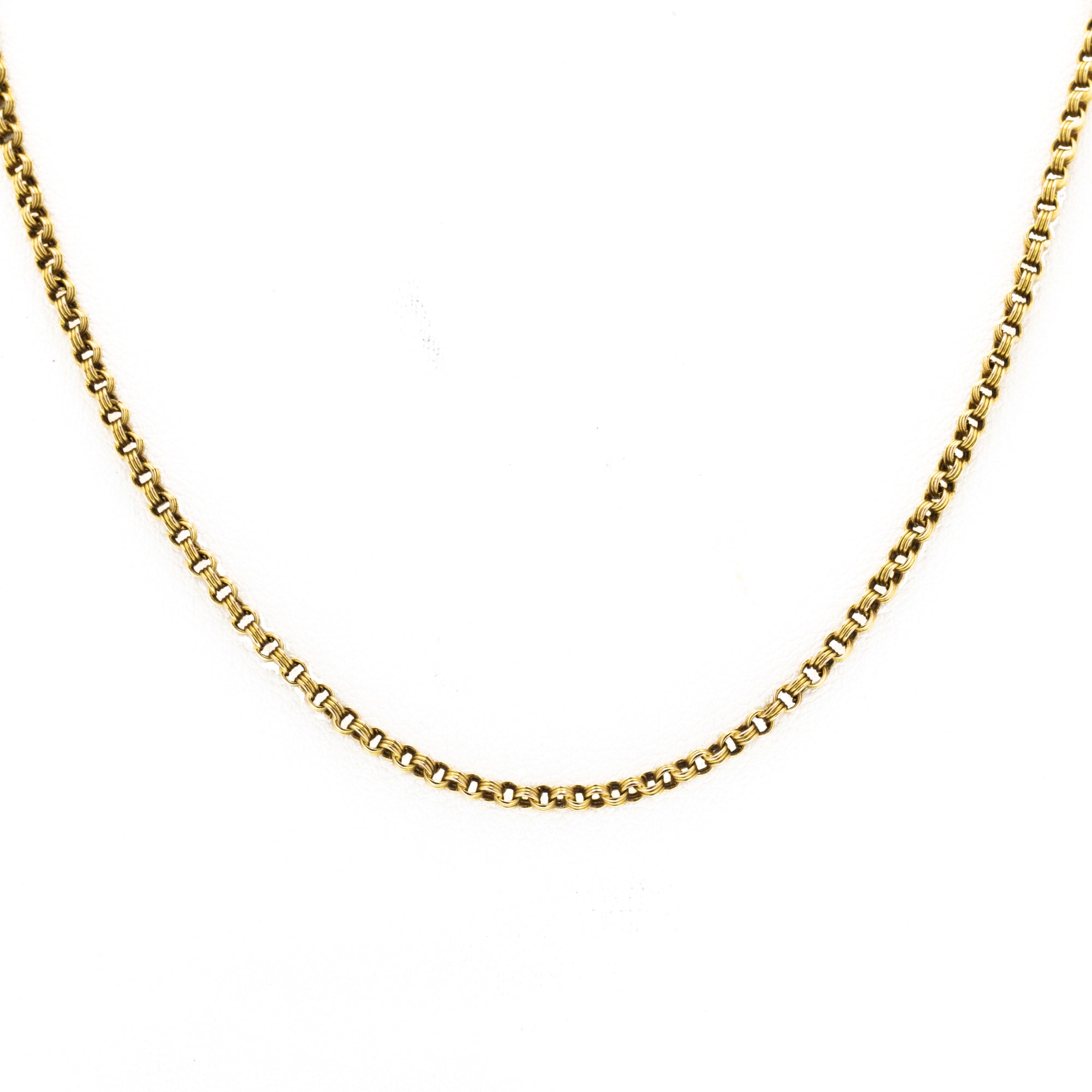 Add radiance to your repertoire with this 18" antique 15ct Gold belcher link chain! Her 18 inch length is formed of dainty grooved belcher links crafted from 15ct Gold boasting sunny hues.