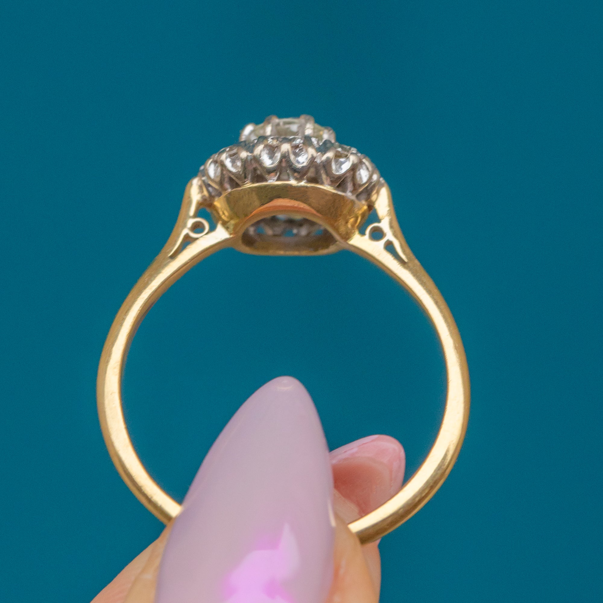 Crafted in rich 18ct Gold with classic proportions and timeless elegance, this piece has all the brilliance and sophistication of the mid-20th century. Whether worn as a statement piece or a vintage engagement ring, it exudes enduring glamour and refined style.