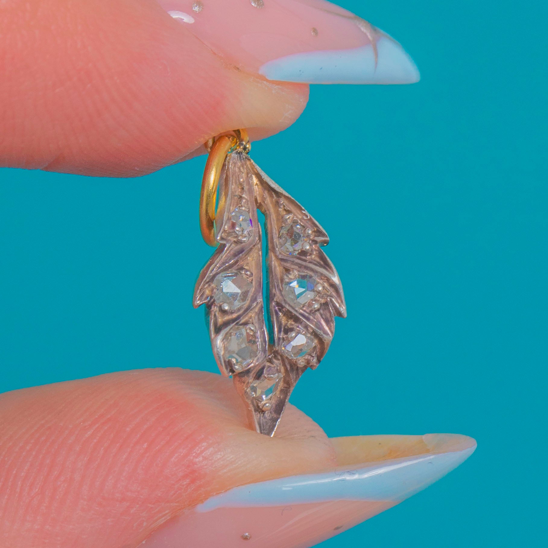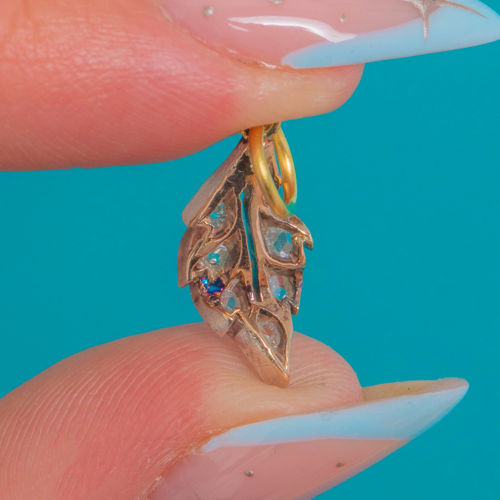 18ct Gold Antique Diamond Leaf Charm