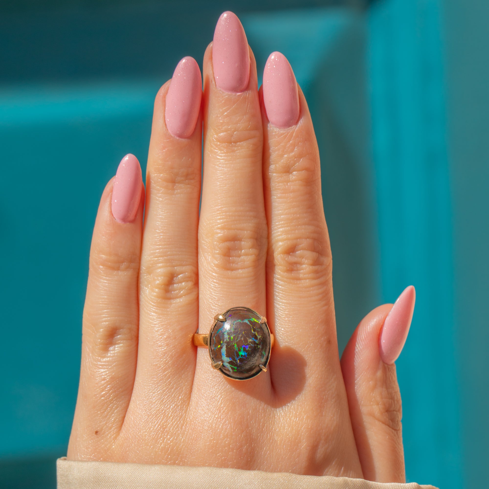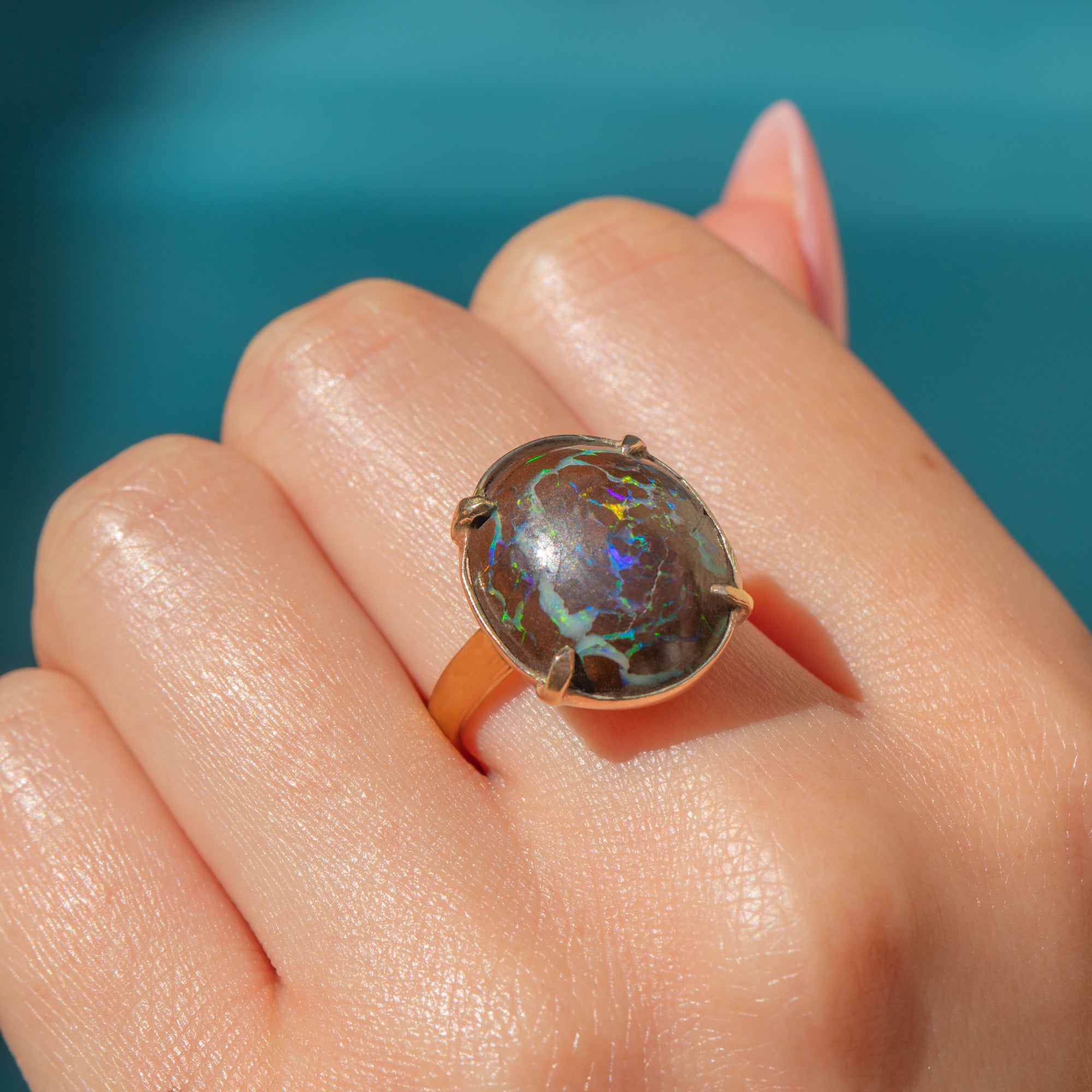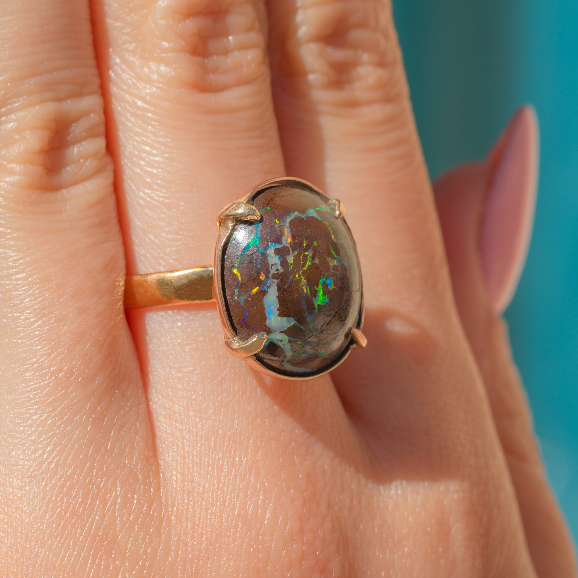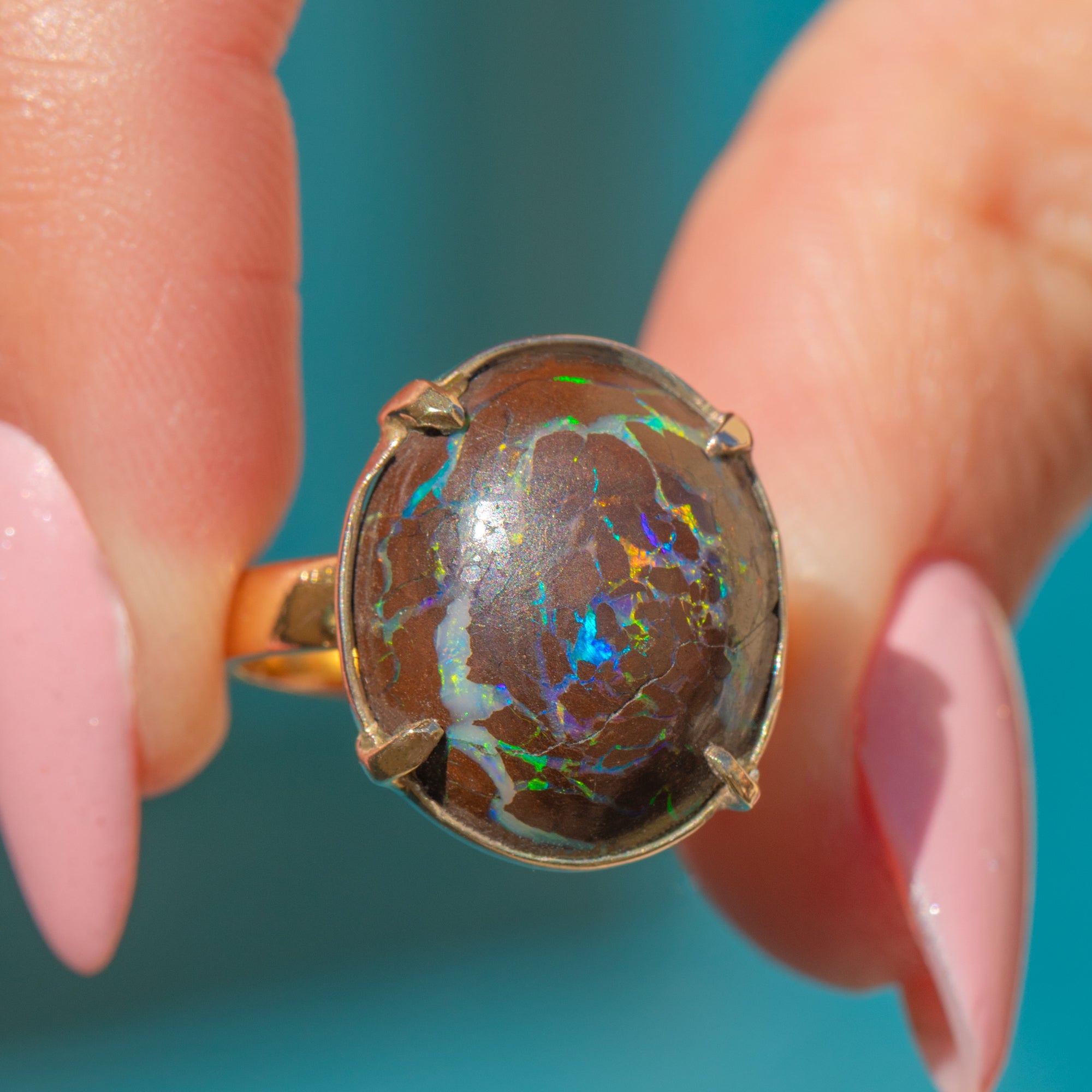 The Boulder Opal provides the finger with ample coverage and you will discover a new pattern or colour within this impressive treasure every time you look at it!
