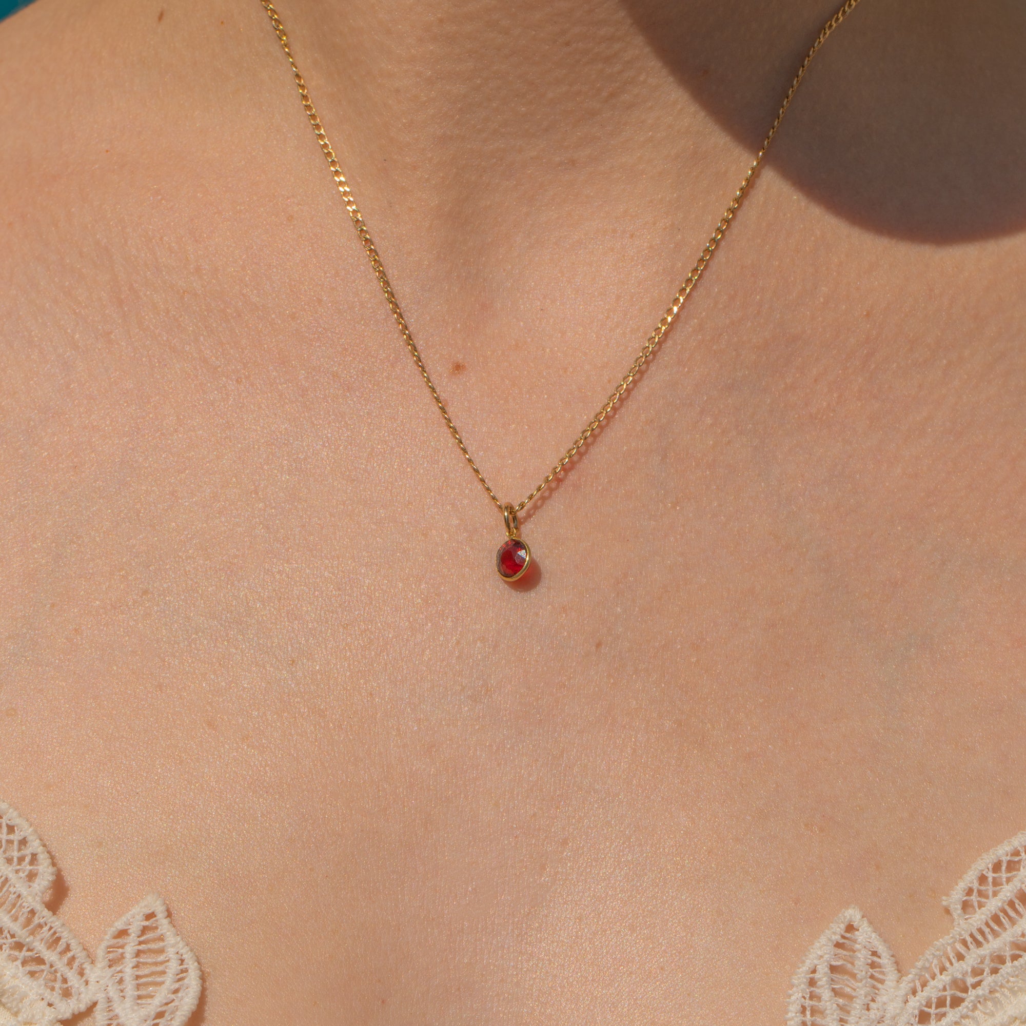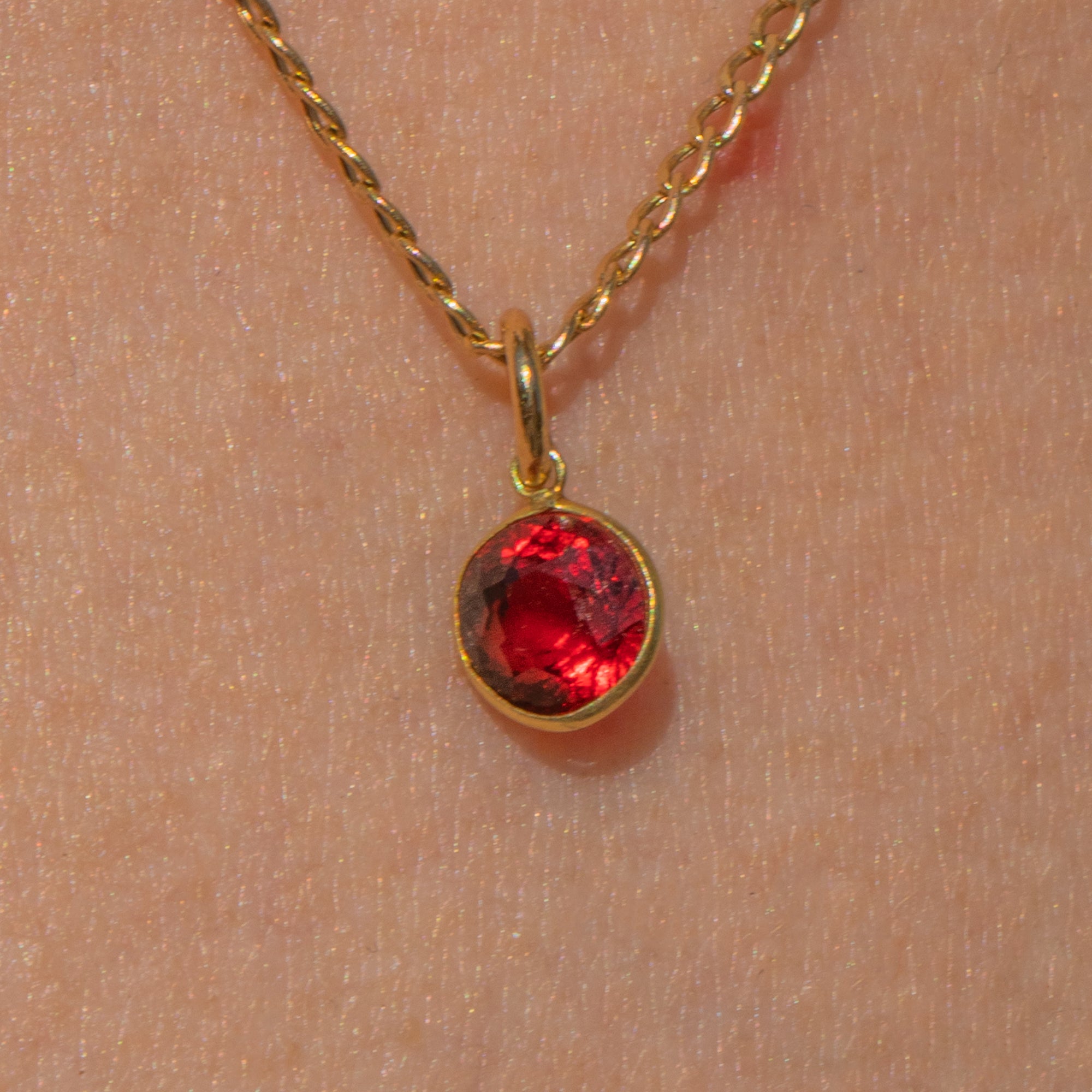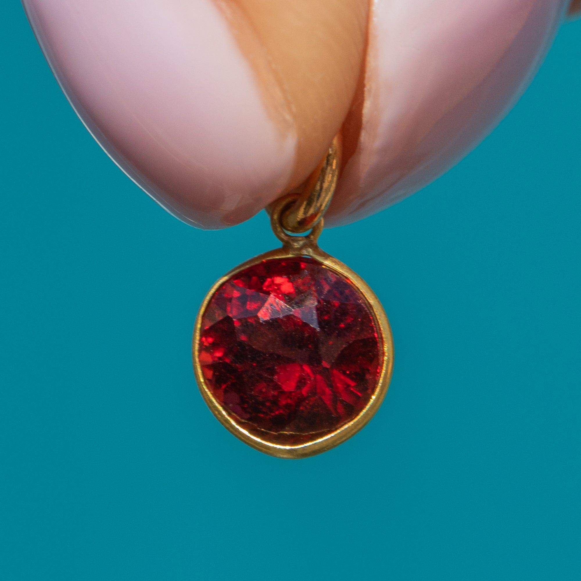 Flaunting a pool of plum hues dancing between her hand-cut facets, this 18ct Gold Garnet bezel-set charm will instantly add a pop of colour to any attire!