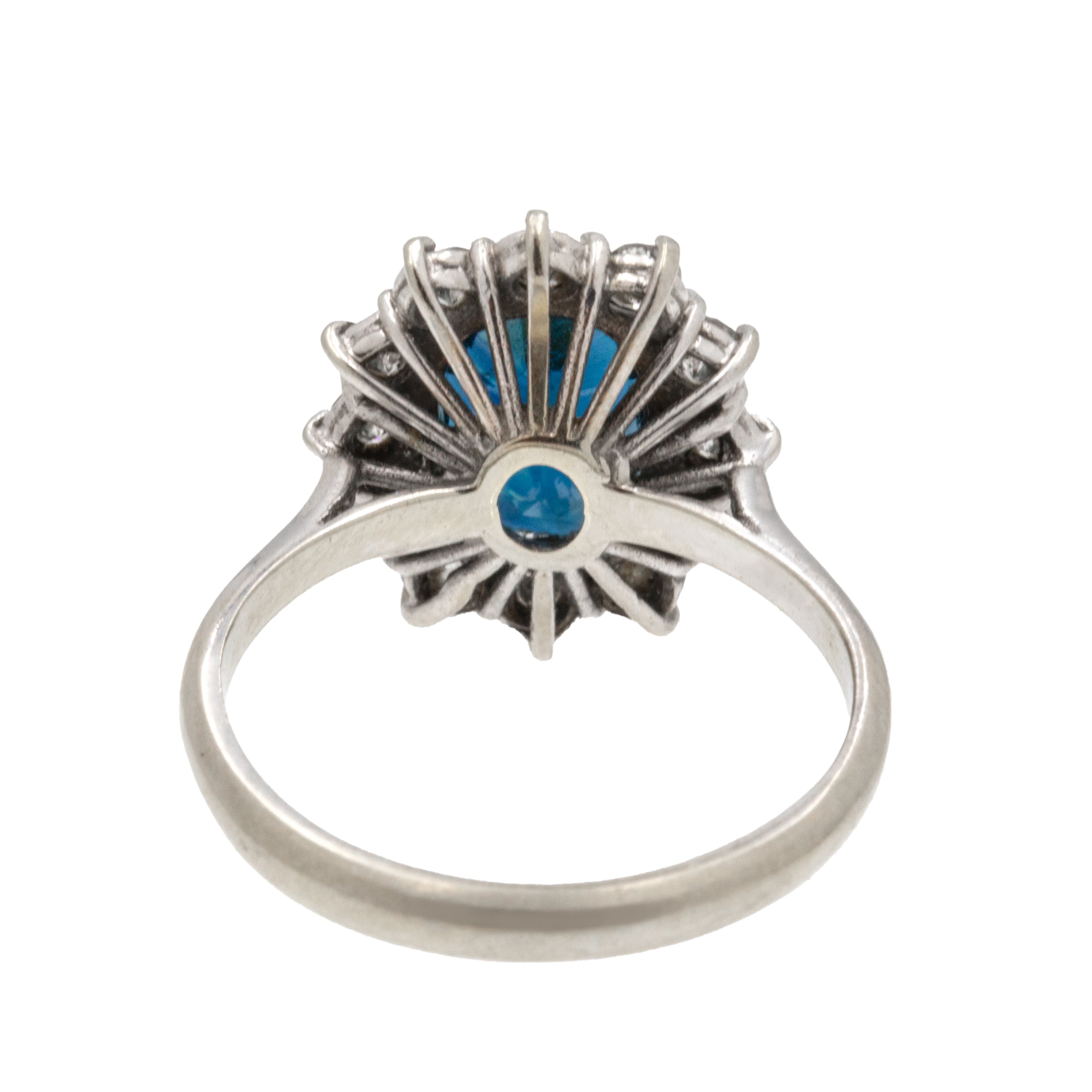 MATERIALS: Tests as 18ct White Gold throughout, Natural Sapphire (1.40ct), Diamonds (0.36ct).