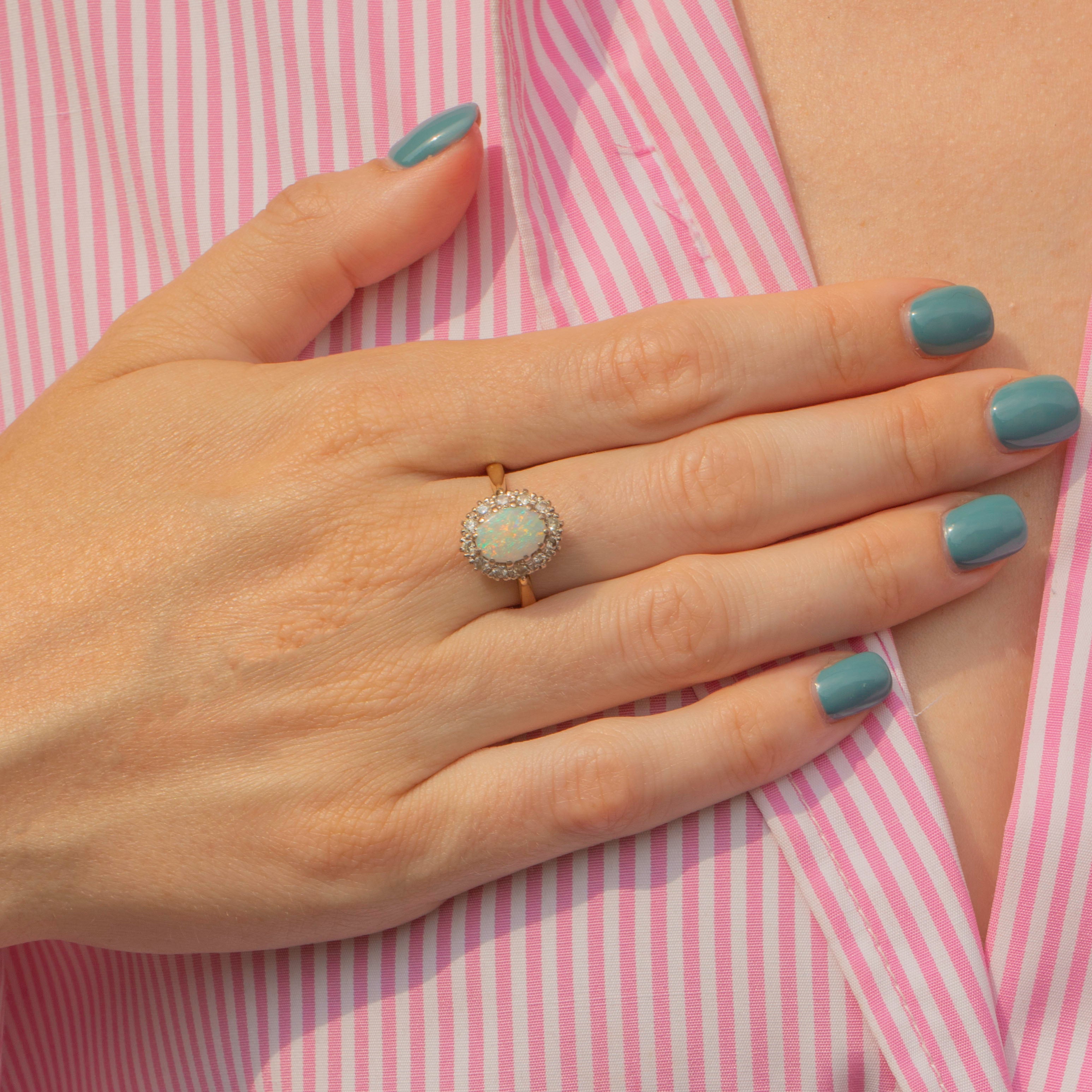 18ct Gold Opal Diamond Cluster Ring, 0.46ct Opal