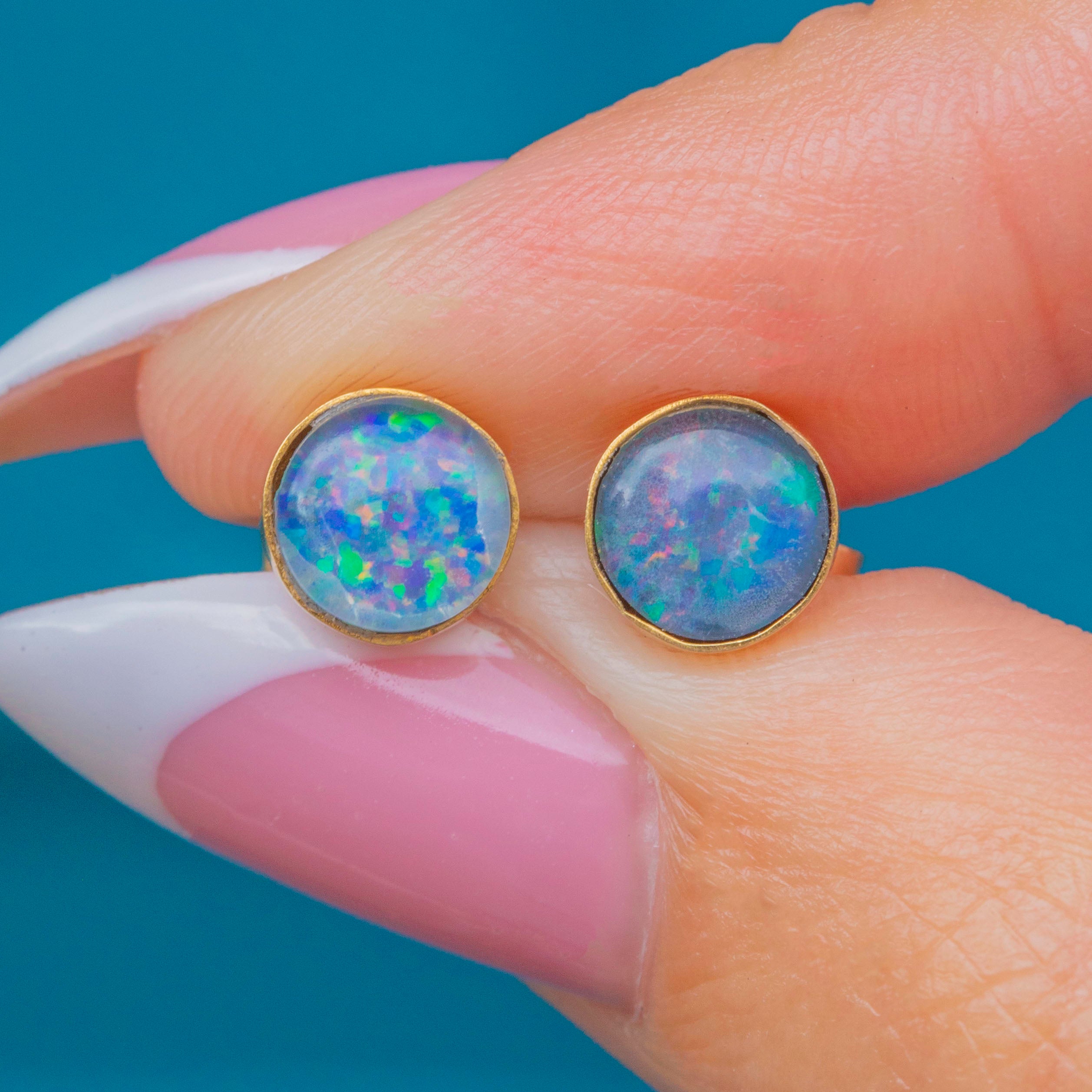 These versatile 18ct Gold Opal Triplet earrings are soon to be your newest go-to! Flaunting a stunning iridescence, they will add an instant pop of colour to your lobes.