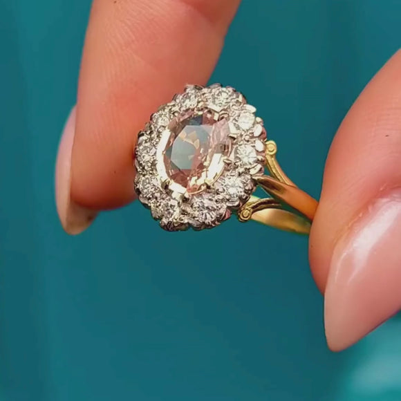 18ct Gold Padparadscha Sapphire Diamond Cluster Ring, 2.10ct Sapphire, 0.30ct Diamonds