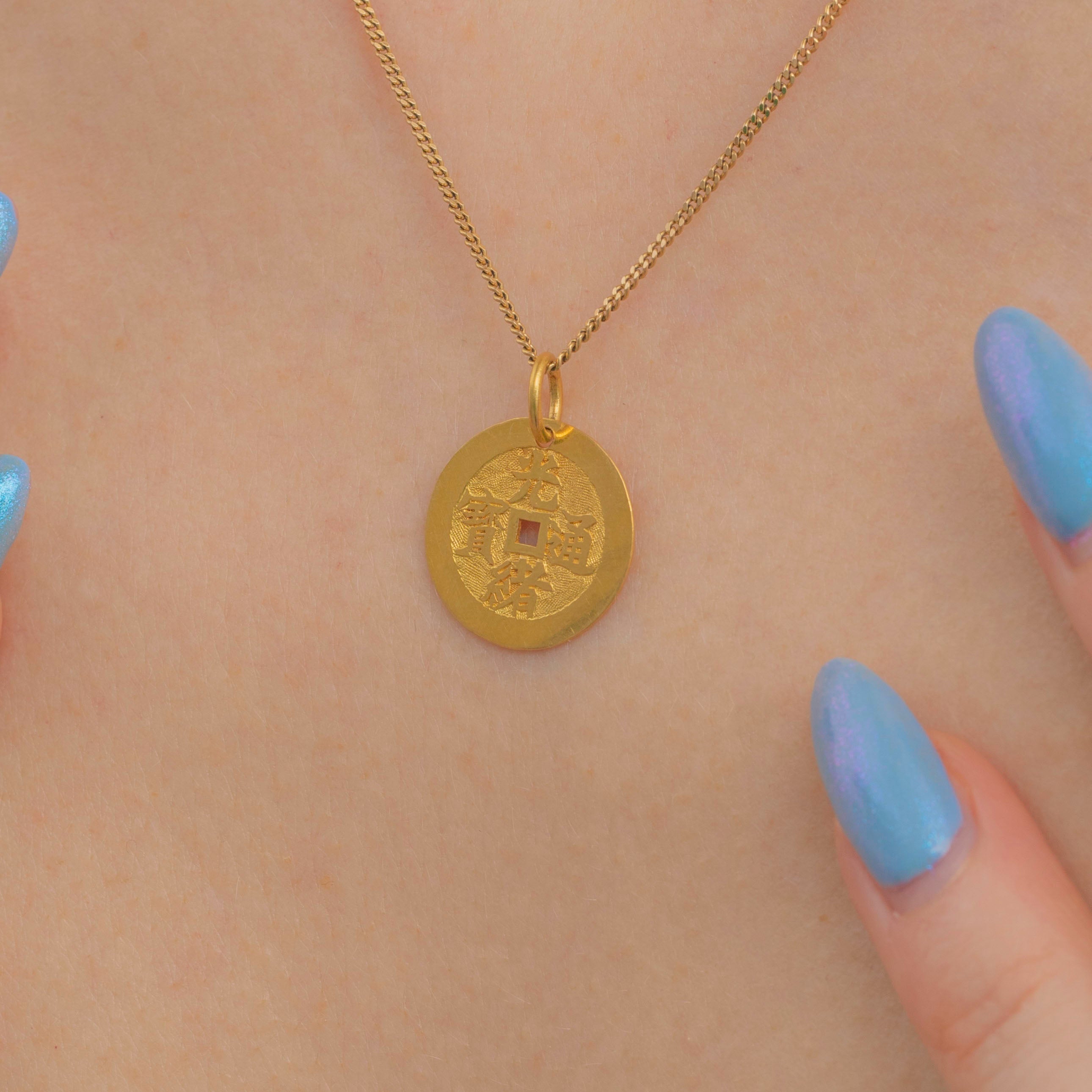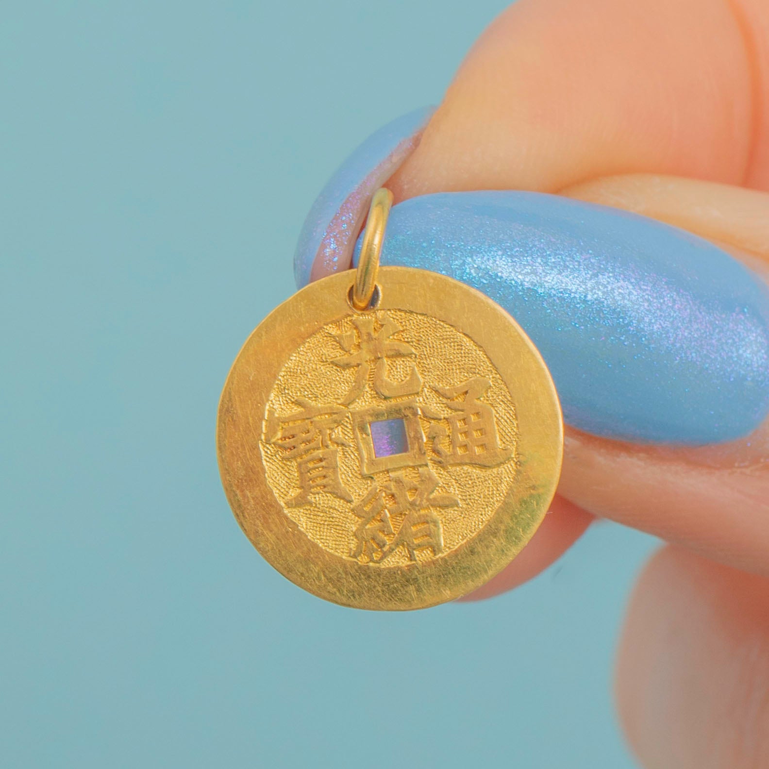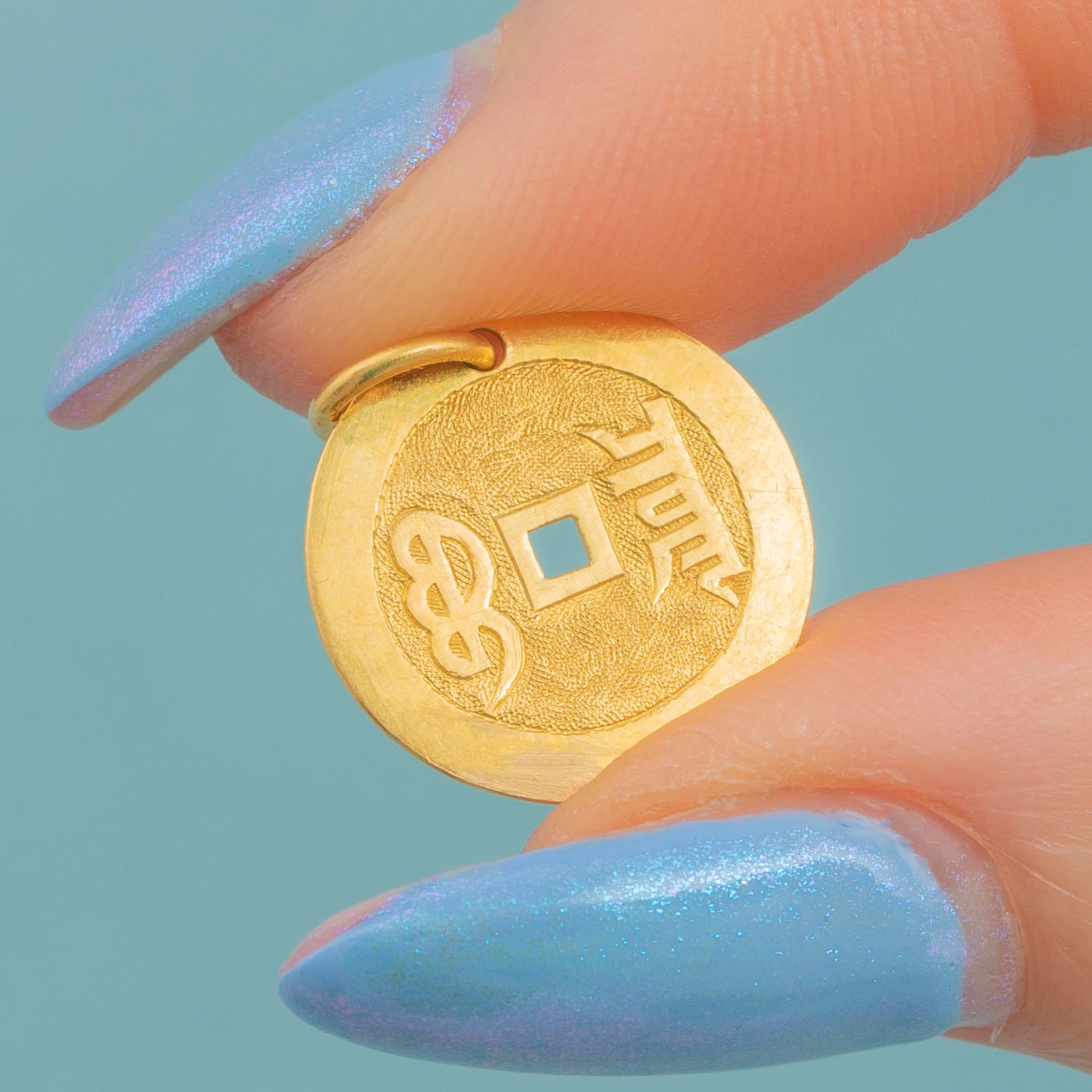We just love the way this 18ct Gold round Chinese coin charm glistened under sunlight!