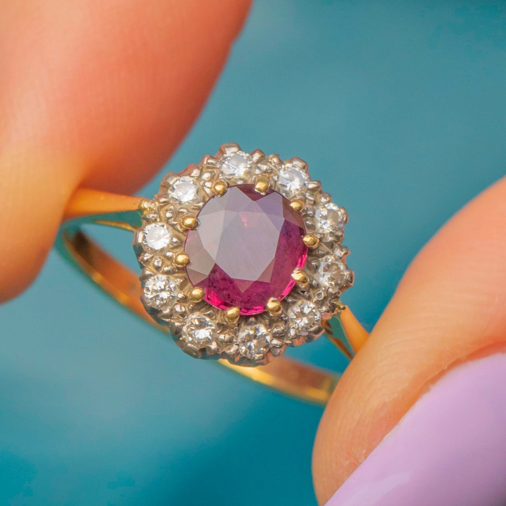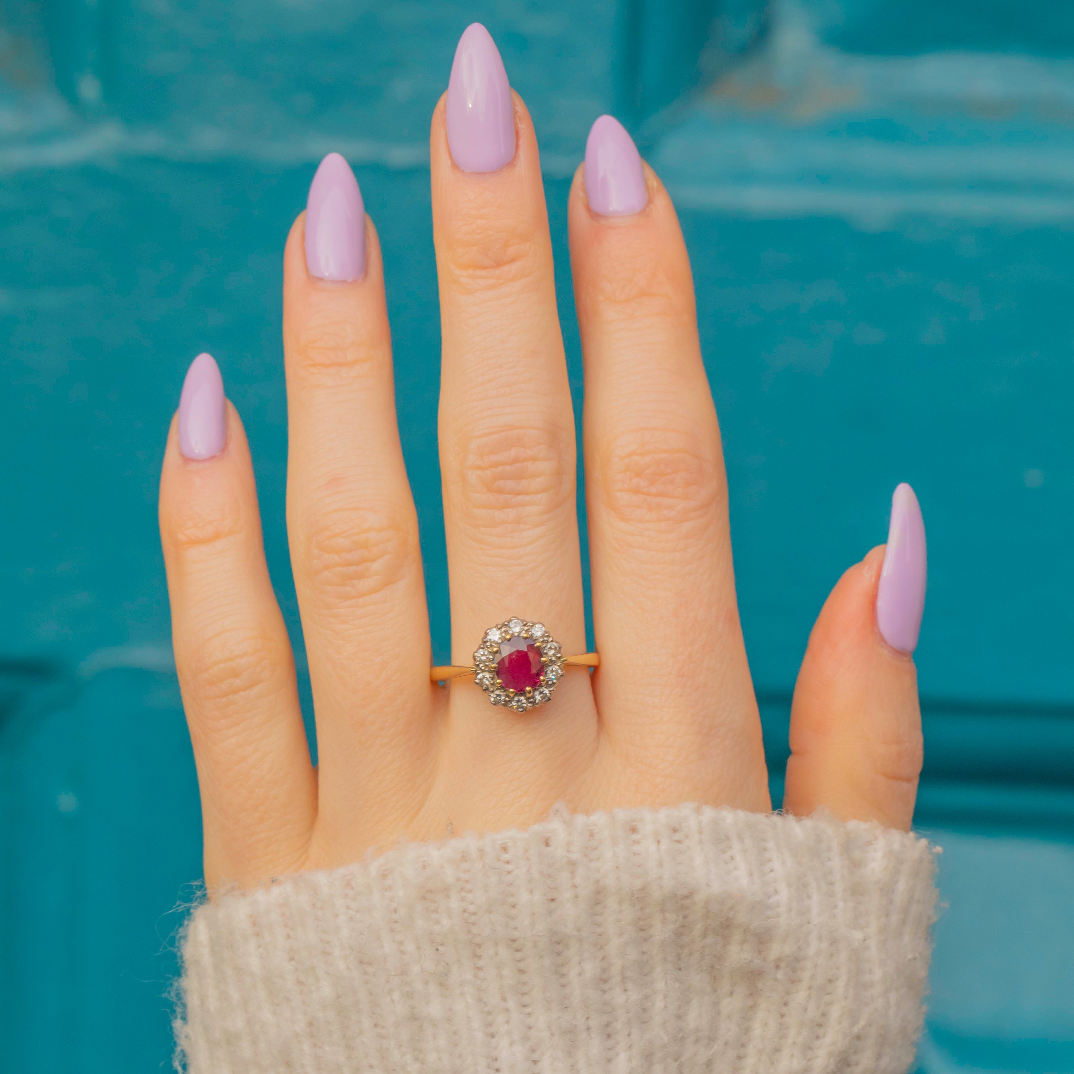 18ct Gold Ruby Diamond Cluster Ring, 0.70ct Ruby