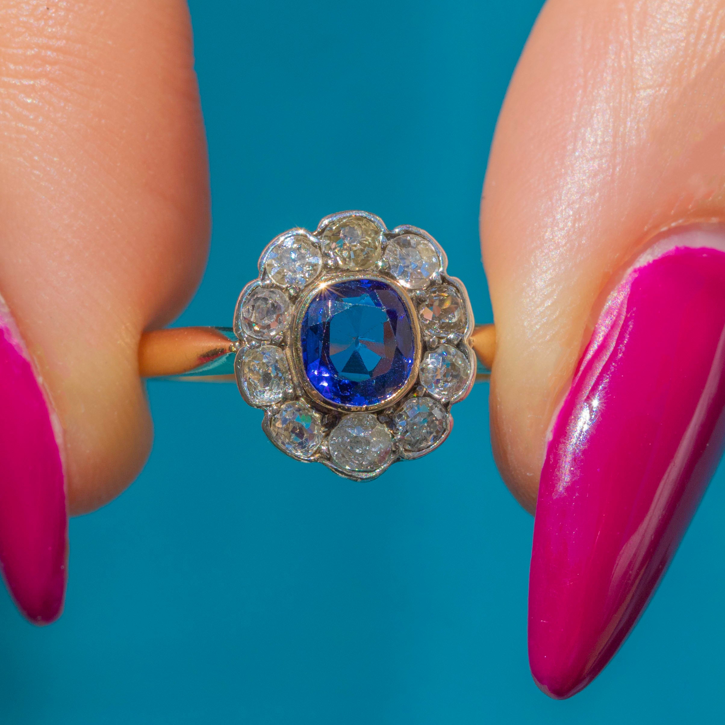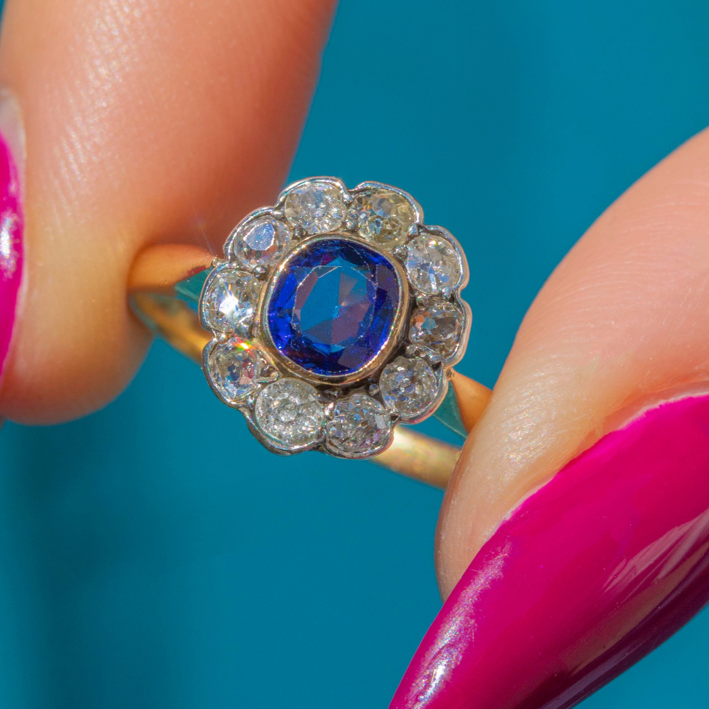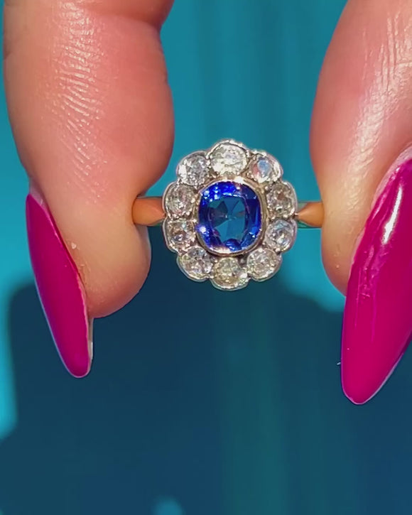This gorgeous antique Sapphire Diamond cluster ring will tantalise your Edwardian jewellery needs and desires!