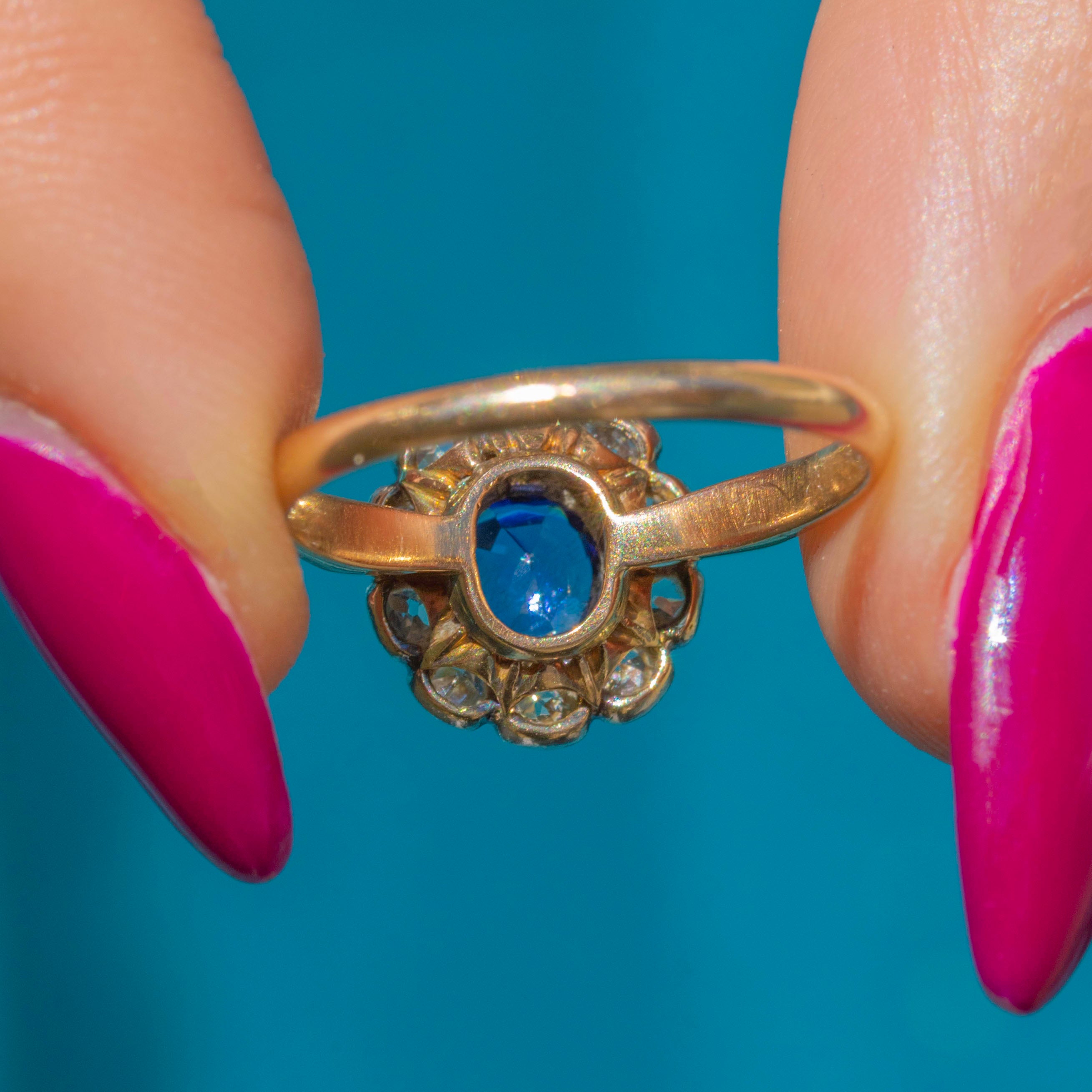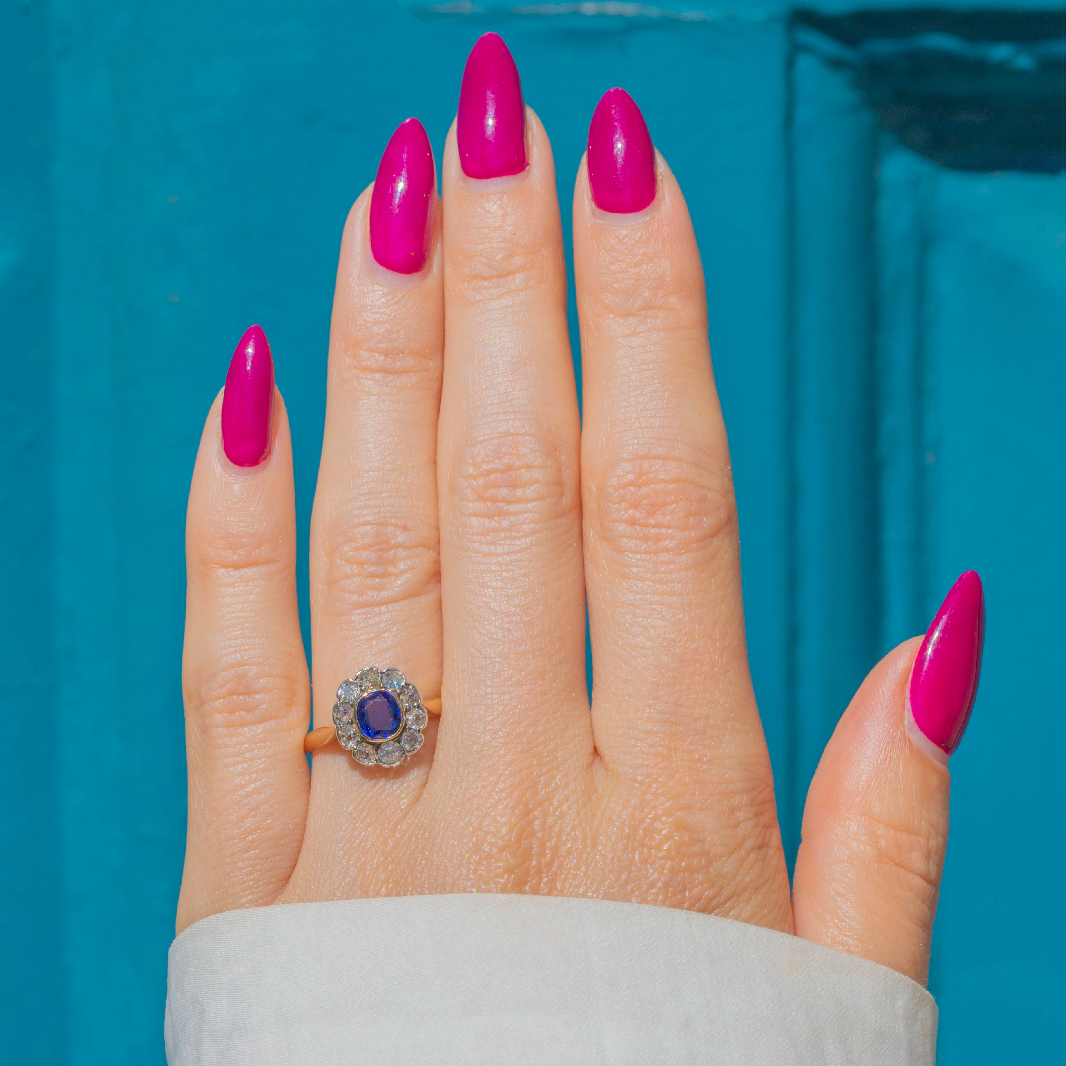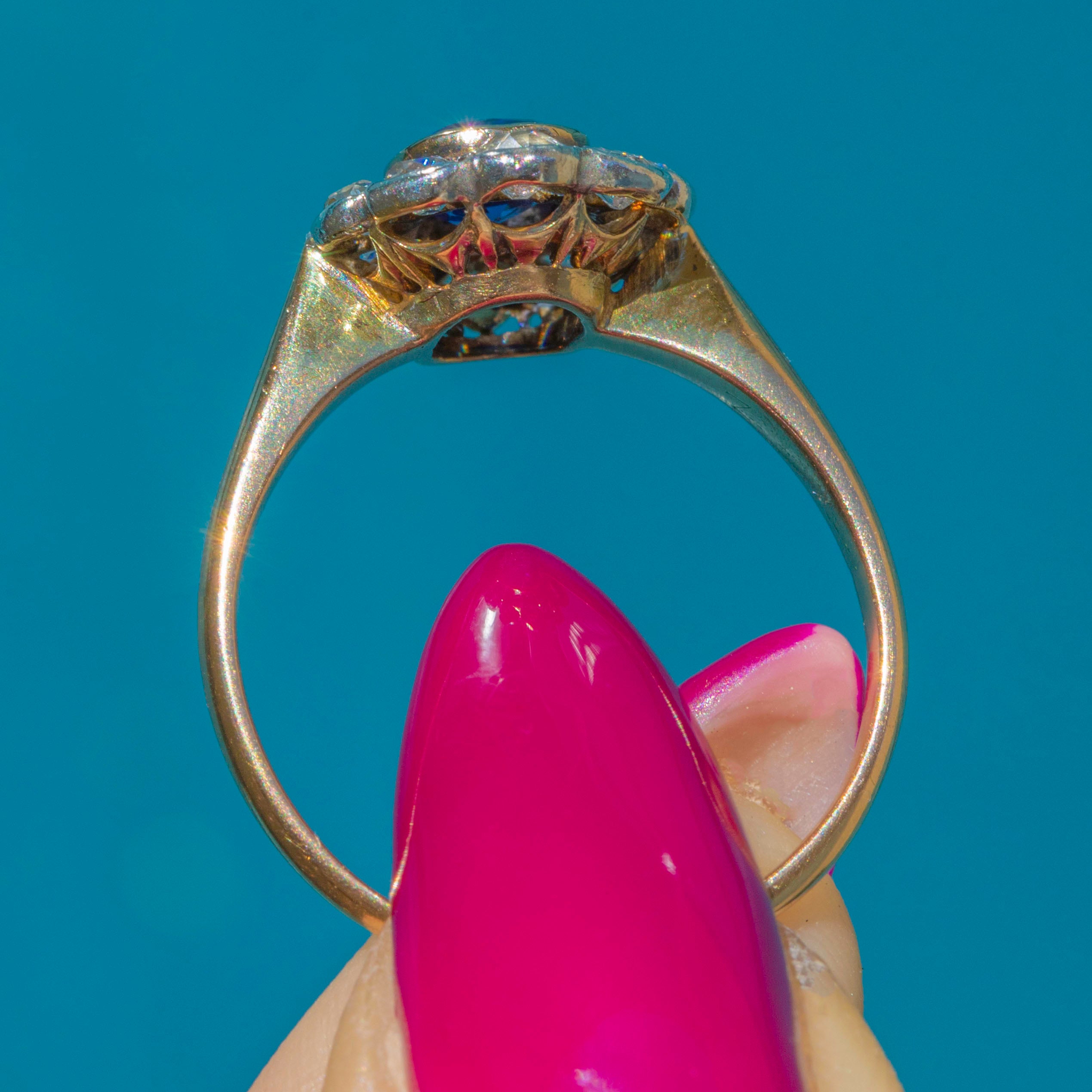 This gorgeous antique Sapphire Diamond cluster ring will tantalise your Edwardian jewellery needs and desires!