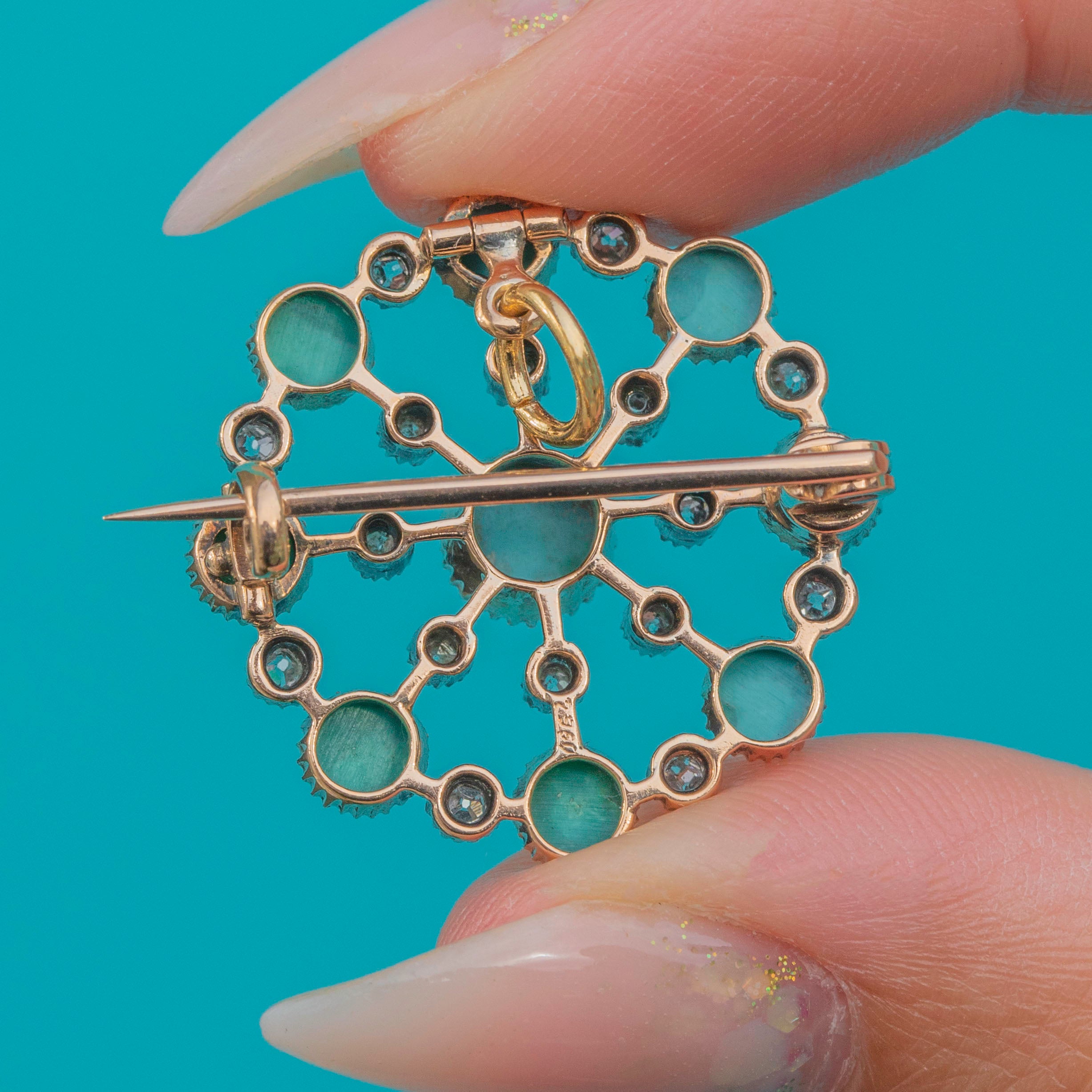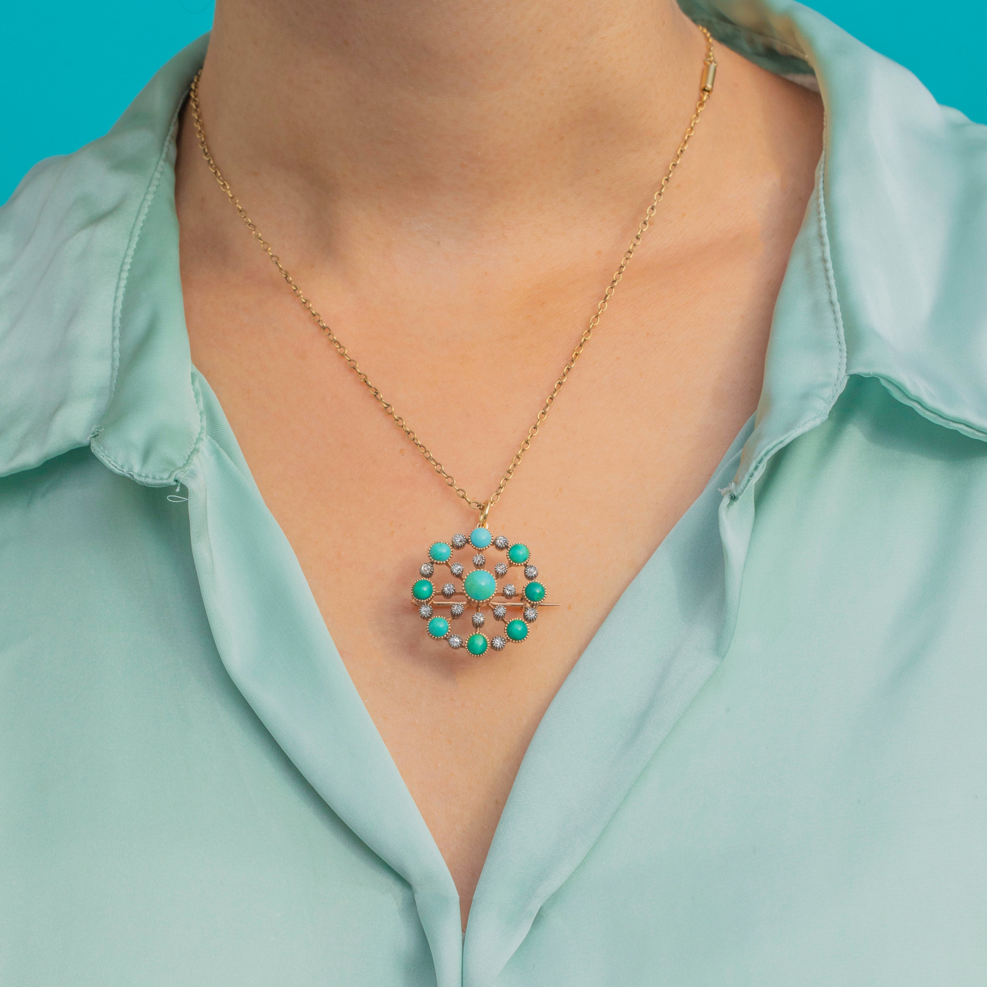 18ct Gold Turquoise & Diamond Convertible Pendant / Brooch