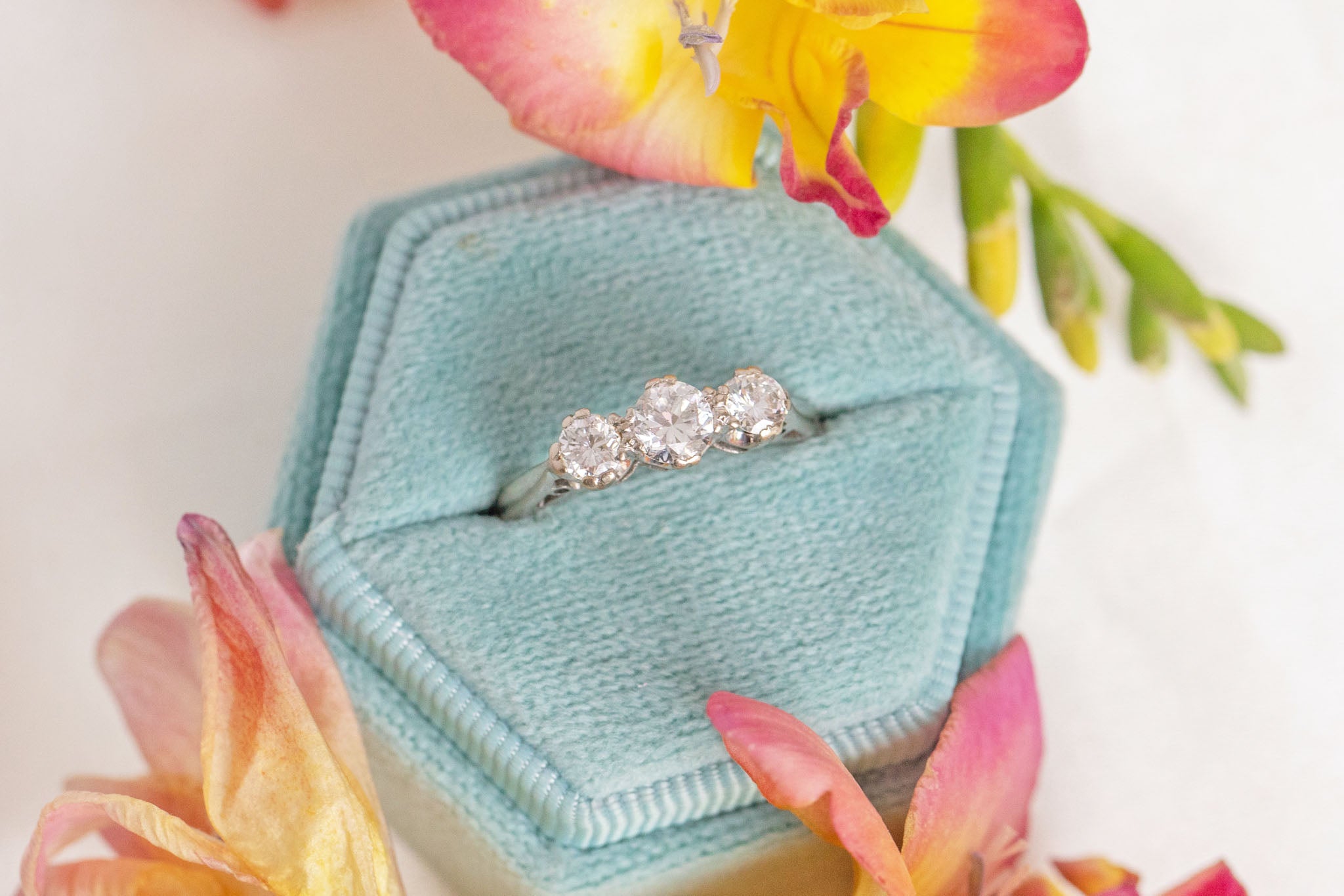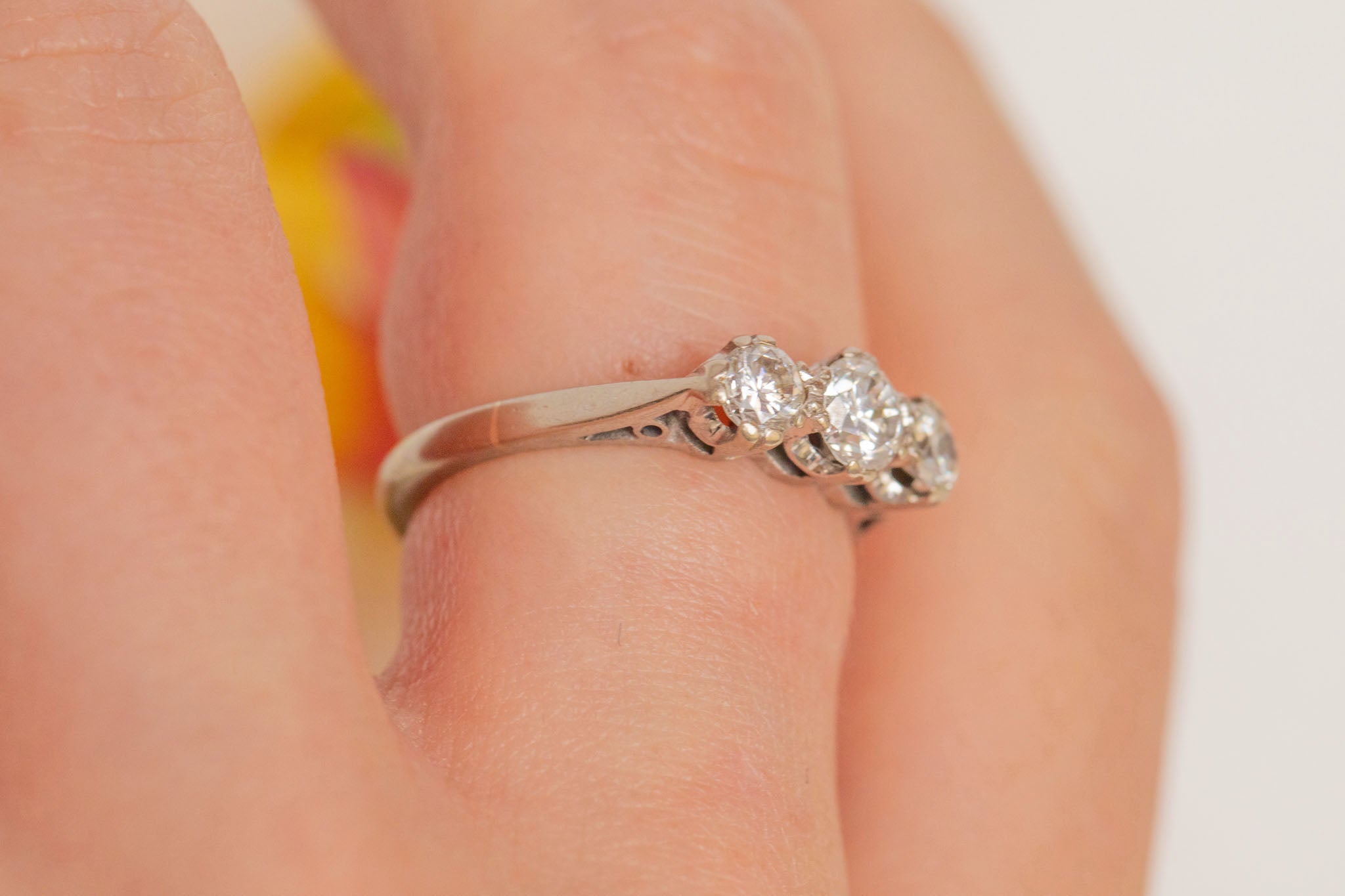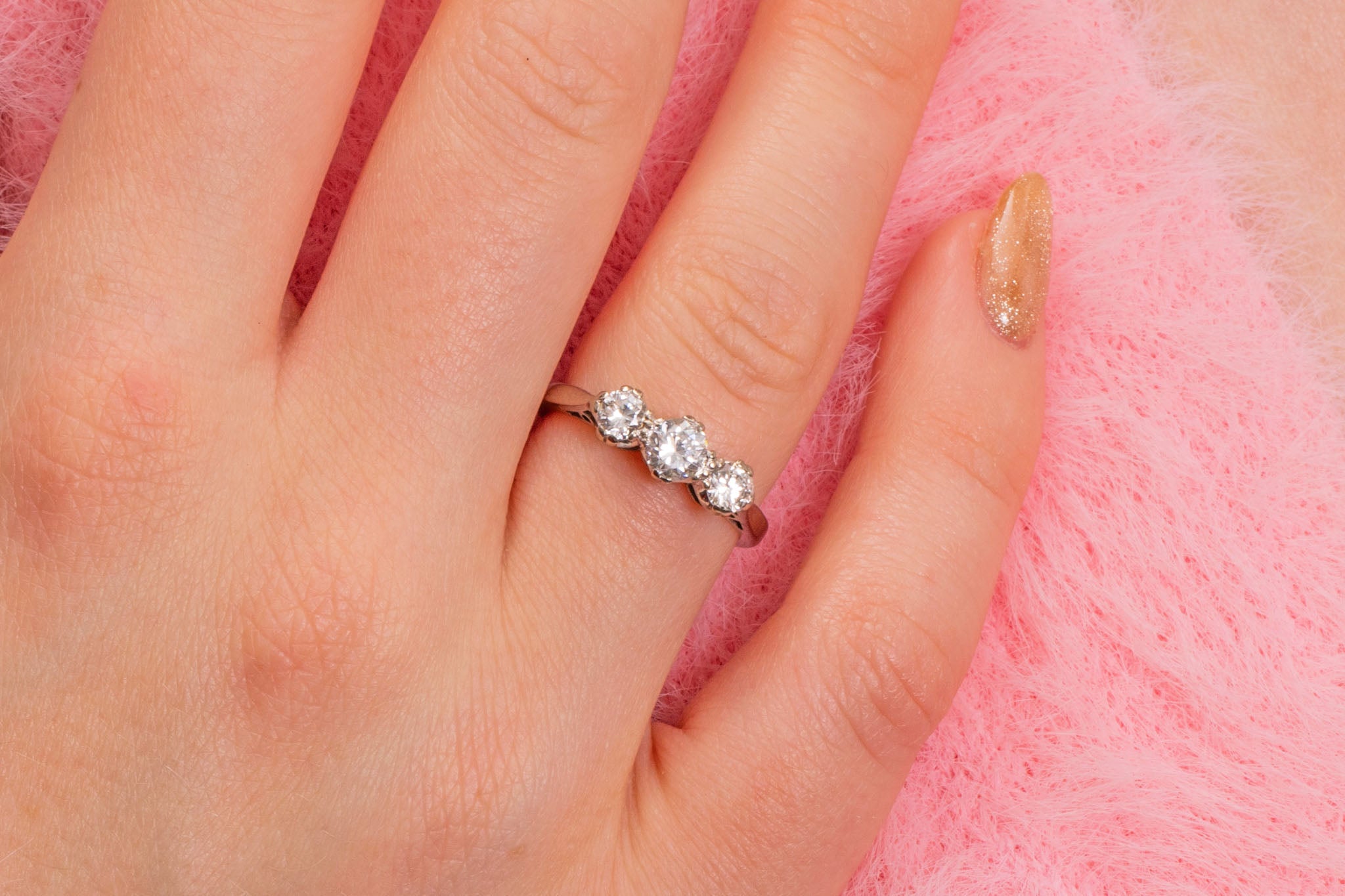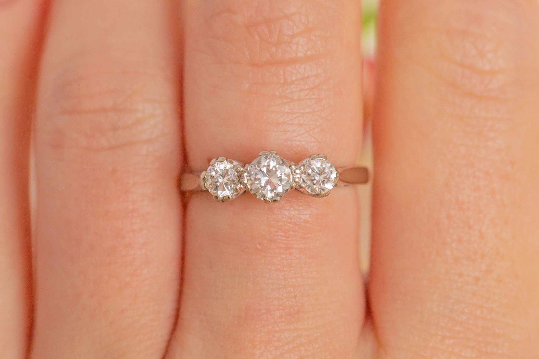 Each of the Diamonds has an impressive H/I colour and are held securely in their prong settings. If you are looking for an engagement ring which is timeless and classic, then this vintage Diamond trilogy ring might be the one!