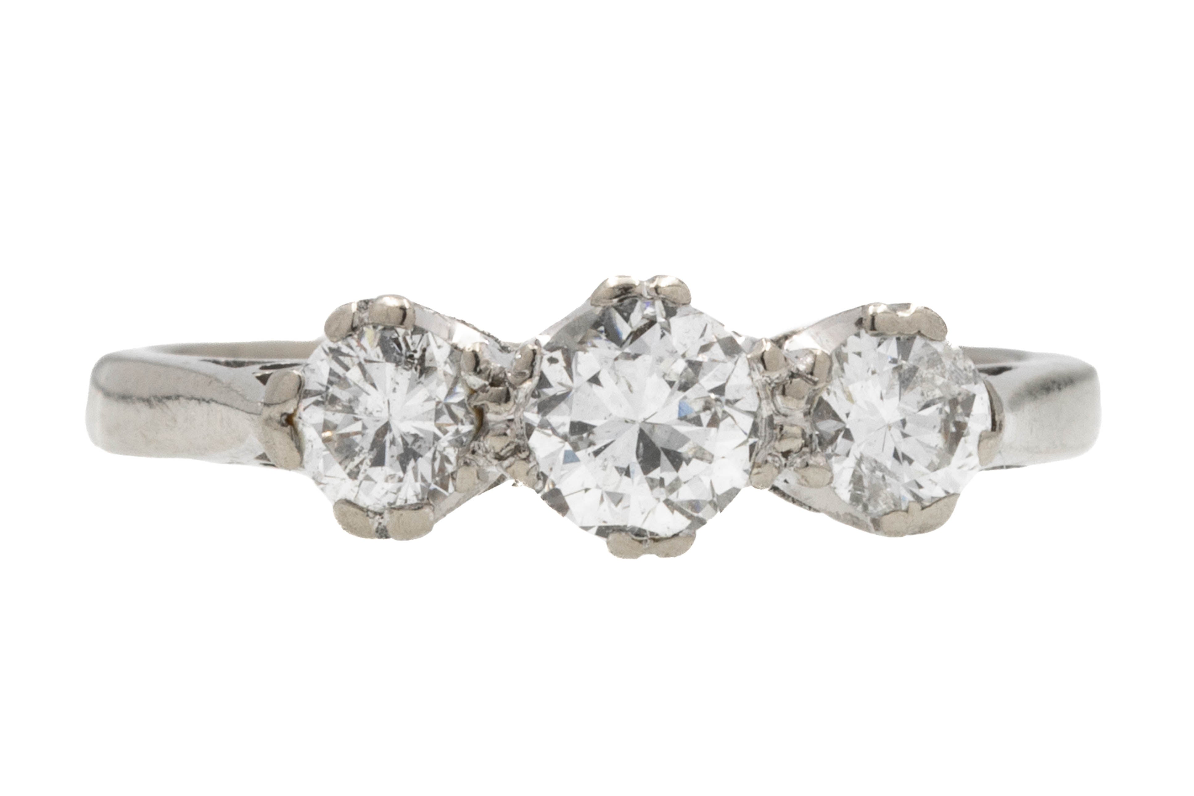 18ct White Gold Diamond Trilogy Engagement Ring, 0.90ct