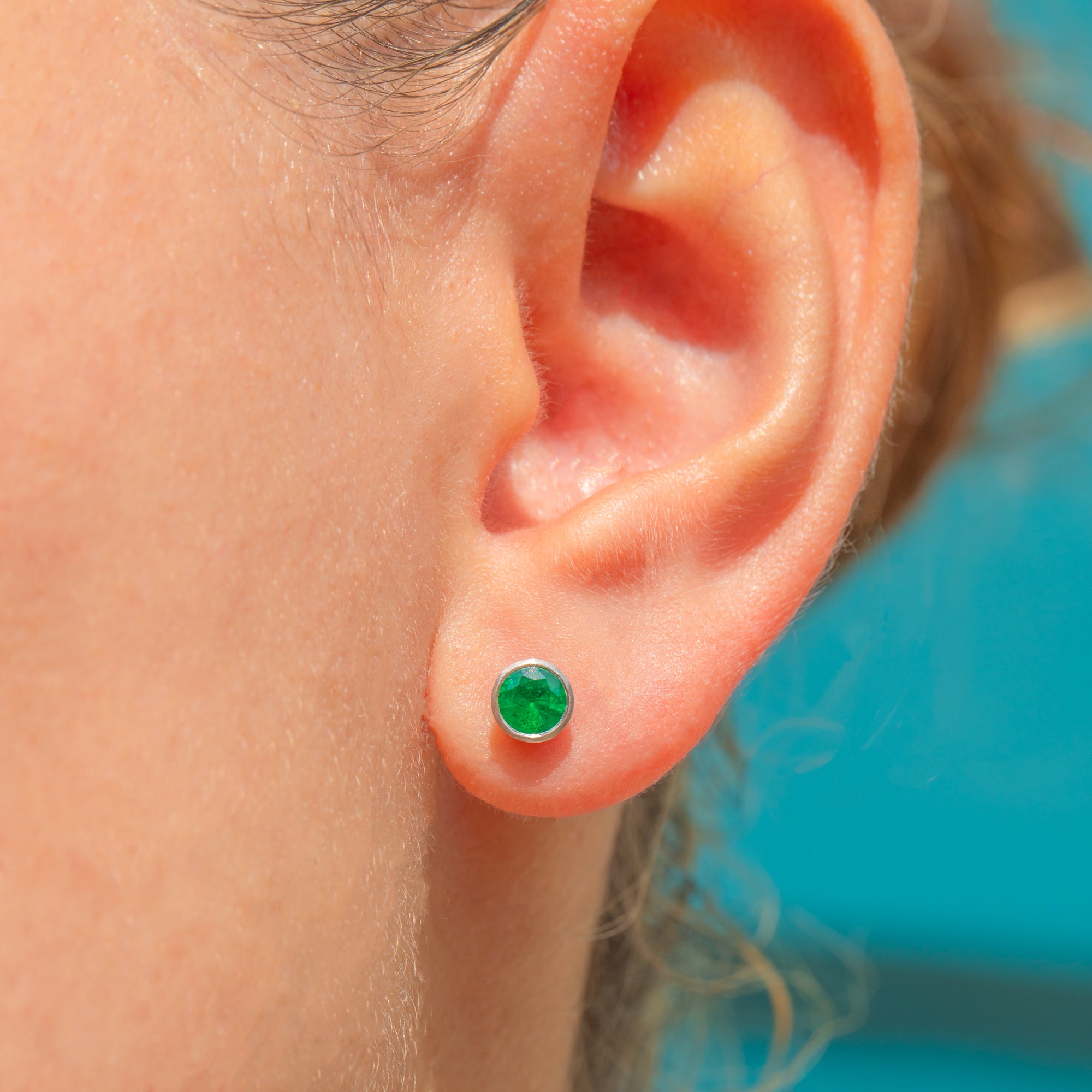 These elegant mid-century vintage stud earrings feature vivid, bright Emeralds set in glossy 18ct White Gold bezels. Each Emerald is beautifully cut and boast a combined weight of 0.70ct.