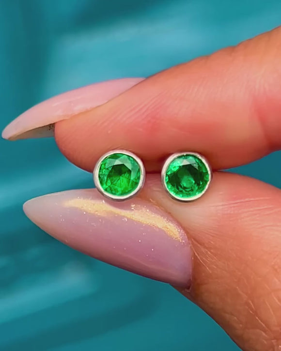 MEASUREMENTS: Emeralds measure 4.5mm each, weighing 0.70ct combined.