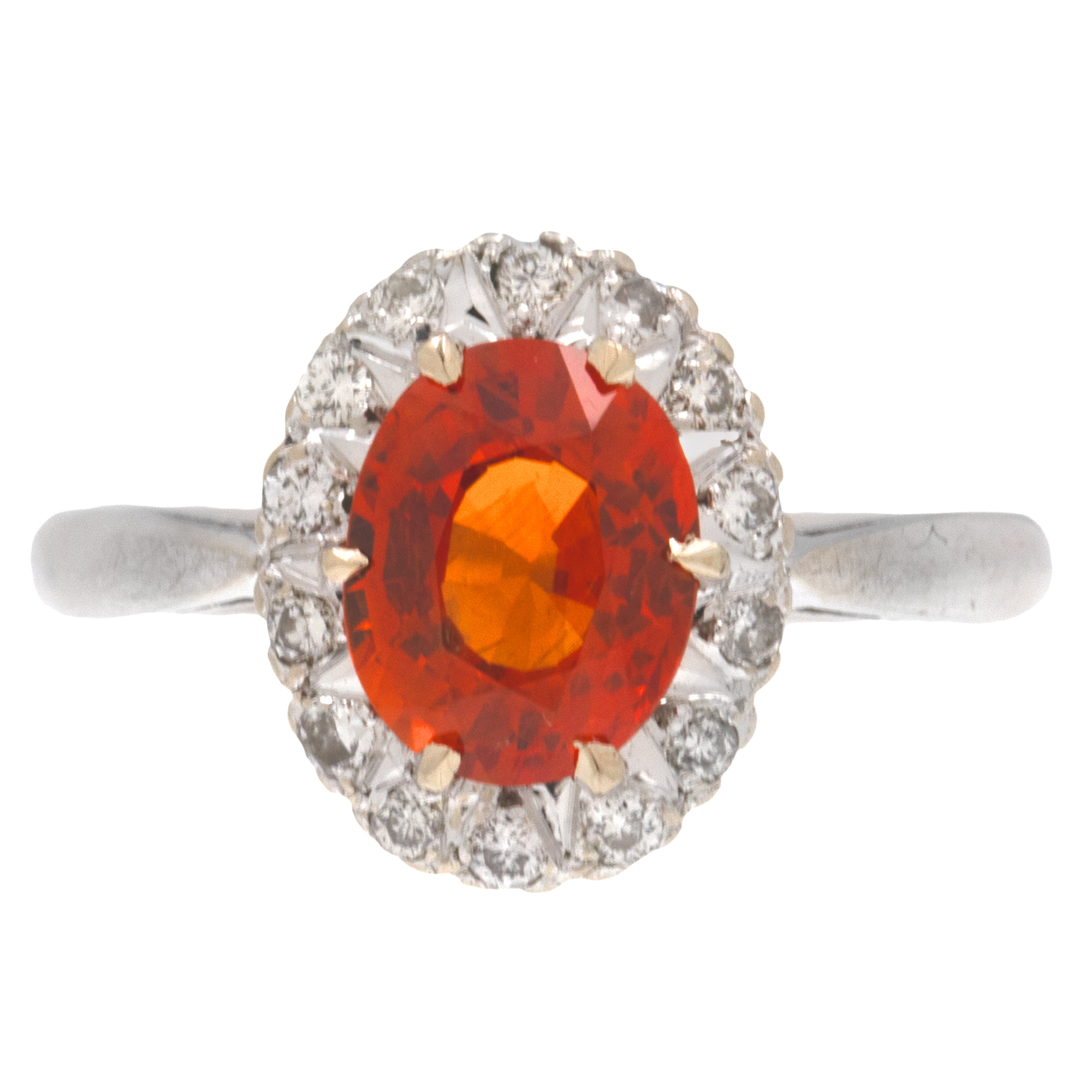 MATERIALS: 18ct White Gold, Fire Opal (0.94ct), Diamond (0.13ct).