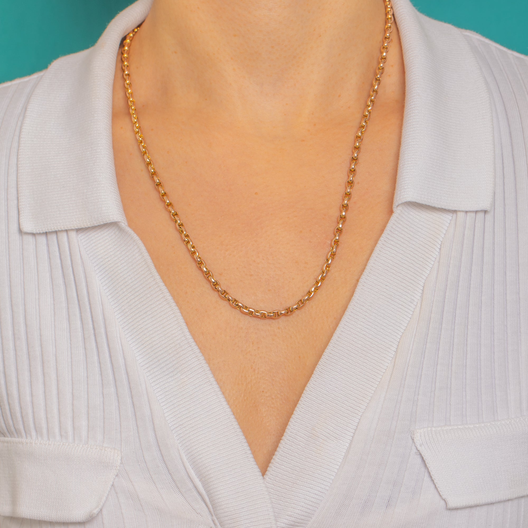 VERY GOOD: The links are bright and well-preserved with light surface wear commensurate with age, and the soldered joins appear secure. The later added bolt ring clasp works well; no kinks, dents or distortions observed.