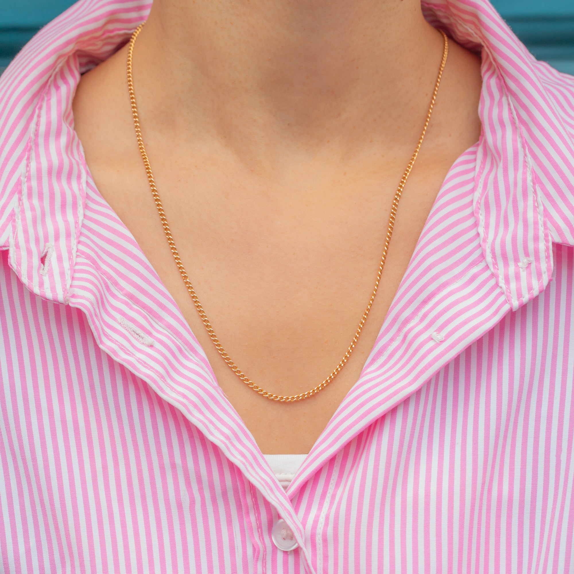 This fine Victorian curb chain is crafted in rich 15ct Gold, glowing with that unmistakable rosy antique hue. The chain is elegant yet substantial, with solid, smoothly polished links that drape beautifully around the neck.