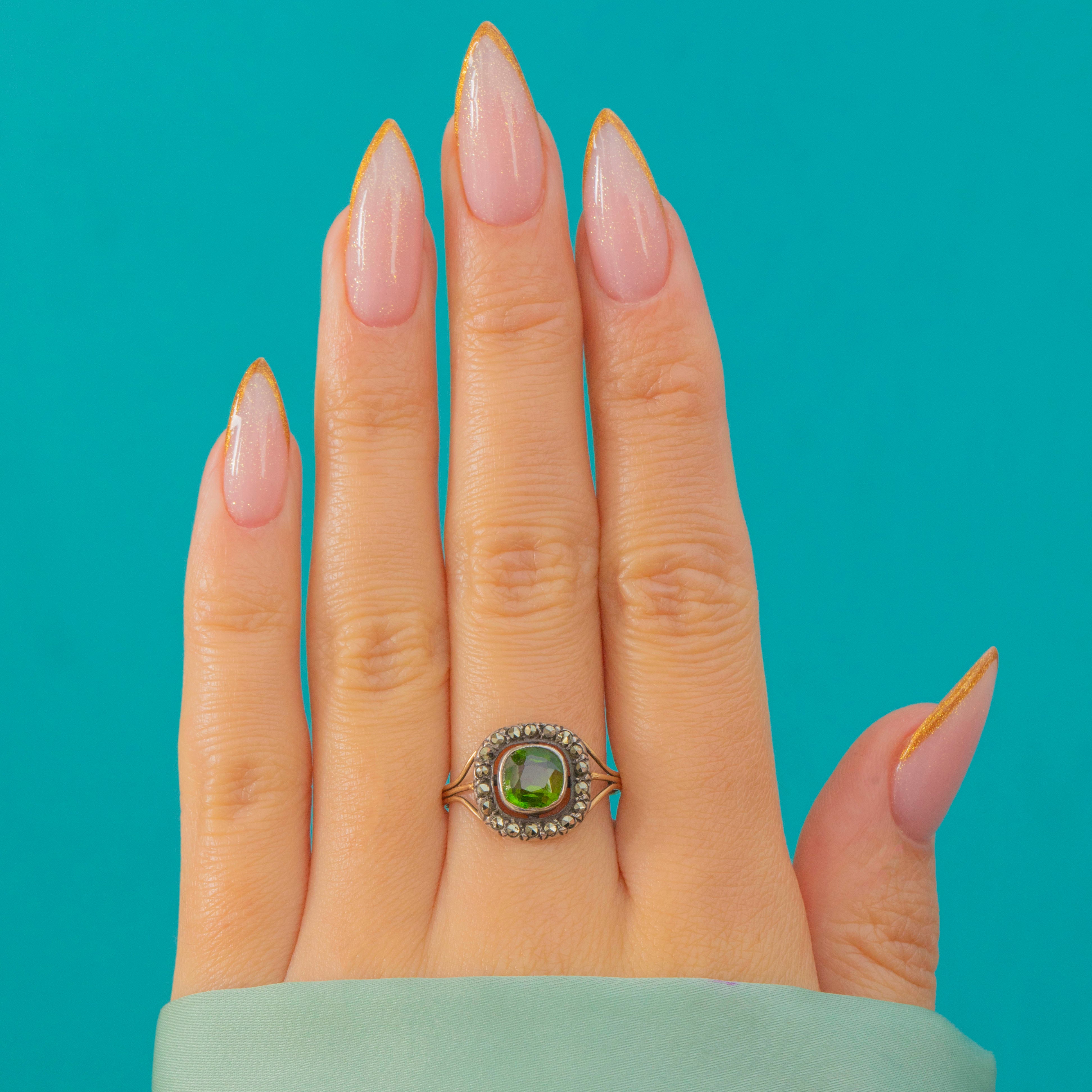 19th Century Georgian French 18ct Gold Green Paste Cluster Ring