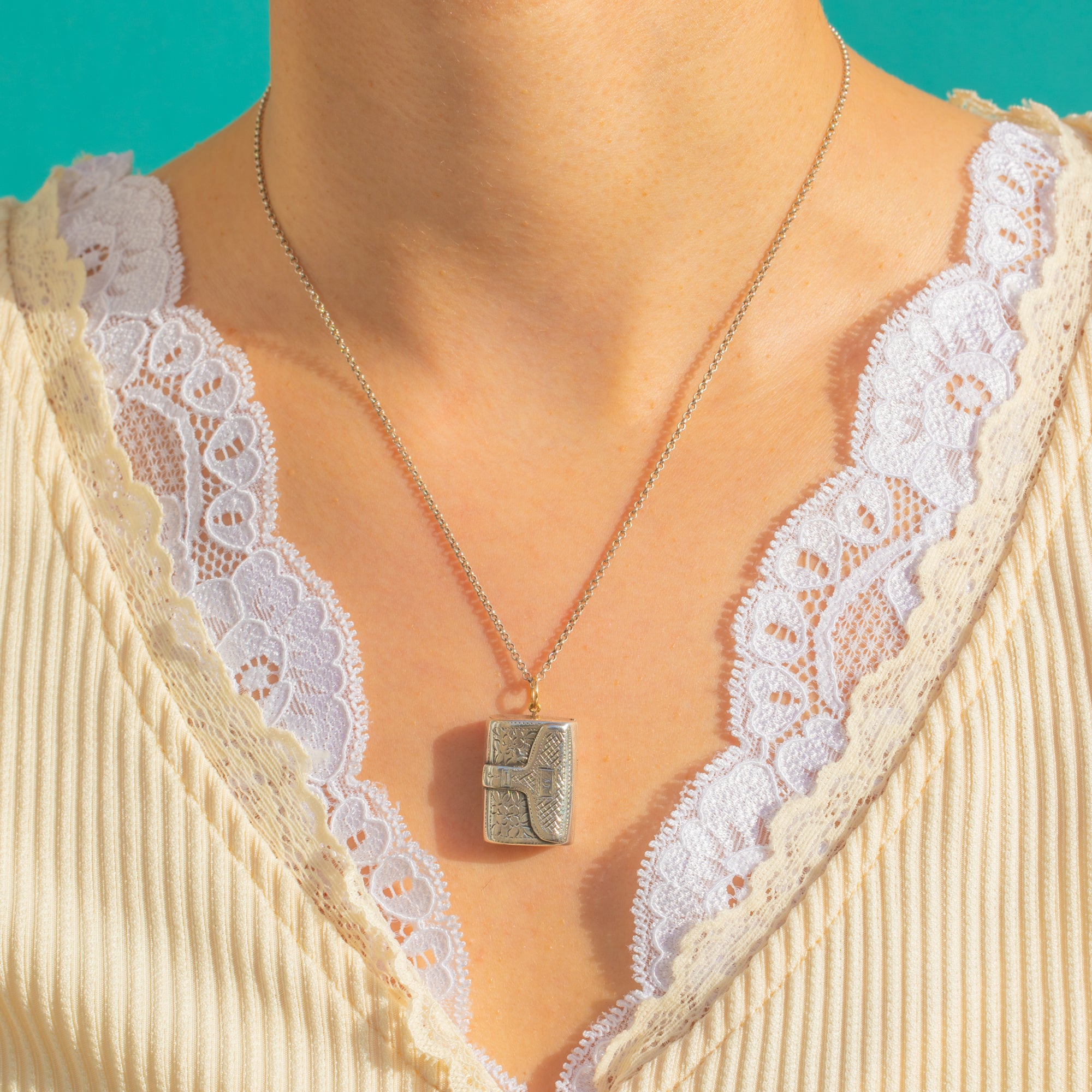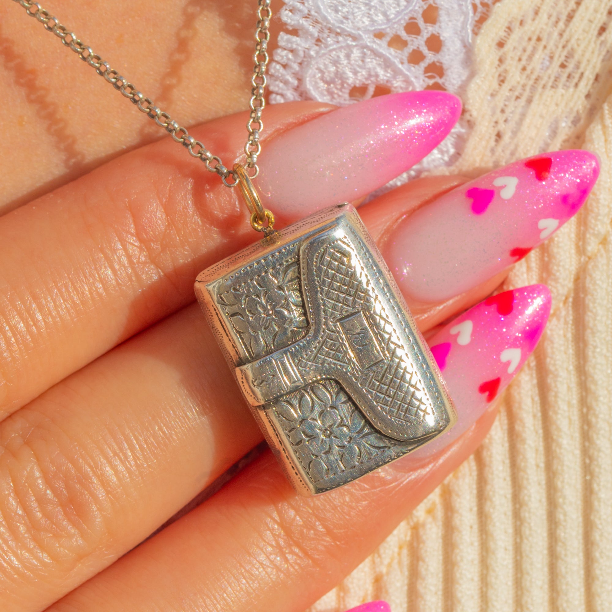 Open the hinged lid to reveal a glowing 9ct Gold-gilded interior with a finely pierced grille. Fully hallmarked for Birmingham, 1833 with the Lion Passant, date letter “K”, and maker’s mark “TS” (possibly Thomas Streetin), it’s a petite masterpiece of early 19th-century craftsmanship—perfect as an elegant keepsake pendant or to adorn a favourite chain.