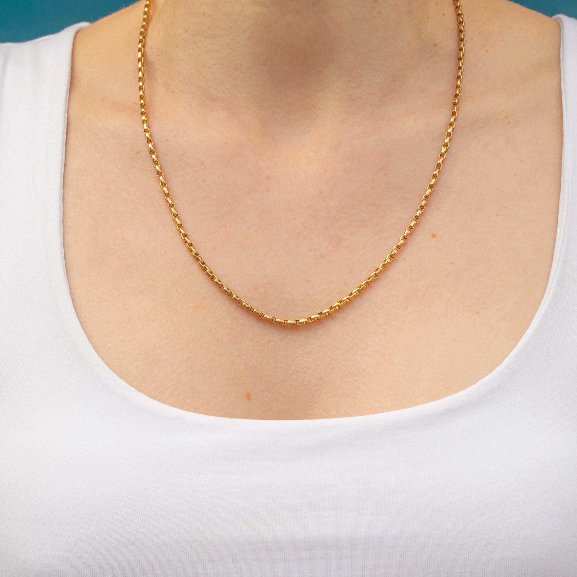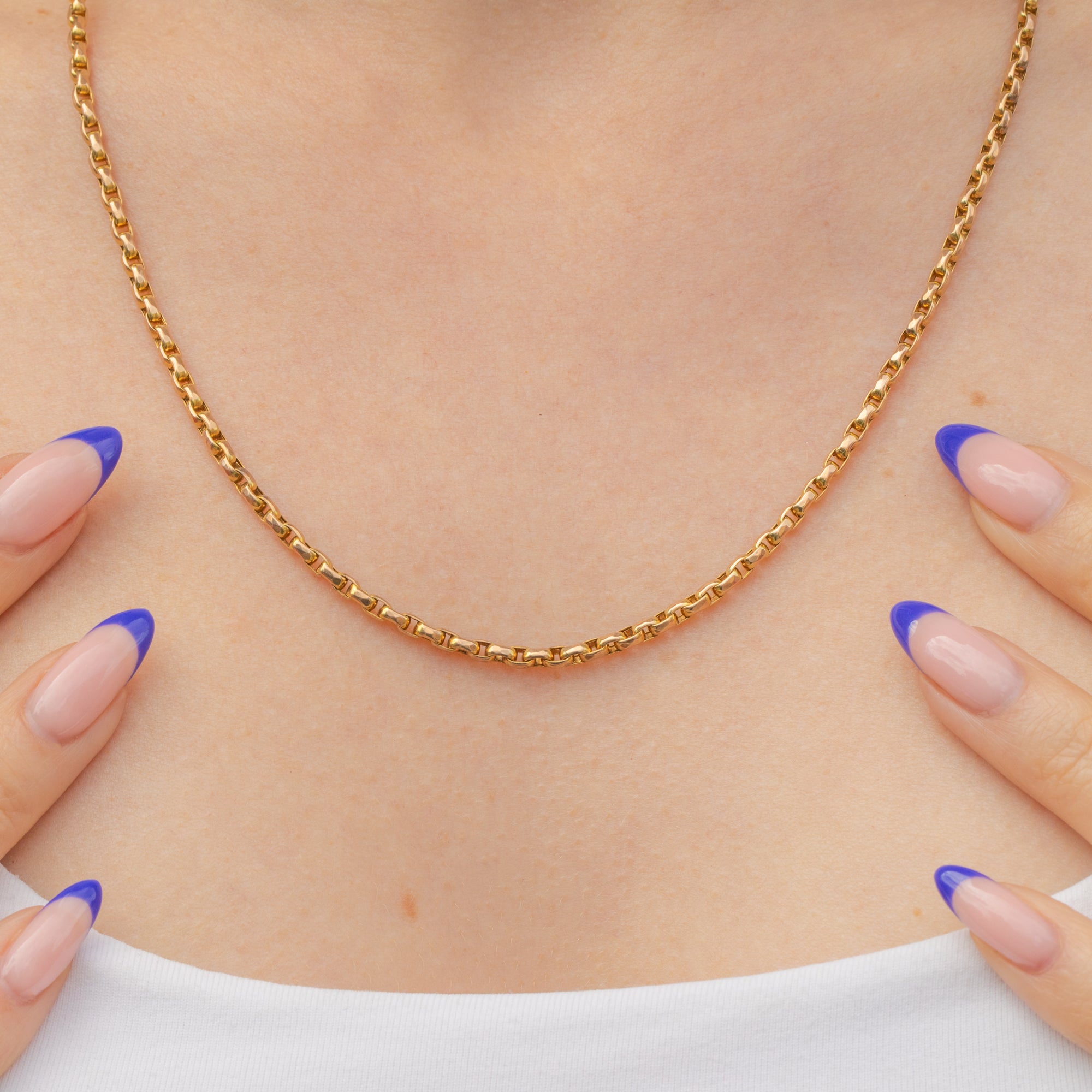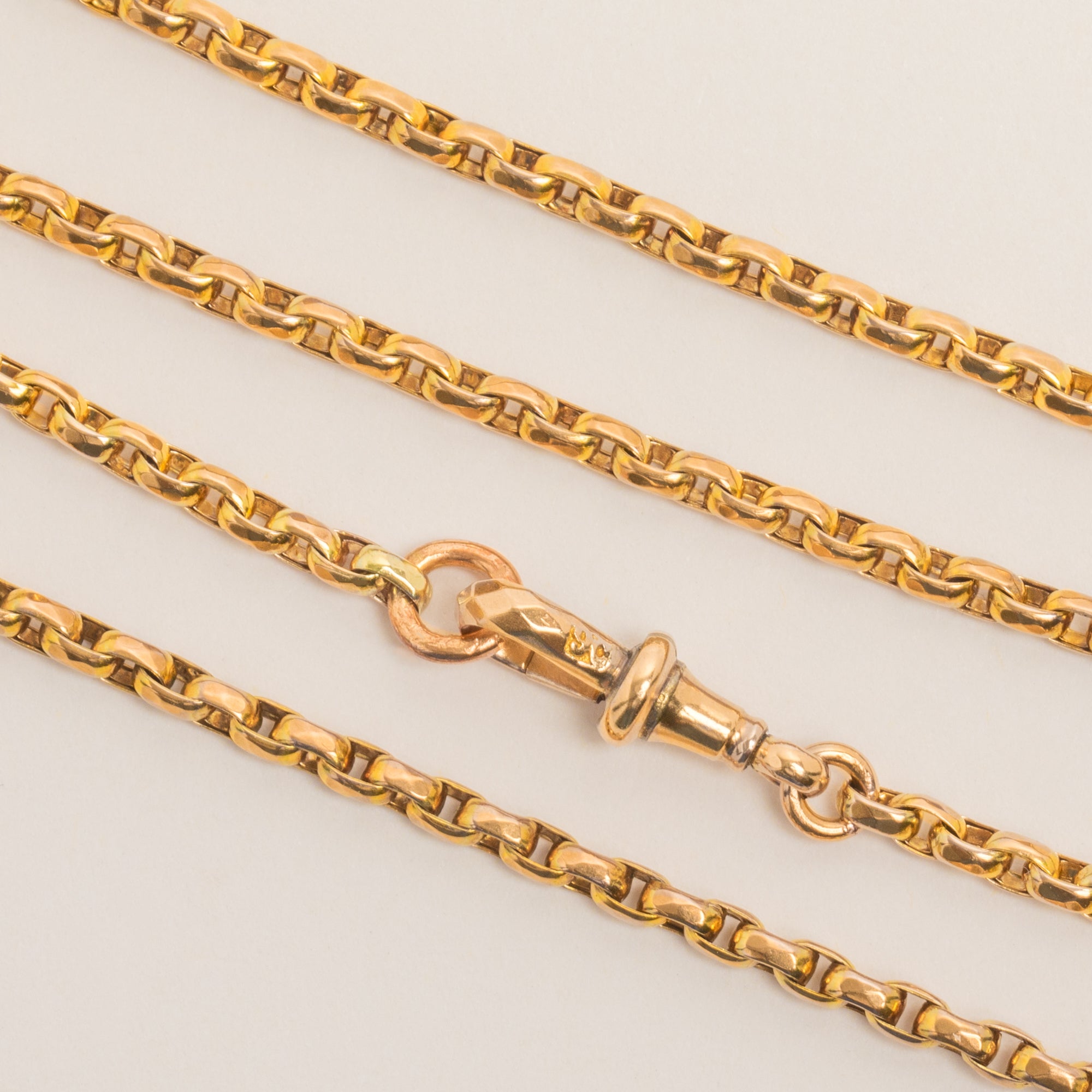 EXCELLENT. This 20" antique 9ct Gold faceted belcher chain is in excellent condition! The links are secure and the dog-clip allows for secure closure.