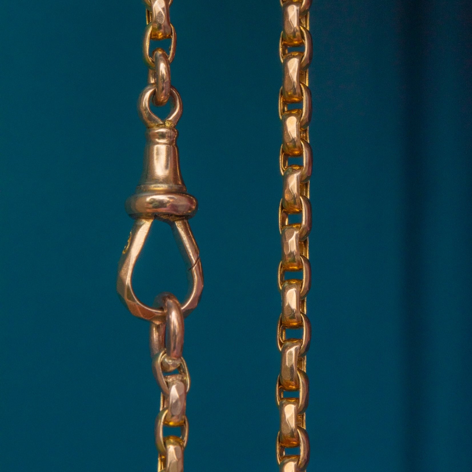 20" Antique 9ct Gold Faceted Belcher Chain, with Dog-Clip