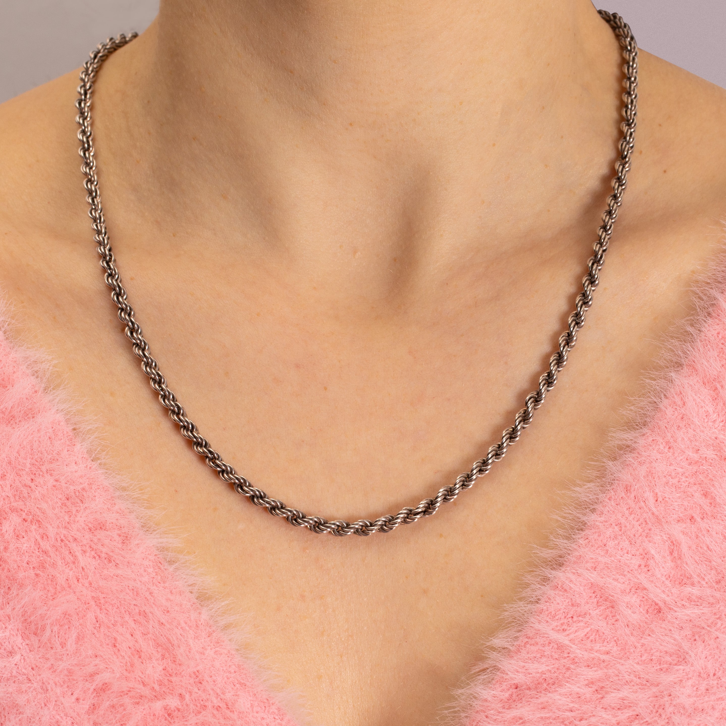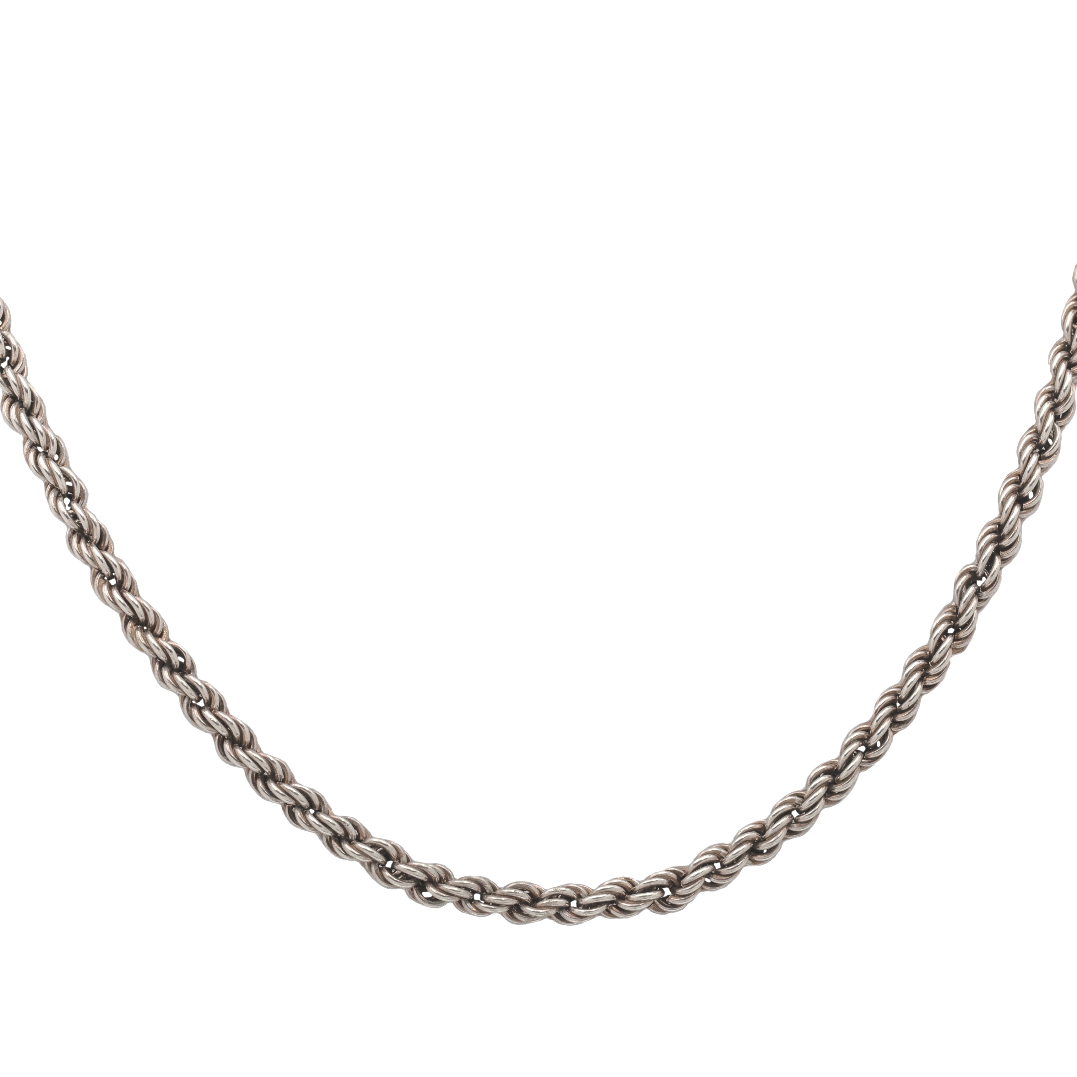 This Sterling Silver twisted rope chain is bound to become an everyday essential! Fine strands of Sterling Silver are perfectly intertwined to form her curvaceous twisted rope design.