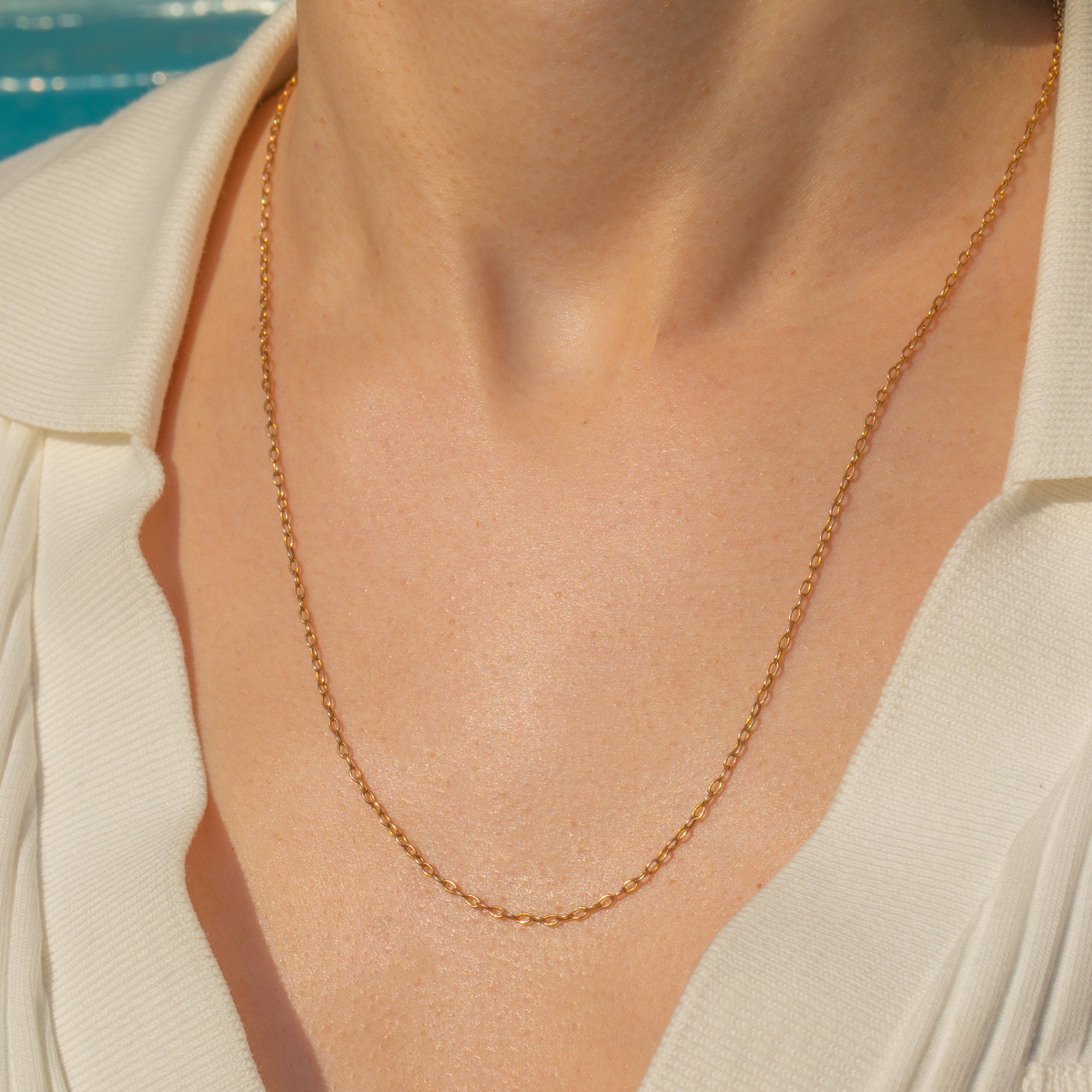 The slender width of this Gold chain allows you to display your delectable array of pendants from her, or wear her as a stand-alone piece to add a subtle touch of luxury to any attire!