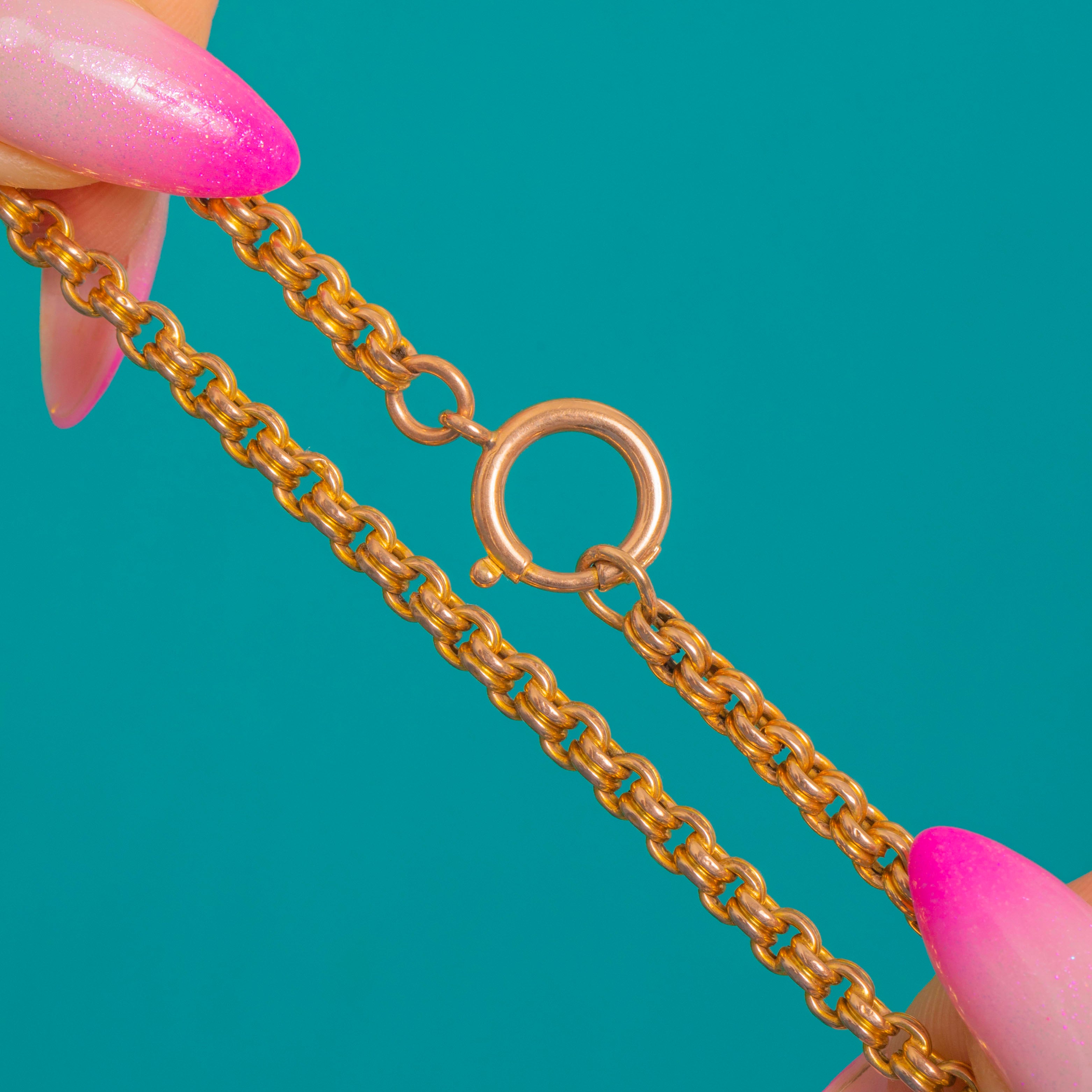 Timeless and effortless, this Victorian double Belcher chain is crafted in glowing 9ct Gold and finished with a wonderfully proportioned large bolt ring clasp. The rounded Belcher links give a smooth, tactile drape and a classic silhouette that works beautifully solo or layered.